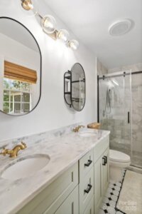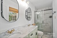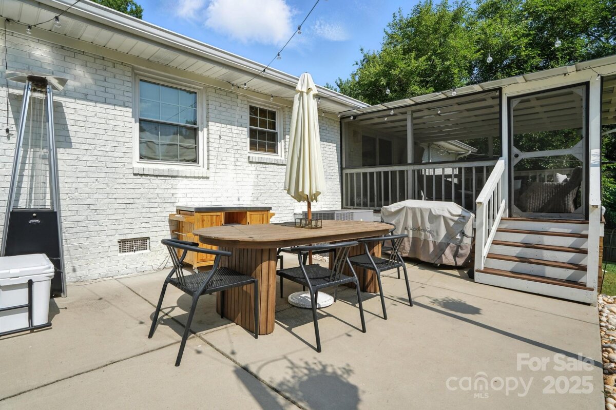 Beautifully renovated brick ranch on a large corner lot in Windsor Park! This 3 bed 2 bath features an open floor plan with a bright and spacious kitchen and living area and refinished hardwoods throughout. The kitchen is thoughtfully designed with white shaker cabinets and a large pantry. Both bathrooms have been renovated with tasteful finishes including generously sized vanities with marble countertops. The home flows seamlessly into outdoor living as you step out onto the screened in porch connected to a large patio with a built-in fire-pit and a stone grill enclosure— a perfect place to entertain guests or enjoy a crisp fall evening. The large backyard is enclosed with a privacy fence and includes extra storage in the shed and under the porch. Experience the charm of Windsor Park, a neighborhood with no HOA, located just minutes away from Plaza Midwood, Noda, and a short commute uptown!