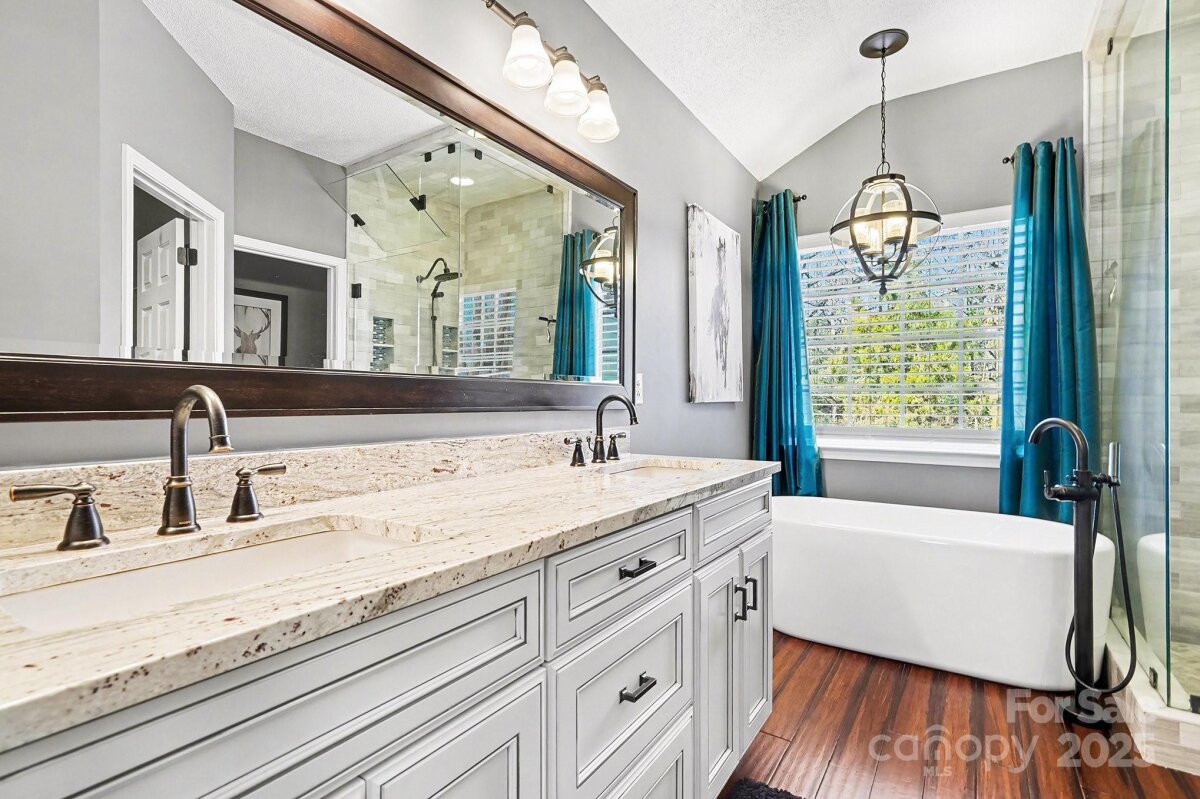 Welcome to 4501 Bellmore Court, a beautifully refreshed and gently lived-in 4-bedroom, 2.5-bathroom two-story residence tucked away on a peaceful cul-de-sac in the highly desirable 28269 corridor of Charlotte. Built in 1996 with timeless brick accents, this 2,734-square-foot gem sits proudly on a private 0.34-acre lot and feels like new construction thanks to thoughtful, high-end updates throughout. Step through the front door into a light-filled, open-concept main level where the heart of the home — a stunningly renovated kitchen — immediately impresses. Crisp new cabinetry, sleek countertops, a convenient breakfast bar, a spacious pantry, and a reverse-osmosis drinking water filter pair perfectly with a whole-house water filtration and softener system that delivers pristine water from every tap. The inviting living room, centered around a cozy fireplace, flows seamlessly into the dining area and a versatile bonus space ideal as a home office, playroom, or formal sitting room. A tastefully updated powder room and a well-appointed laundry room round out the first floor with effortless convenience. Ascend to the upper level and discover a tranquil primary suite designed as your personal spa retreat. The luxurious en-suite bathroom has been completely transformed with a decadent steam shower, contemporary tile, a new vanity, modern fixtures, and sophisticated lighting. Three additional generously sized bedrooms — one large enough to double as a bonus or media room — share a second full bathroom that has also been exquisitely remodeled with today’s finest finishes. Step outside to an equally impressive backyard oasis. The expansive deck is perfect for al fresco dining or quiet mornings with coffee, overlooking a fully fenced yard complete with a built-in fire pit for cool Carolina evenings. An in-ground irrigation system keeps the lush landscaping vibrant year-round, while the attached two-car garage, extended concrete driveway, and rare walk-in crawlspace (offering abundant, easy-access storage) add everyday practicality you’ll truly appreciate. Seller is offering the home fully furnished with a few exceptions if the buyer is interested
