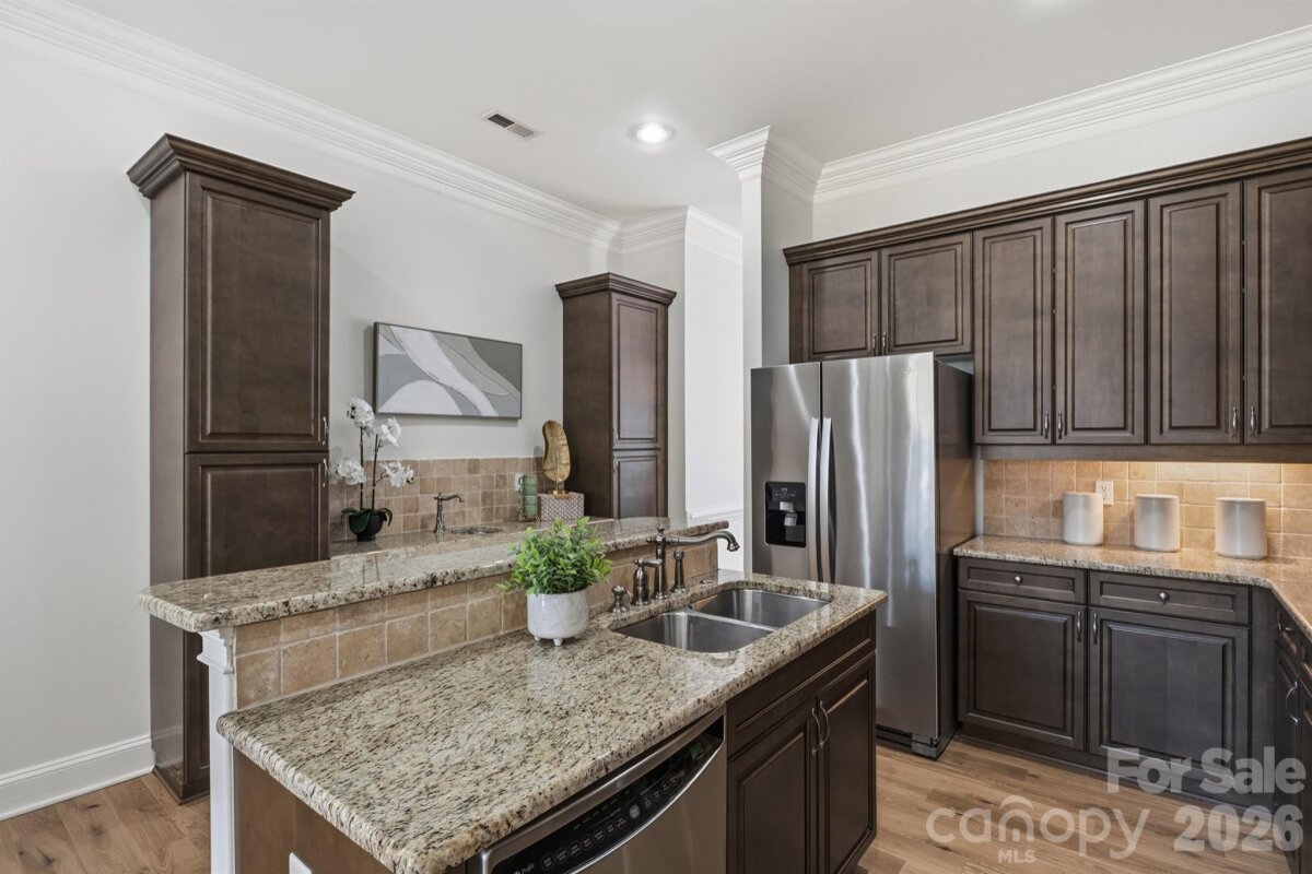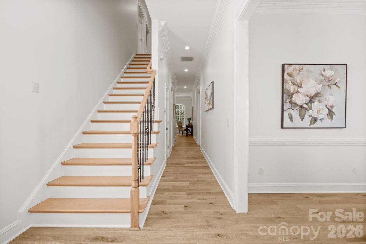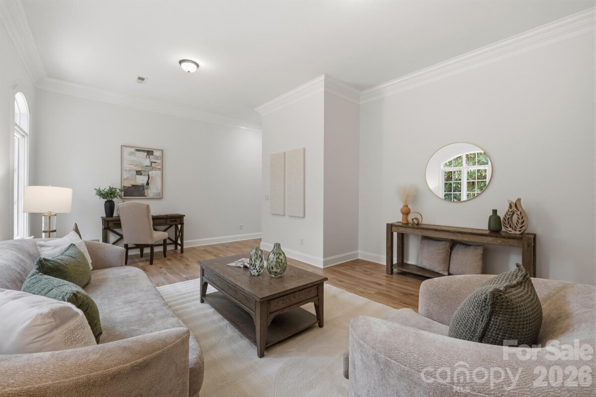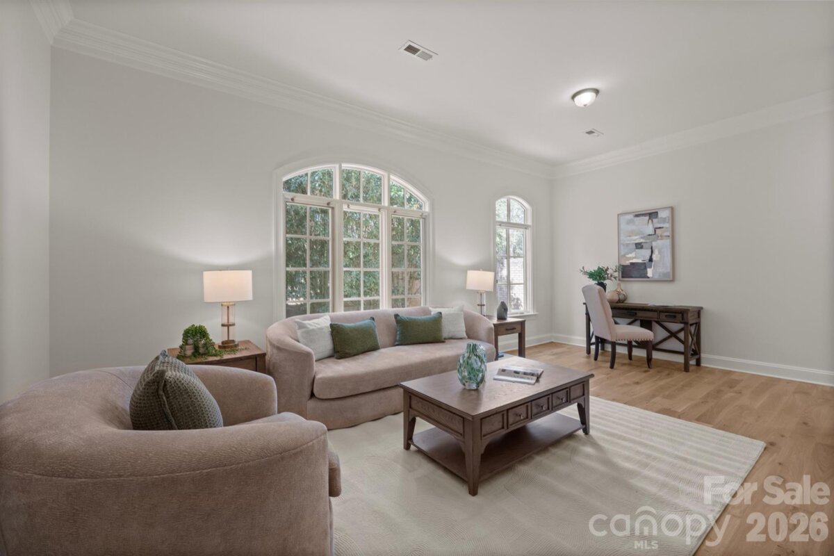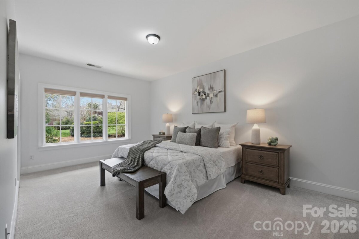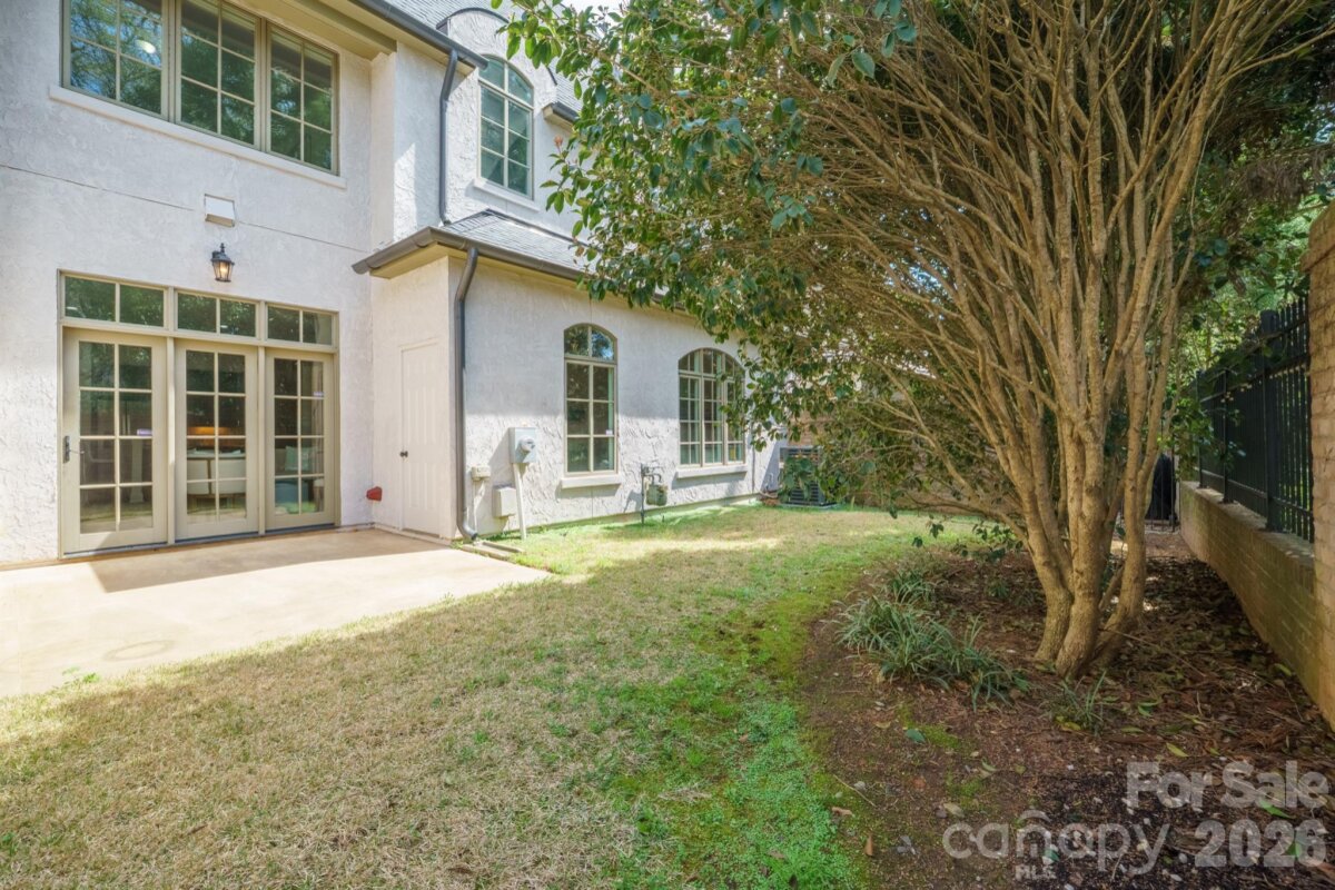 This spacious luxury townhome tucked away in an exclusive enclave in the SouthPark area, offers the perfect balance of old-world European charm and modern luxury in the Heart of Charlotte. Brand-new, white oak flooring flows seamlessly throughout all living areas. Freshly painted in a designer-neutral palette with new carpet in the bedrooms. Soaring ceilings add to the spacious feeling throughout the home. Warm inviting open kitchen and den with a stunning fireplace overlook the quiet backyard. Unlike the compact patios of nearby new construction, this home boasts a large, private brick fenced-in backyard—a genuine sanctuary for gardening, pets, or entertaining. The massive downstairs den and adjacent full bath are perfectly positioned to convert into a fabulous Primary-on-Main suite if desired. Upstairs the Primary Bedroom boost two large walk-in closets. Additional bedrooms are very large, one with a beautiful Juliet balcony filling the room with natural light. Storage Galore! Located just minutes to Southpark and a short 15-minute drive to Uptown Charlotte, Shopping, restaurants, grocery stores are at your fingertips.