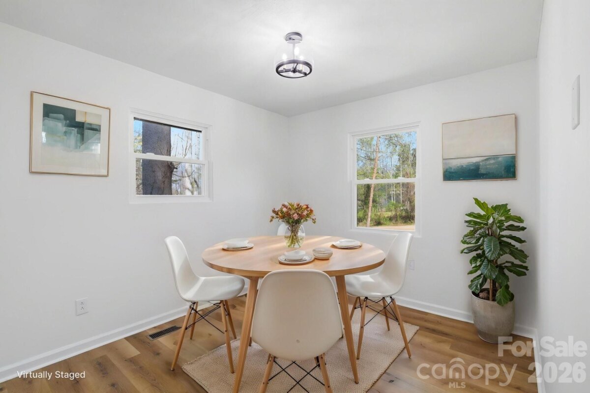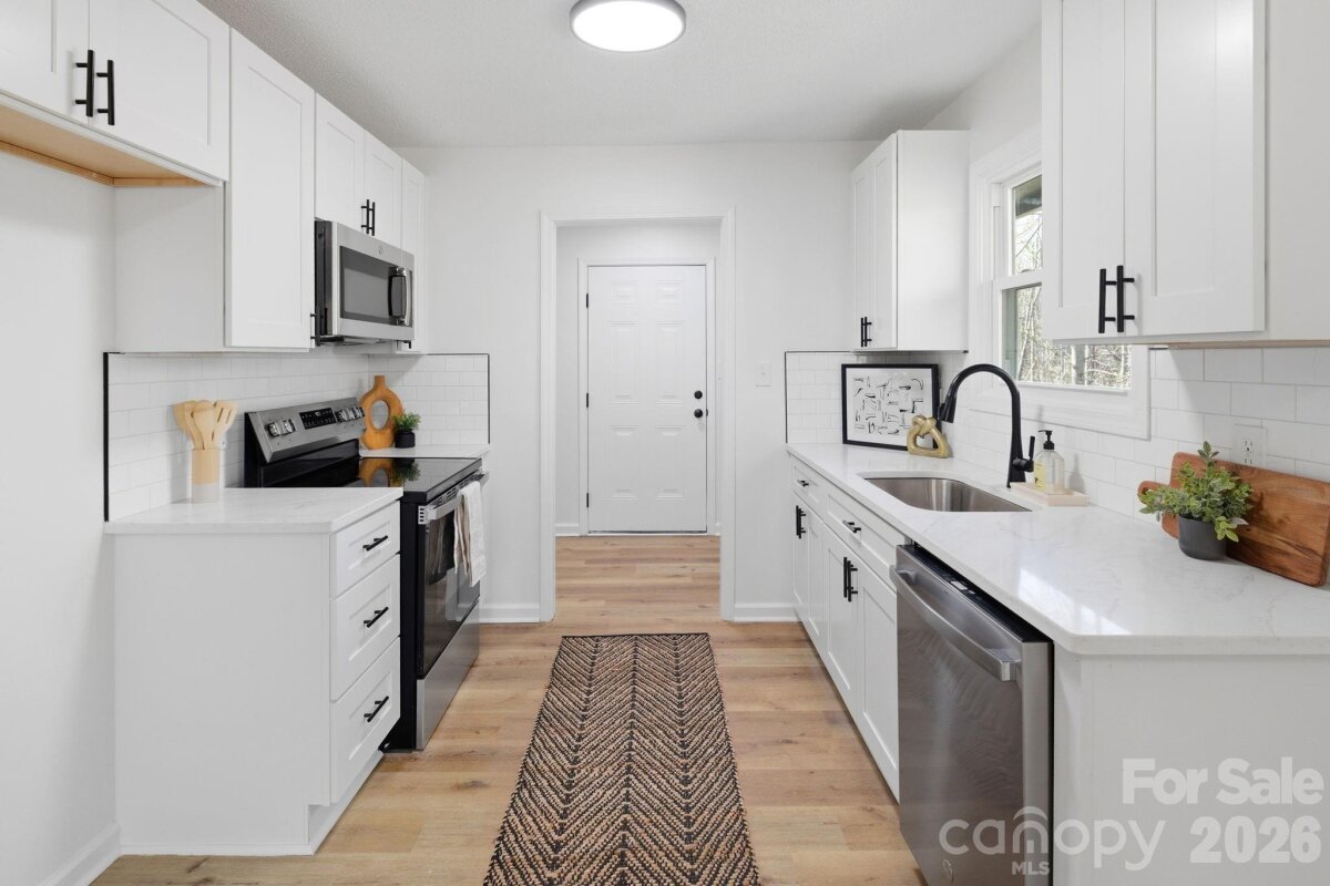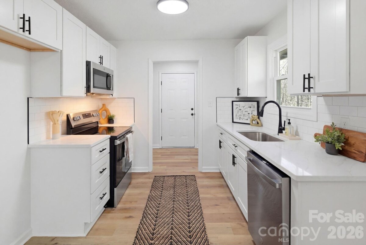 For movie lovers, here’s a fun piece of local trivia — scenes from The Hunger Games were filmed nearby, making this location even more memorable. Nestled in a peaceful, private setting that feels worlds away from the everyday hustle — yet just minutes from Interstate 40 — this completely remodeled retreat offers the perfect blend of modern living and serene surroundings. This charming three-bedroom, one-bathroom home has been thoughtfully updated from top to bottom, combining cozy character with stylish modern finishes. Step onto the covered front porch and take in the beautifully landscaped yard, complete with landscape lighting that creates a warm, inviting glow in the evenings. Inside, luxury vinyl plank flooring flows seamlessly throughout, creating a clean and cohesive look from room to room. The brand-new kitchen is a true showstopper, featuring fresh cabinetry, stunning quartz countertops, a stylish tile backsplash, and gleaming stainless steel appliances. The updated bathroom offers a tub and shower combination with crisp, contemporary finishes that elevate your daily routine. For added peace of mind the HVAC is new! Nature lovers will also appreciate the home’s close proximity to Henry Fork Reservoir Dam, perfect for weekend adventures and outdoor exploration. This gem will not last long. Schedule your private showing today and come experience this beautifully updated home for yourself.