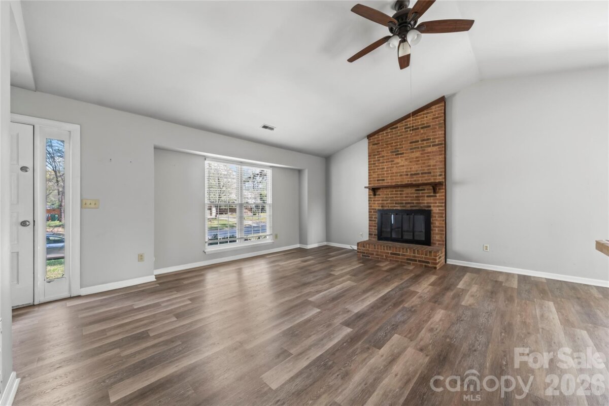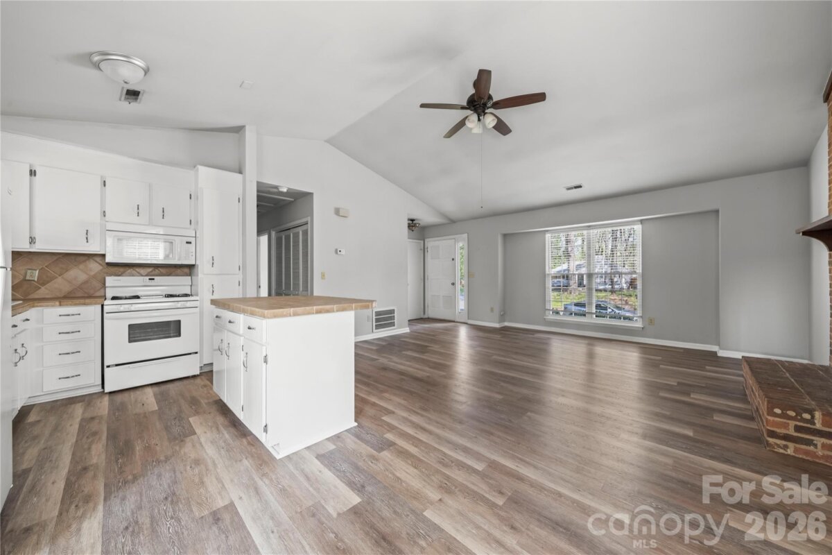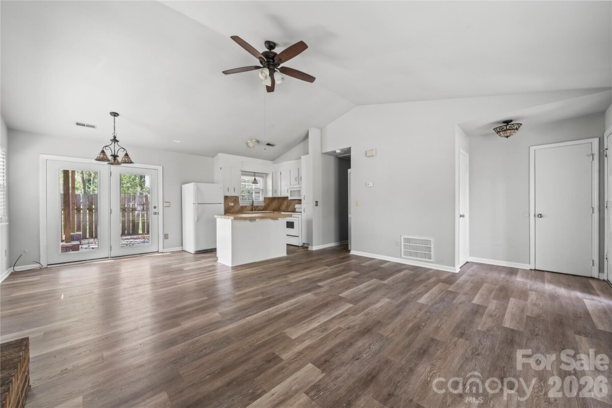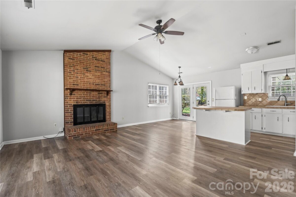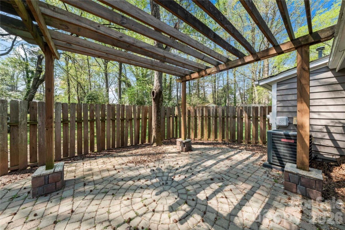 This charming 2BD/1BA ranch home in the Alexander Place community of Charlotte, features a stunning, fully fenced in backyard with mature trees. Beautiful paver patio with pergola and additional storage unit. Open floorplan with kitchen island and vaulted ceilings and gas range. LVP flooring throughout.