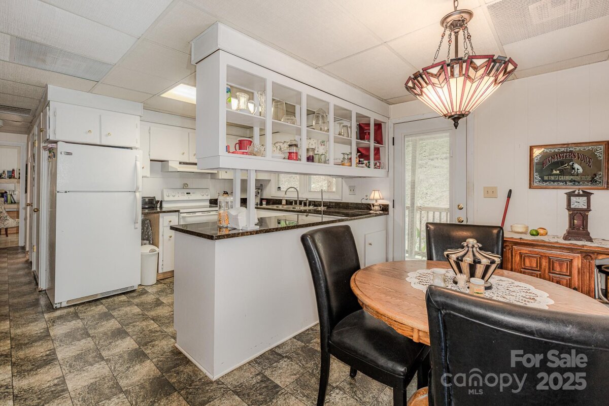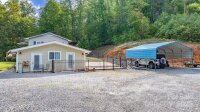 Spacious 4-bedroom, 2.5-bath home on 0.7 acres with no restrictions, offering a flexible living arrangement. The lower level serves as the main floor, featuring 2 bedrooms, 1.5 baths, a kitchen, and a full living area. The upper level includes 2 more bedrooms, 1 bath, a separate kitchen, and another living area, accessible without going through the basement. Perfect for multi-generational living or rental potential. Enjoy a small fenced area ideal for pets, along with a shed and carport. Located in a private area with a country feel, yet just under 12 minutes from Main Street in Marion, NC. NOTE!!! The 33 acres surrounding the house are available for purchase, with the option to buy all or part of it; the buyer would need to have the desired portion surveyed. A unique opportunity for those seeking privacy and potential expansion!