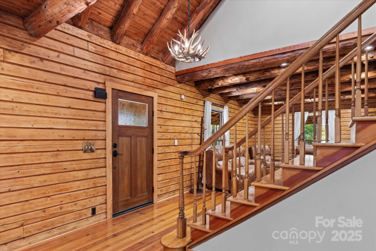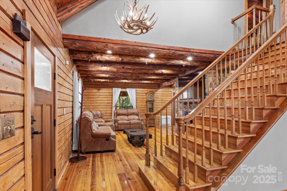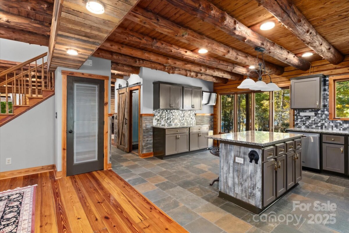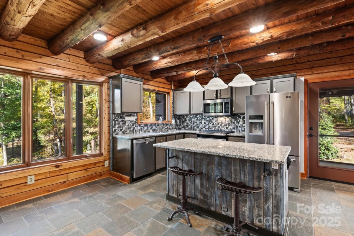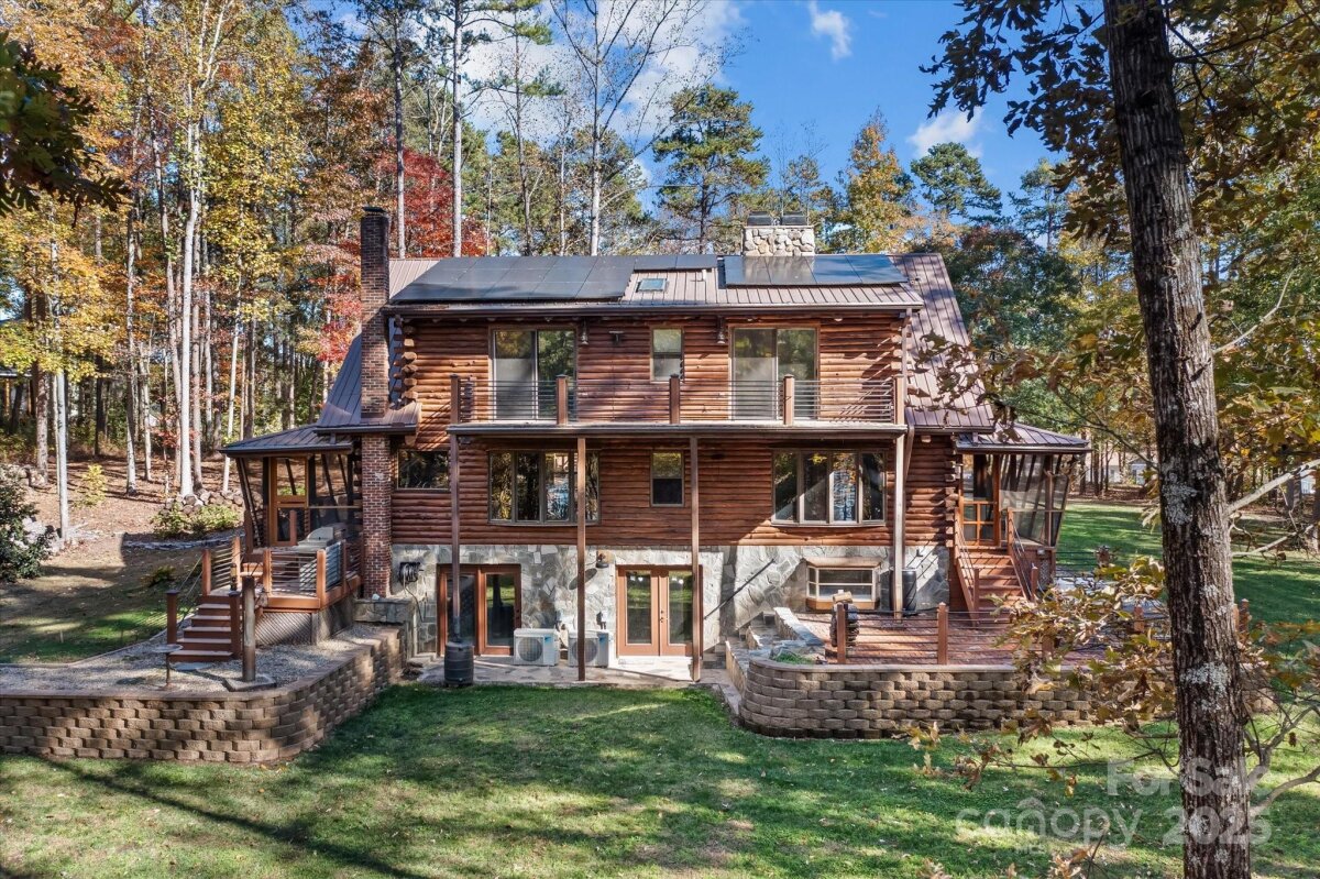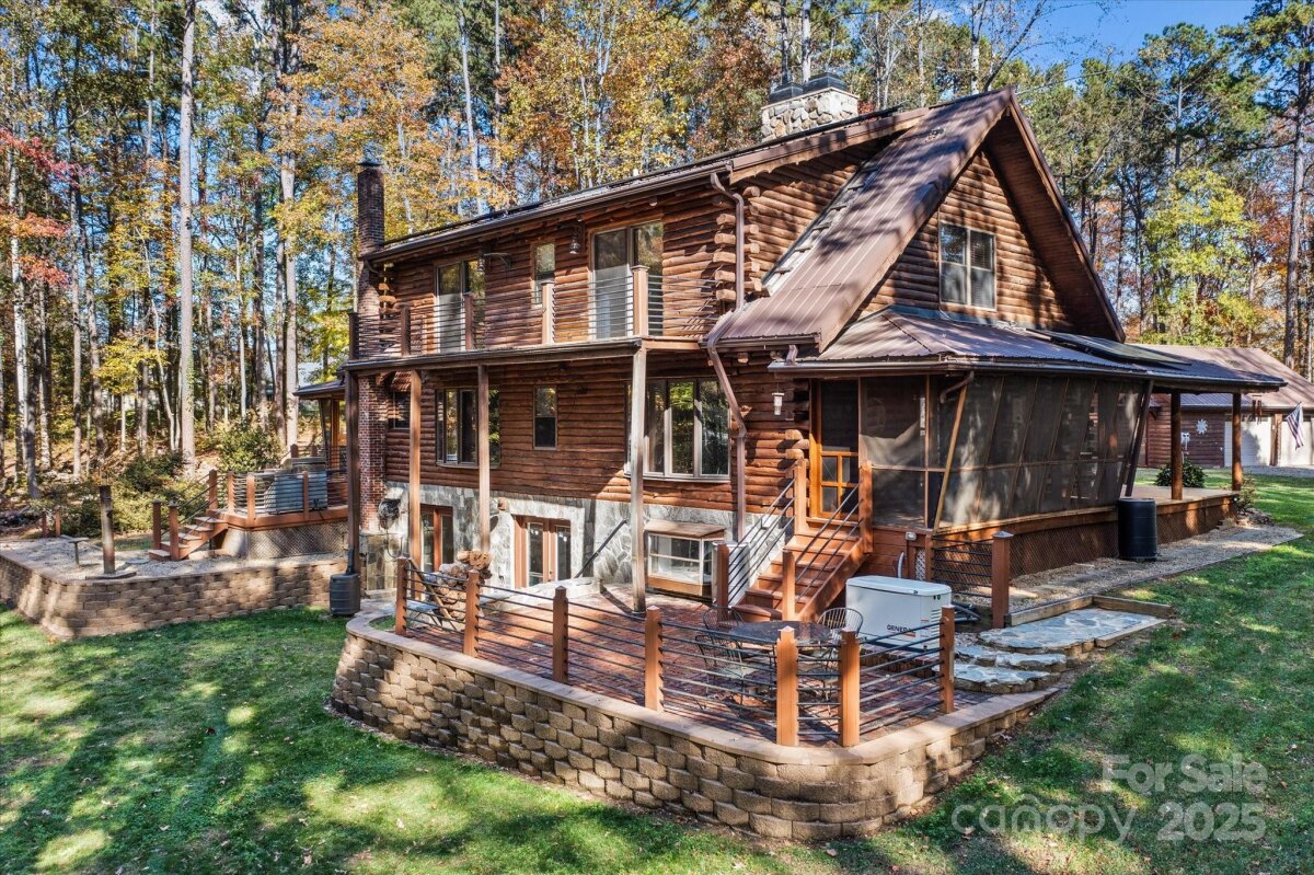 Lake Norman serenity and timeless charm await! Nestled on nearly 2 acres of private, wooded beauty, this stunning log cabin captures the perfect balance of rustic elegance and modern comfort. Thoughtfully renovated, the home showcases its authentic craftsmanship while offering the amenities you expect for today’s lifestyle. Step inside and be greeted by warm wood tones, soaring ceilings, and multiple stone fireplaces with gas logs that invite you to relax and unwind. The kitchen is a showpiece, featuring granite countertops, stainless steel appliances, and a gas stove—ideal for both everyday cooking and entertaining. Upstairs, there are three spacious bedrooms and a full bathroom. Enjoy lazy afternoons on the expansive, wrap-around screened porches surrounded by nature or create lifelong memories in the spacious backyard with tranquil seasonal views of Lake Norman. The detached garage is a versatile bonus—perfect for a workshop, hobby space, or storage—with a convenient half bath, custom workbench, and integrated sawdust vacuum system. Energy efficiency meets peace of mind with solar panels and a whole-house generator, ensuring smooth, reliable living year-round. This property offers the best of both privacy and proximity—just minutes from grocery stores, restaurants, shopping (3-4 mins), and a nearby public boat ramp (6 mins). The community provides shared lake access for kayaking, paddleboarding, or relaxing at the dock. Three lots (5A–7A) convey with the sale, totaling 1.87 acres of opportunity and flexibility. With no HOA, the possibilities are endless—use it as your personal retreat, an income-producing vacation rental, or even explore future expansion. Whether you’re seeking a full-time residence, a weekend getaway, or a peaceful investment near Lake Norman, this property offers unmatched charm, functionality, and freedom. Come experience the lifestyle, the craftsmanship, and the tranquility that make this home truly special. For drone video, copy and paste this link: https://tinyurl.com/5v2s5waw
