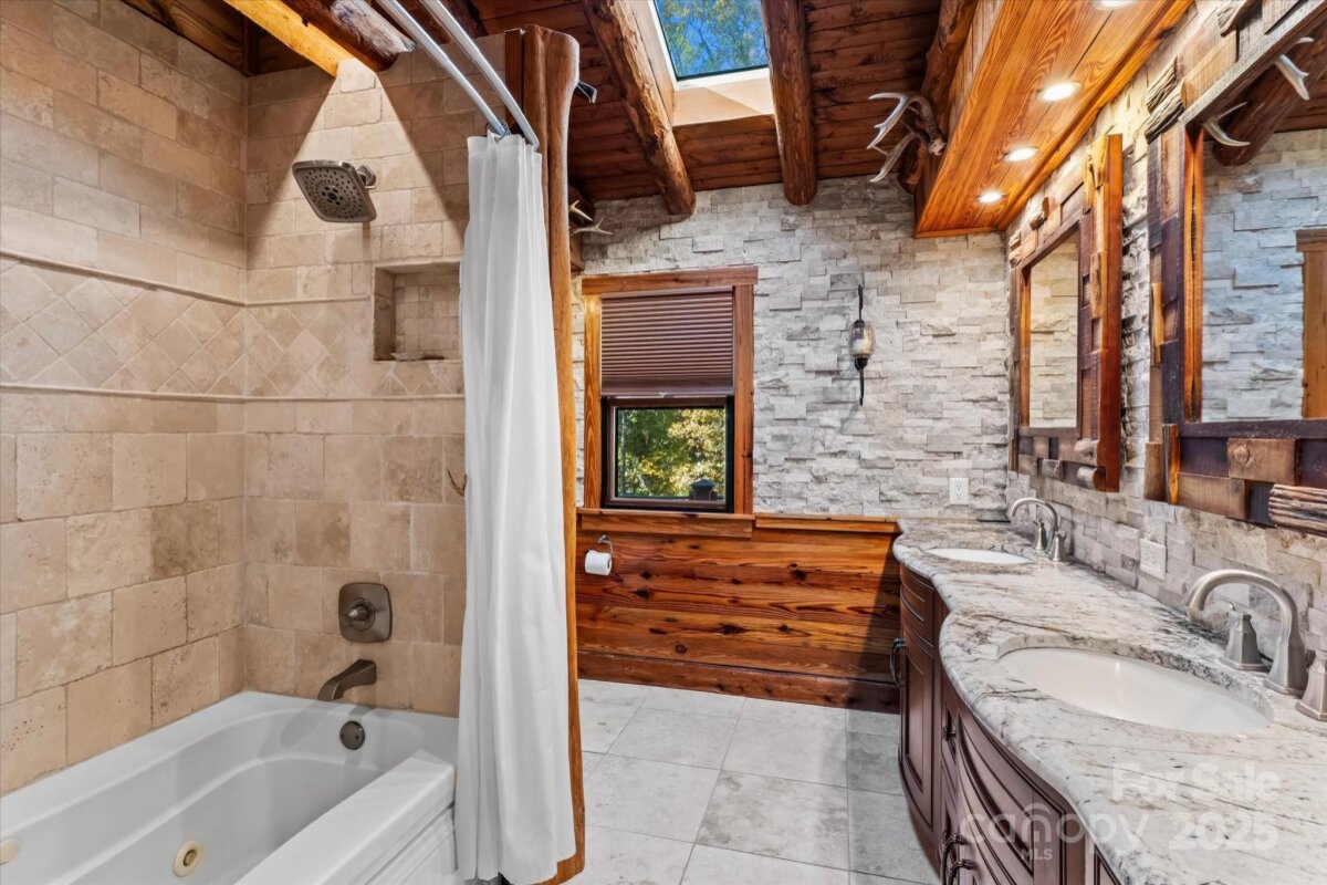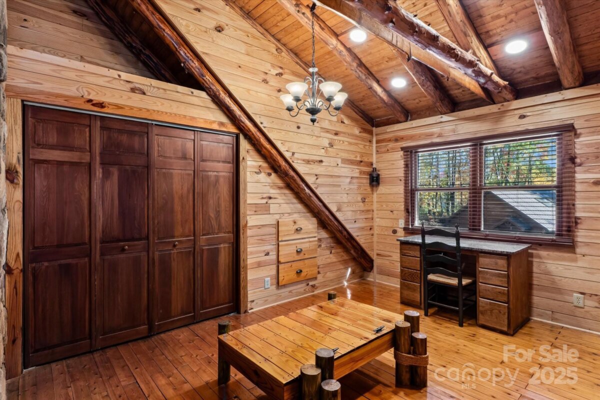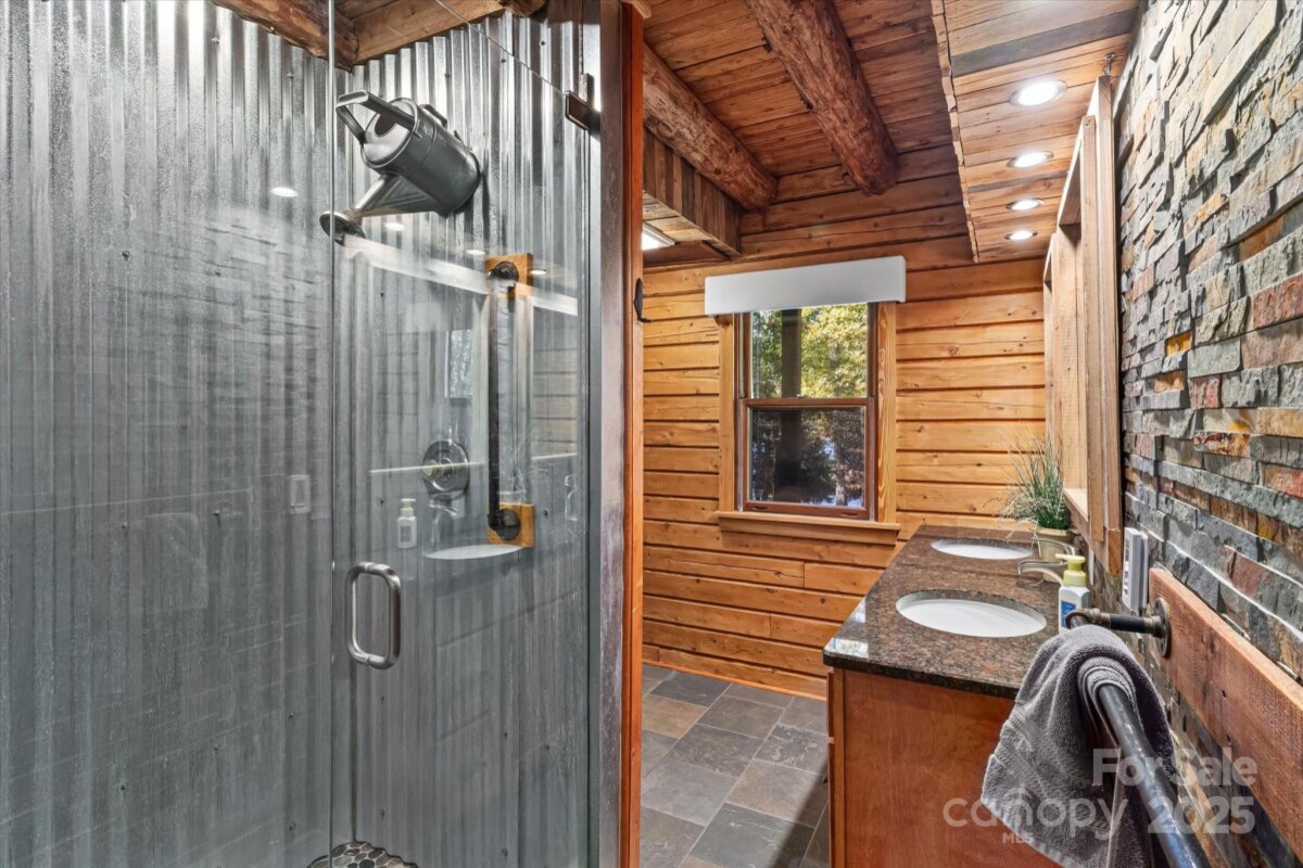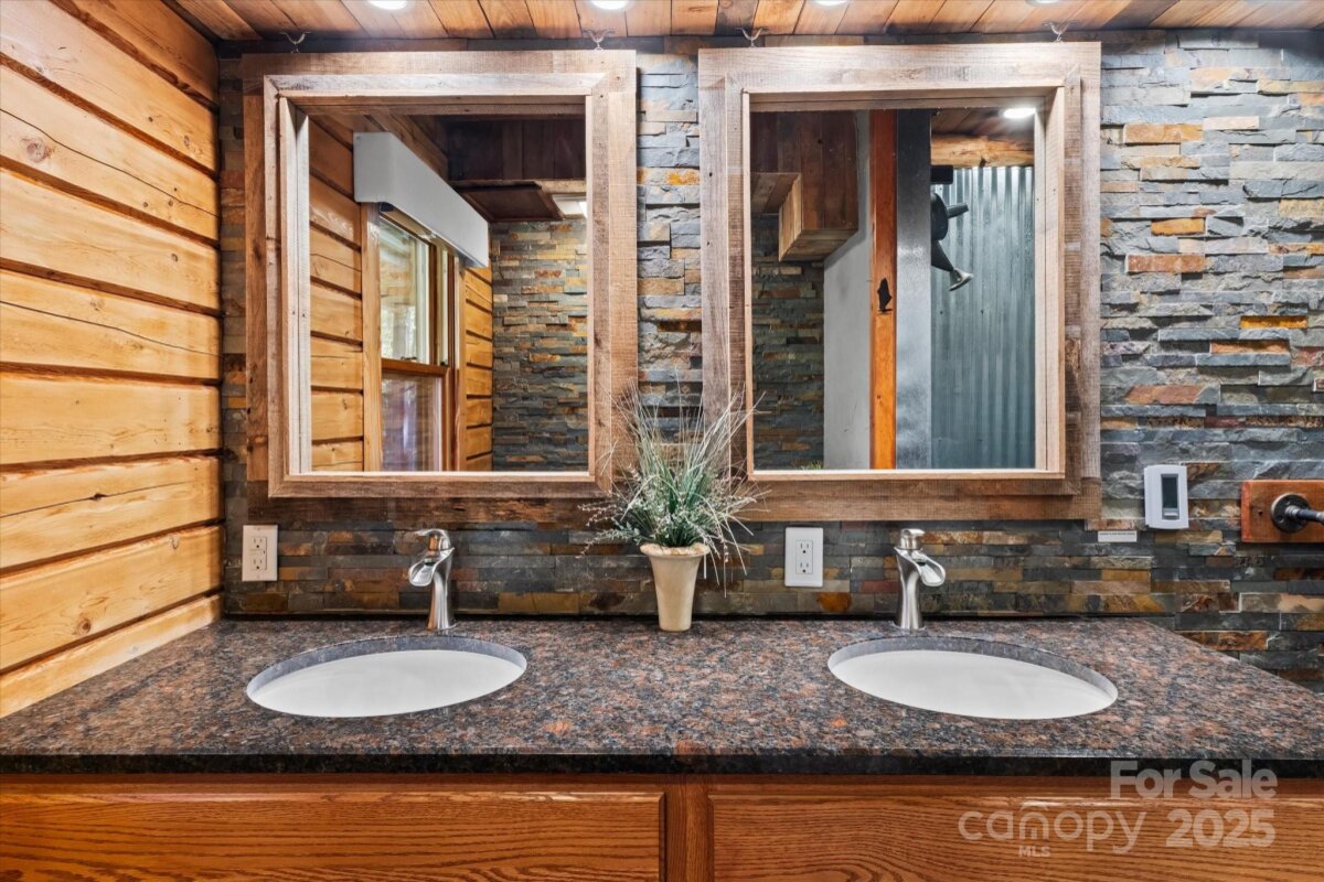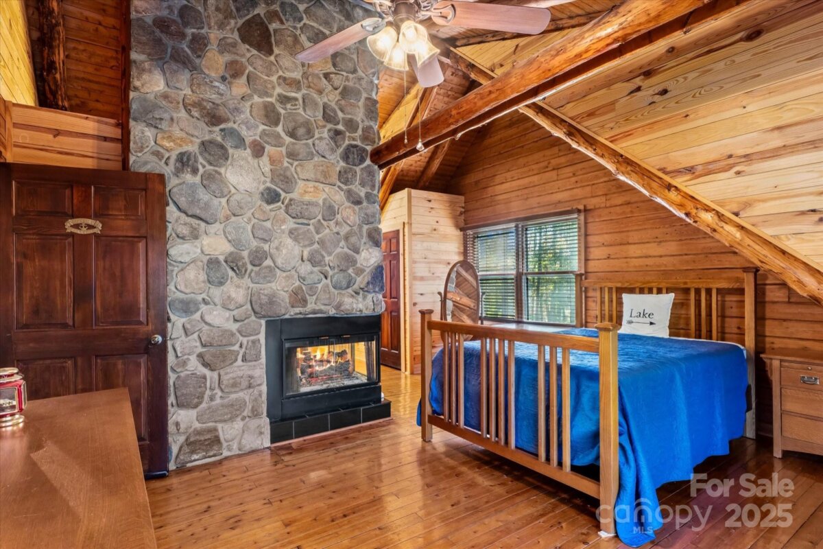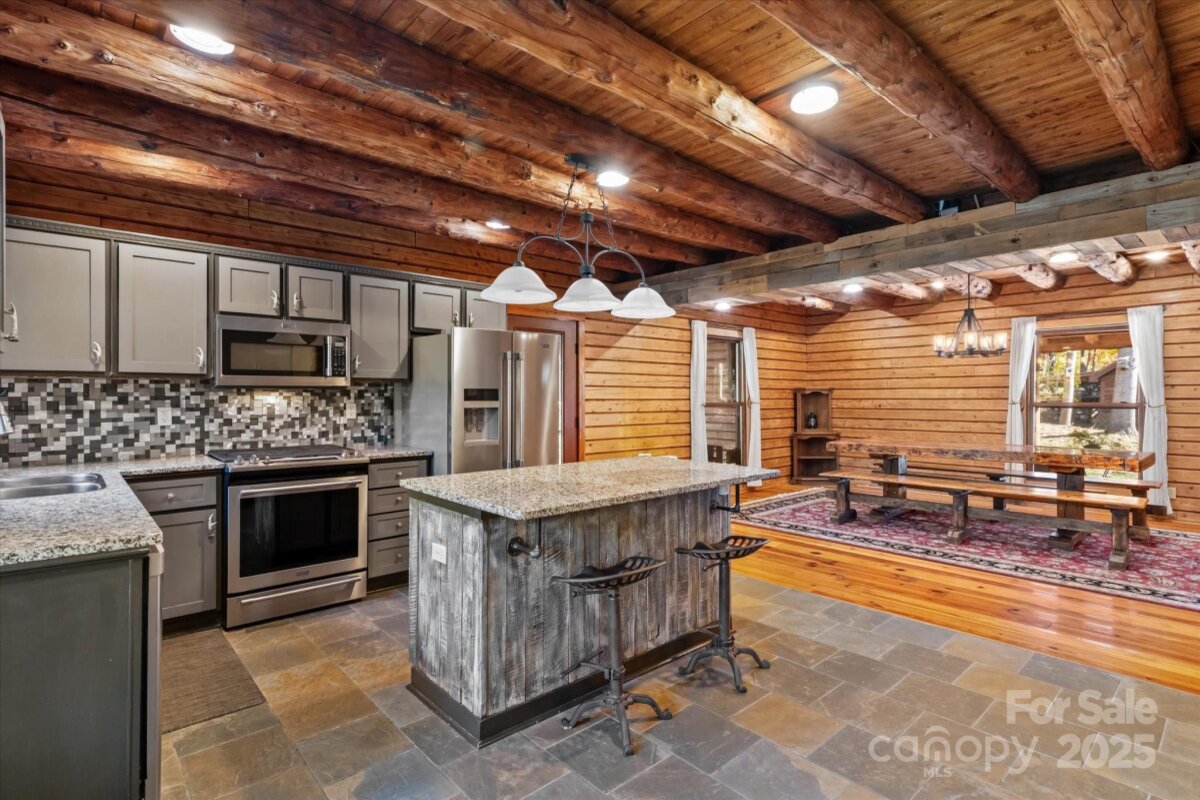 Lake Norman serenity and timeless charm await! Nestled on nearly 2 acres of private, wooded beauty, this stunning log cabin captures the perfect balance of rustic elegance and modern comfort. Thoughtfully renovated, the home showcases its authentic craftsmanship while offering the amenities you expect for today’s lifestyle. Step inside and be greeted by warm wood tones, soaring ceilings, and multiple stone fireplaces with gas logs that invite you to relax and unwind. The kitchen is a showpiece, featuring granite countertops, stainless steel appliances, and a gas stove—ideal for both everyday cooking and entertaining. Upstairs, there are three spacious bedrooms and a full bathroom. Enjoy lazy afternoons on the expansive, wrap-around screened porches surrounded by nature or create lifelong memories in the spacious backyard with tranquil seasonal views of Lake Norman. The detached garage is a versatile bonus—perfect for a workshop, hobby space, or storage—with a convenient half bath, custom workbench, and integrated sawdust vacuum system. Energy efficiency meets peace of mind with solar panels and a whole-house generator, ensuring smooth, reliable living year-round. This property offers the best of both privacy and proximity—just minutes from grocery stores, restaurants, shopping (3-4 mins), and a nearby public boat ramp (6 mins). The community provides shared lake access for kayaking, paddleboarding, or relaxing at the dock. Three lots (5A–7A) convey with the sale, totaling 1.87 acres of opportunity and flexibility. With no HOA, the possibilities are endless—use it as your personal retreat, an income-producing vacation rental, or even explore future expansion. Whether you’re seeking a full-time residence, a weekend getaway, or a peaceful investment near Lake Norman, this property offers unmatched charm, functionality, and freedom. Come experience the lifestyle, the craftsmanship, and the tranquility that make this home truly special. For drone video, copy and paste this link: https://tinyurl.com/5v2s5waw