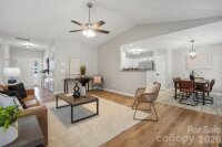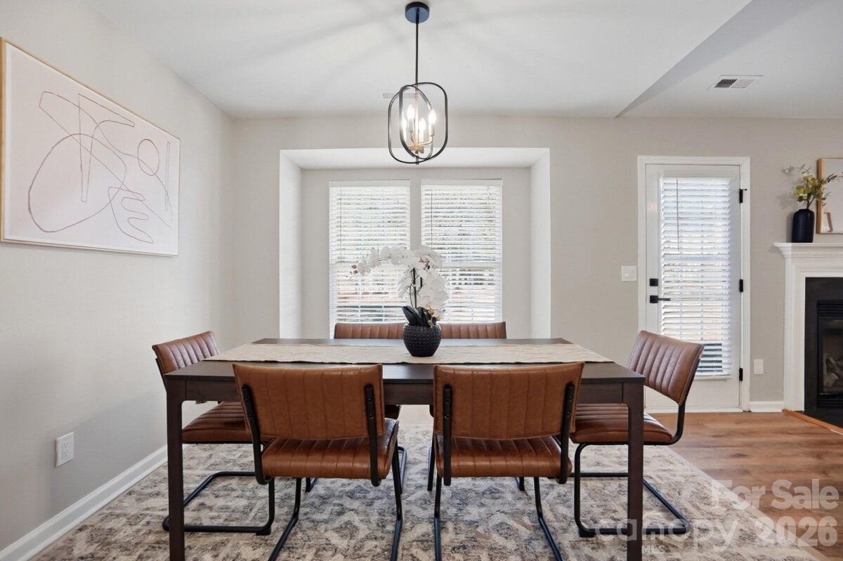 Welcome home to this charming ranch-style retreat featuring 3 bedrooms, 2 full baths, and a 1-car garage, ideally situated on a desirable lot in an established neighborhood just minutes from Charlotte Premium Outlets with convenient access to I-77 and I-485. Step inside to an inviting open floor plan filled with natural light, highlighted by a welcoming living room with vaulted ceilings and a cozy fireplace. The well-appointed kitchen features stainless steel appliances, a pantry, and a bright breakfast nook perfect for everyday dining. The spacious primary suite offers a walk-in closet and a private en-suite bath complete with a garden tub/shower combination and convenient linen storage. Two additional bedrooms provide flexible space for guests, a home office, or hobbies, while the second full bath includes ample storage. Recent updates include new light fixtures, fresh paint, luxury plank flooring, and thoughtful finishing touches throughout. Outdoors, enjoy an expansive, level backyard framed by mature trees, offering exceptional privacy and endless opportunities for entertaining, gardening, or relaxing. Backing to a natural pond and located on one of the most desirable lots in the neighborhood, this home seamlessly blends comfort, convenience, and charm.