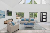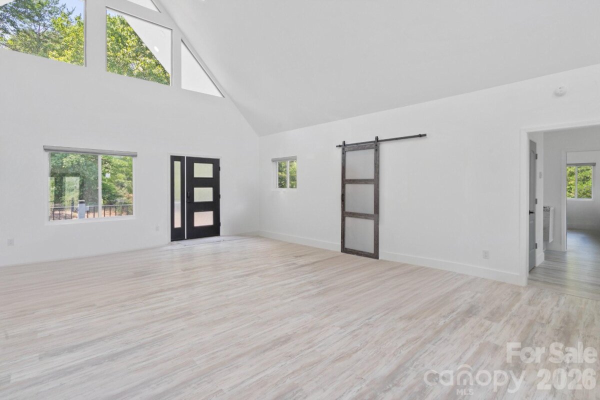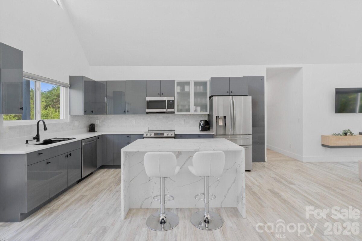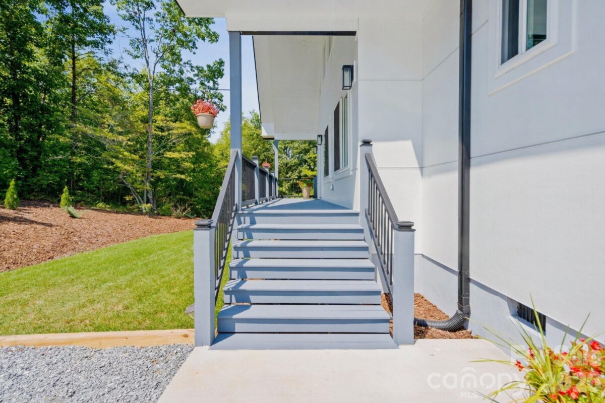 Experience modern elegance and refined living in The Estates of Greenhill, a private gated community just minutes from downtown Rutherfordton and an easy drive to Asheville—and only a short ride to the Tryon International Equestrian Center. Perfect for equestrian professionals or anyone seeking a beautiful home near the area’s world-class riding, dining, and entertainment venue. Set on 1.32 wooded acres with seasonal mountain views, this 3-bedroom, 2.5-bath home blends sophisticated contemporary design with the quiet beauty of nature and convenient access to shopping, dining, and I-40. Inside, discover an airy, light-filled plan framed by dramatic triangular windows, a chef-inspired kitchen with solid quartz countertops and a massive extra-wide island—ideal for entertaining friends, family, or weekend guests in town for equestrian events. The spa-quality primary suite features an open-access tiled shower, sleek fixtures, and elegant finishes with defog mirrors for a touch of everyday indulgence. Enjoy outdoor living at its best with both front and back covered porches that overlook your private wooded backdrop. A finished walkout basement with French doors offers flexible space for recreation, a home office, or guest quarters. As if that's not enough, enjoy a semi-circular gravel driveway and Greenhill’s peaceful gated setting. Ultimately, embellish yourself with mountain serenity and equestrian proximity—a rare blend in one exceptional property.