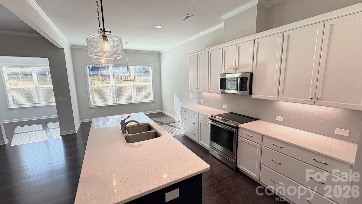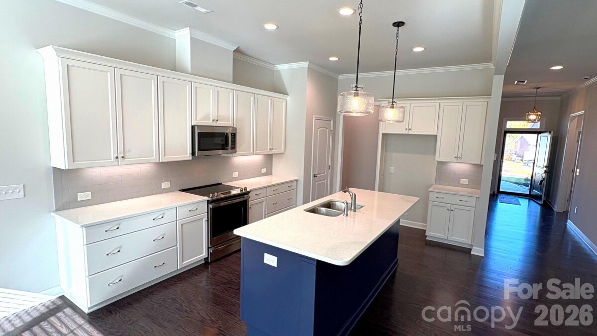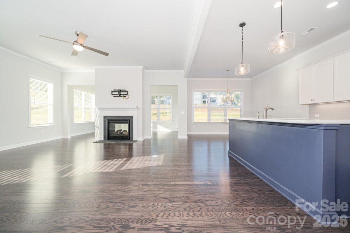 This tranquil ranch style home in a peaceful almost new Concord neighborhood offers the perfect blend of modern living along with comfort and convenience. Built in 2024, impeccably clean, and ready to move right into with a huge 3-car garage, along with minimal stairs, slope, and steps to get you into this one-level beauty. You are greeted by a "rocking chair" front porch that leads you through the front door and into the wide-open floorplan that flows seemlessly from the great room to the "chef's" kitchen, and the naturally warm dining area. The two-sided gas log fireplace makes the space cozy, yet highly functional, ideal for unwinding and entertaining. A sunroom connects nicely to the main living space and attaches to the fireplace. Like-new stainless appliances adorn the sleek and modern kitchen, which boasts a perfect gathering place and large center island. The cabinetry includes soft-close hinges and under cabinet lighting to create the perfect ambiance. This is single level living at its very best, with a spacious owner's suite, well appointed en-suite bathroom with shower grab bar, and two additional secondary bedrooms that are generously sized and functional. Do not miss the hard-to-find features like the 3-car garage along with the on demand gas hot water system. The office is right off of the front entry foyer and can flexibly serve as a den, study, or reading room. And all this comes with a location near all that Concord has to offer, just minutes off of I-85 and Hwy. 29. Close to great shopping, and the Atrium Northeast medical complex. Note: there is a $300 capital contribution fee due from the buyer at closing. Why wait for new construction when you can enjoy this lovely nearly new modern ranch right away!