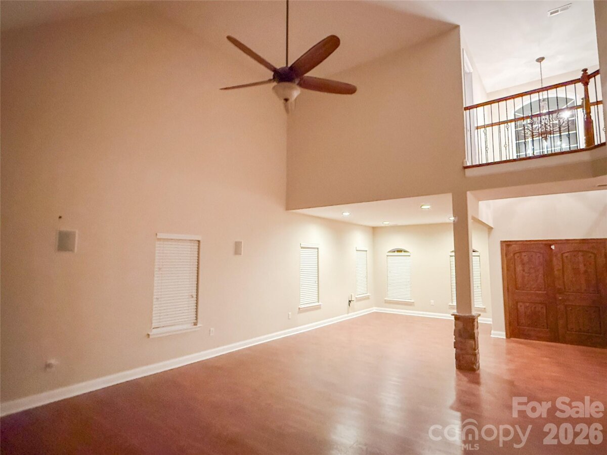 Welcome to this beautifully crafted custom home in the intimate Lanstone community, a small enclave of distinctive homes known for their elegant stone accents and timeless character. Perfectly positioned on a private cul-de-sac lot, this one-owner residence blends thoughtful design, spacious living, and inviting outdoor spaces. A pair of impressive double front doors opens into a dramatic two-story foyer, setting the stage for the home's open and light-filled interior. The main living area is anchored by a striking two-story stone fireplace with custom wood mantle, creating a warm focal point that draws the eye upward and fills the space with character. The living room flows seamlessly into the kitchen and breakfast area, where French doors open to the backyard patio and firepit, creating the perfect setting for entertaining or relaxing under the Carolina sky. Just beyond, the screened porch offers a second fireplace and mounted television, providing a comfortable retreat for year-round enjoyment. The primary suite on the main level is designed as a private sanctuary, featuring high ceilings, elegant crown molding, and generous space for a full furniture suite. The en-suite bath includes separate dual vanities, an expansive walk-in shower with dual shower heads, and a private water closet. Two separate walk-in closets are located along the hallway to the bath, with an additional closet in the bedroom for exceptional storage. The laundry room is both practical and unique, offering a dedicated pet washing station, storage closet, wire shelving, and ample space for folding or ironing. Upstairs are two spacious secondary bedrooms and a large vaulted bonus room with closet, providing flexible space for a fourth bedroom, media room, or home office. A full hall bath serves the upper level, and one bedroom includes walk-in attic access with floored storage for convenient organization. The home has been freshly and professionally painted throughout in a warm, neutral palette, creating a move-in ready interior that complements a wide range of design styles. Outside, the fenced backyard is framed by mature trees, offering privacy and space to enjoy the outdoors. A separate utility building provides excellent storage for lawn equipment and tools. Lanstone offers the charm of a quiet custom-home neighborhood while remaining conveniently located near Harrisburg, Pitts School Road Elementary, JM Robinson High School, Hwy 49, Hwy 29, and Kannapolis Parkway, providing easy access to shopping, dining, and commuting routes. This is a rare opportunity to own a beautifully maintained custom home in one of the area's most convenient locations.