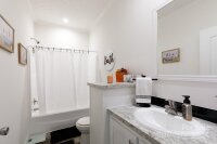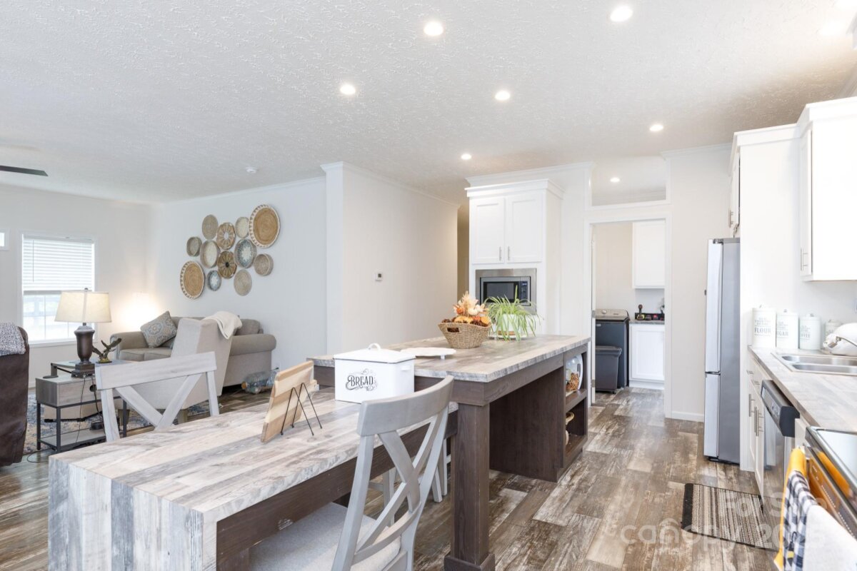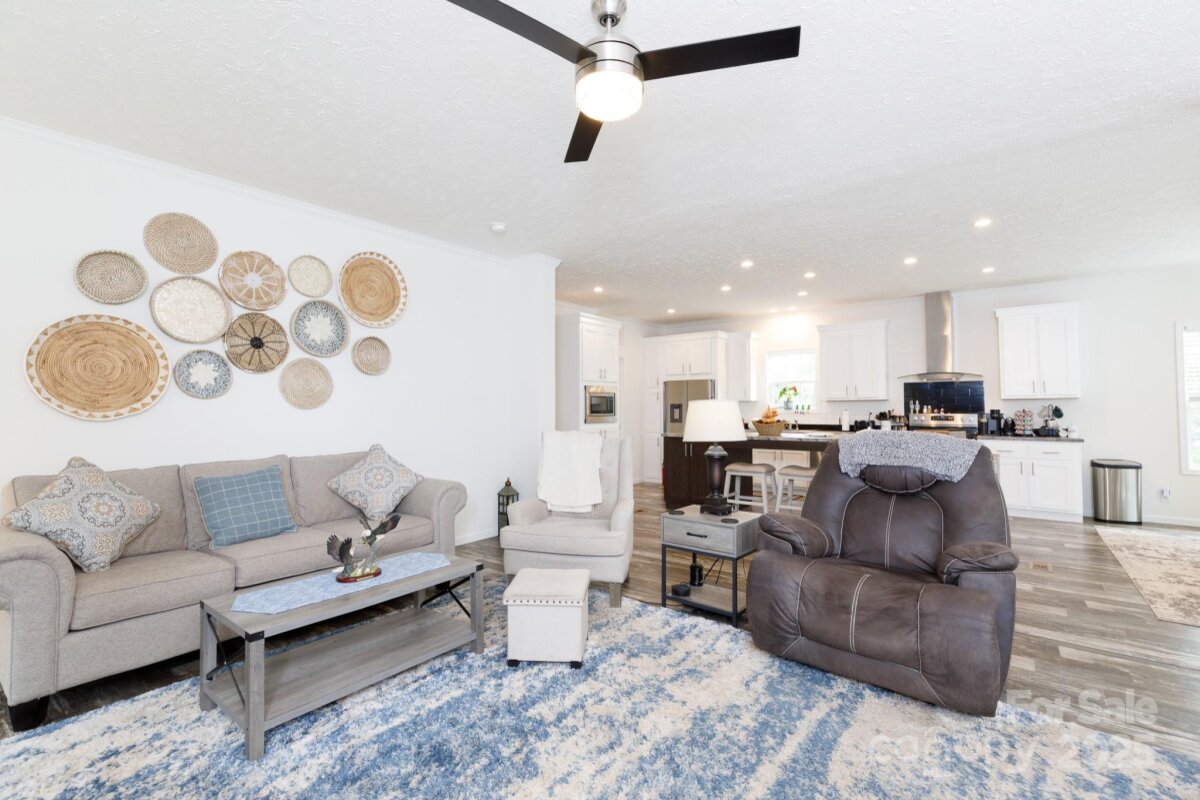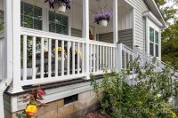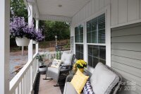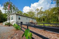 Imagine starting your day with coffee on the charming front porch, surrounded by the quiet beauty of a wooded, lot that spans .63 acres, yet knowing you're only a short drive from all your favorite shops and dining. This home is the perfect blend of country living and easy convenience. Step inside and be greeted by a bright, airy atmosphere thanks to the open floor plan and an abundance of large windows that flood the space with natural light. As you enter, you will immediately notice the multiple upgrades, including 9-foot textured ceilings, smooth drywall, and elegant crown molding. The main living area flows effortlessly, centered around a gourmet kitchen equipped with a large island—the heart of the home for cooking, gathering, and entertaining. The thoughtful layout includes a dedicated, well-appointed laundry room with a folding station and additional storage conveniently located off the kitchen. This home offers three bedrooms and 2 full bathrooms. The expansive primary bedroom is a luxurious escape, featuring a large walk-in closet and a sleek en-suite bathroom with a spacious walk-in shower. Outdoor living is a dream! The sprawling yard offers a fantastic fire pit area for evening relaxation and plenty of space to finally plant that garden you've always wanted. The yard is fenced and even contains a bark mulch dog run so pets do not bring leaves and dirt into the home! Parking is never an issue. With well lit parking for six or more cars, hosting friends and family is a breeze. Don't miss the opportunity to own this beautiful property—especially as the trees prepare for their stunning fall display!