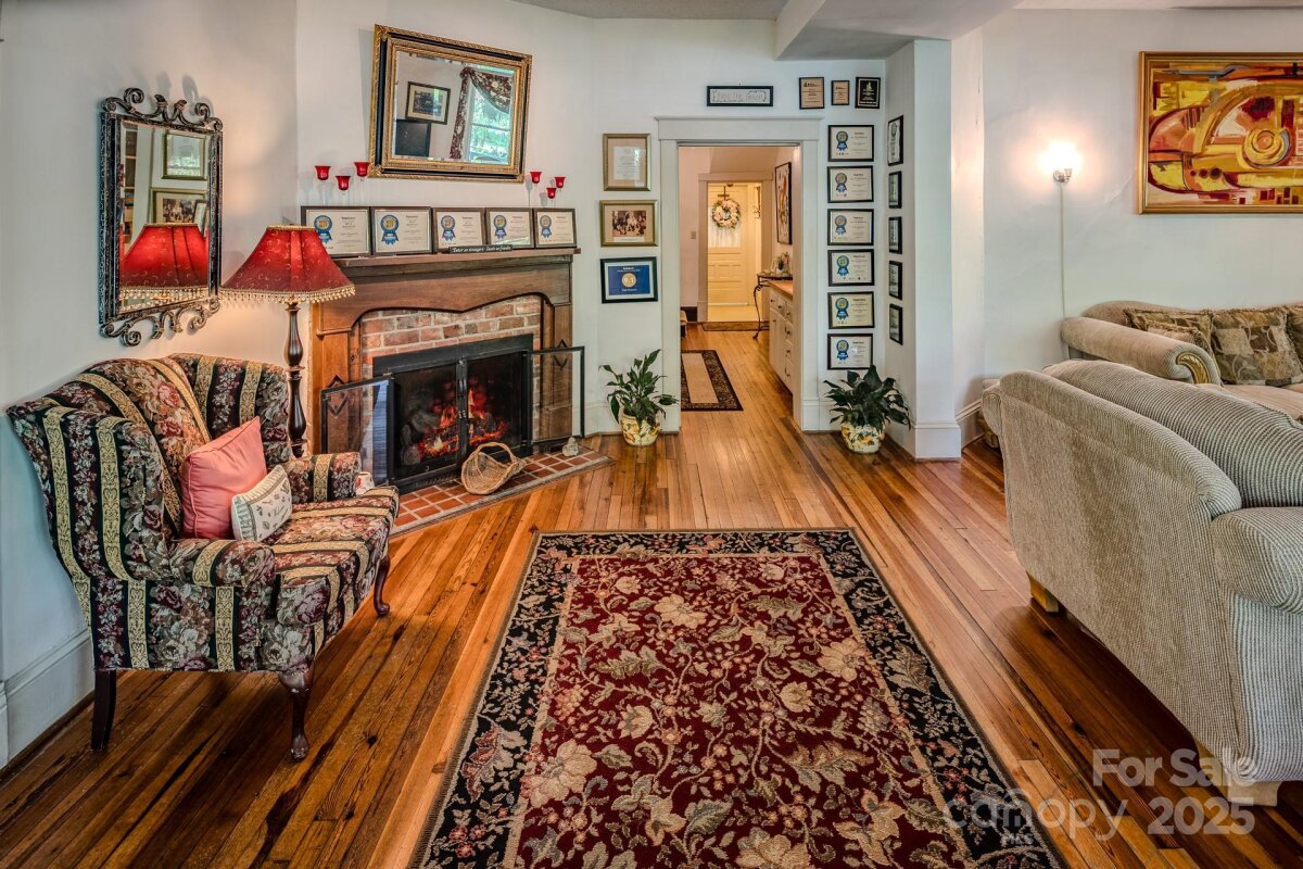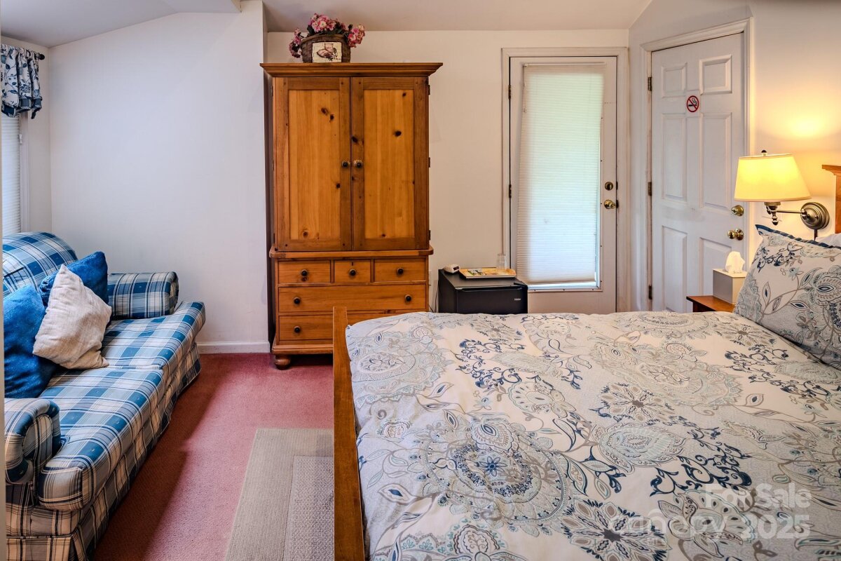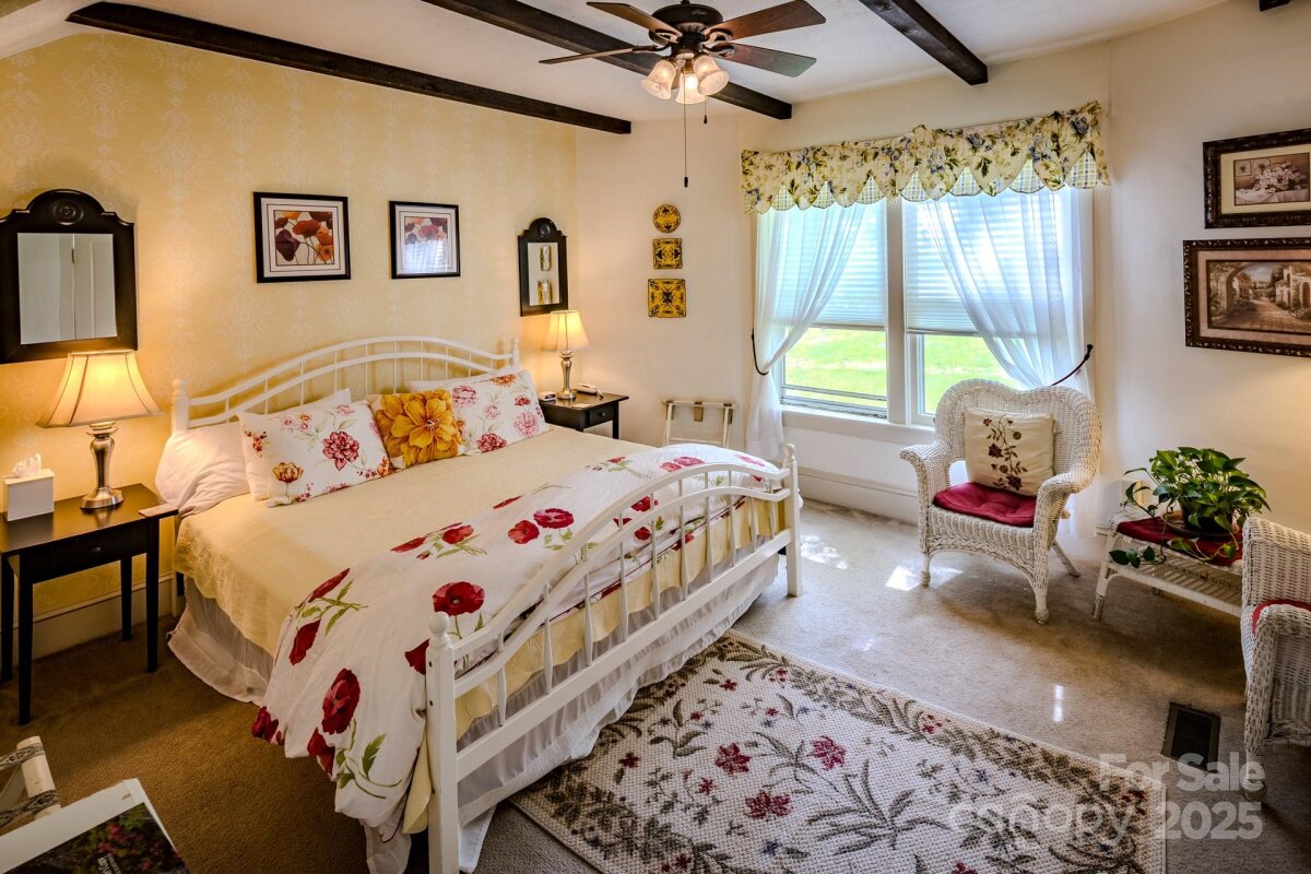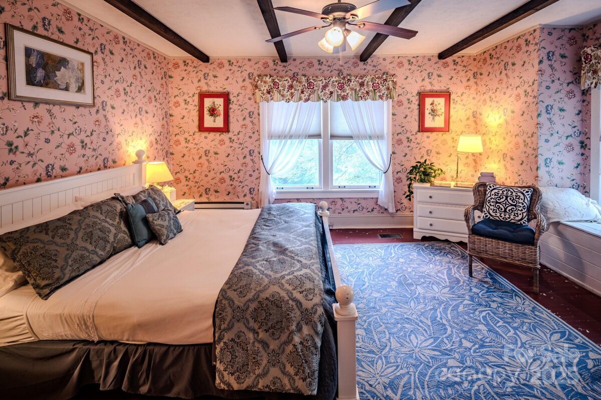 The Taylor House Inn ~ an important piece of Valle Crucis history and an iconic High Country property, brimming with storybook-like charm and offering potential for a number of uses. Nestled just down the street from the original Mast General Store and in close proximity to Valle Crucis Park and the Watauga River, this 3.9+ acre property offers a 7-bedroom/7.5-bath main home, 2 bedroom/2 bath guest home, additional guest cottage, storage & multi-use building, and a detached garage on flat, usable yards with wooded acreage behind (trail potential!) & the sites & sounds of Crab Orchard Creek just across the road. The Taylor House or main home, originally built ~1911 by Squire Taylor himself, lies on the National Register of Historic Places. The perfect place for a homestead, family estate/legacy property, turnkey Inn or B&B, commercial office, or more, this property offers easy access year-round on state-maintained roads and level driveway. The large farmhouse front porch of the Taylor House Inn is the perfect place for overlooking the yards and pastoral mountain views. On the main level, find a formal entry/foyer, living room, den/study, formal dining room, commercial kitchen, primary suite, office, and mudroom – just across the stone patio from the ‘Milk House’, an unfinished storage building housing the laundry room. Off the second level landing, find four bedroom/bathroom suites as well as an additional bedroom and full bath. The third level offers a spacious suite with full bath open to a sitting area. The guest home or ‘Red Cottage’ offers living & kitchenette, primary suite with jetted tub/tiled shower, + guest suite. The other guest cottage, or ‘Flower Cottage,’ offers bonus space + full bath - set up as sleeping area. A detached garage sits next to the flat, usable yards that surround the structures. Fully furnished - minor exceptions! Amenities: high-speed internet, security system, gazebo, some original glass windows & tubs (~1911).