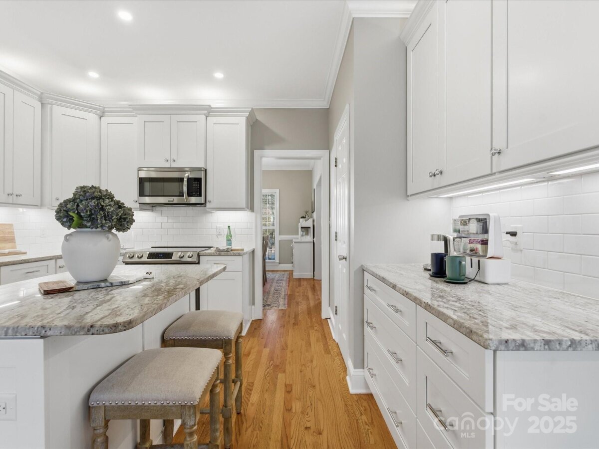 Set on a wooded corner lot. Short stroll to downtown Waxhaw. Fully updated smart home delivers privacy, space, and luxury living. Hrdwds, deep moldings, granite, soft-close cabs, dimmable under/over-cab lighting, upgraded recessed lghts + premium finishes throughout. Main-lvl primary suite has peaceful bkyd views, spa-style remodeled tile bath, walk-in shower, soaking tub + large walk-in clst. Curated landscaping (like Serpentine Weeping Blue Atlas Cedar + Mikawa Yatsubusa Maple). Some of the smart-home upgrades: Yale locks, color-changing recessed lights, Samsung induction range, fridge + W/D. Home features 3 HVAC systems, custom window shades, remodeled tile baths + abundant strg. 4th bedrm/bonus w/ full bath lives like private suite—ideal for guests, office or multi-gen living. Grg wrkshop multi 20-amp circuits + workbench. 55" Samsung Frame TV + 15’x8’ shed. Exceptional cared for like HVAC ducts professionally sanitized, whole house surge protector, expoxy grg flr, spray foam insulation. Turnkey luxury home rivaling new const w/ superior upgrades + almost ½ acre lot, fenced yrd.