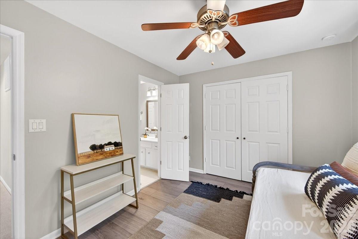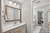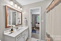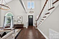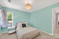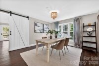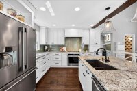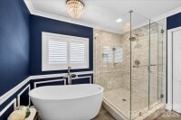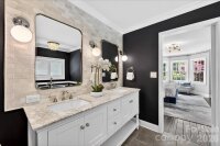 Welcome home to this magnificently updated home in popular Carmel Valley neighborhood. Every main level living surface area has been updated to create a modern space with thoughtful finishes and a layout that allows for an easy flow room to room. Enter via a covered front porch with a foyer that offers views to the rear of the home. A sunken living room to your right gives mid-century vibes with a focal centerpiece stone fireplace with wood mantle. An adjacent dining area provides ample space for your large dining table and offers a bar area with beverage fridge and storage. A large barn door separates the living/dining areas from the kitchen if needed. A modern kitchen features white cabinets, neutral granite counters and a tile backsplash. Enjoy cooking on a gas stovetop with stainless steel appliances throughout. A cozy breakfast area and bar seating in the center island gives you further options for dining and gathering. An adjacent den with half bath finishes off the main living areas. The spacious primary suite includes a large ensuite that features a free standing soaking tub with a tile surround walk-in shower, a dual sink vanity and walk-in closet with custom shelving. Head upstairs to find three bedrooms which share a unique Jack-n-Jill bathroom with dual vanities and a private tub/shower area. You'll find new carpet in two bedrooms and lvp flooring in one. Entertain outdoors on a large deck that steps down onto a travertine patio overlooking a lush green fenced yard with multiple trees and even a chicken coop. Enjoy storage in a climate controlled detached two-car garage with plenty of additional parking in the driveway. Carmel Valley offers a vibrant community feel with close proximity to Carmel Country Club just across the street along with easy access to all the amenities of South Charlotte including SouthPark, Ballantyne and more. Zone for highly rated schools.
