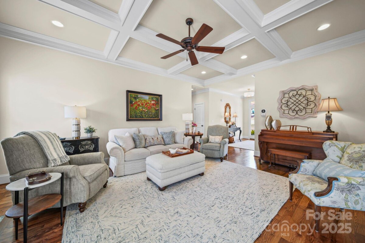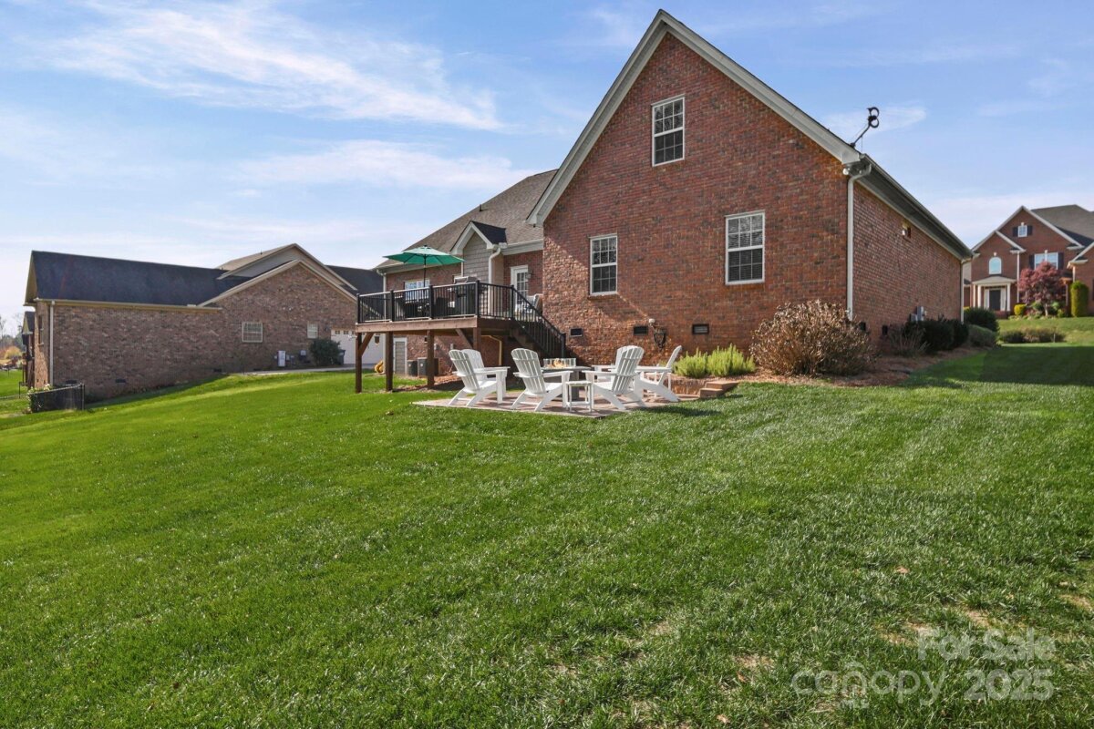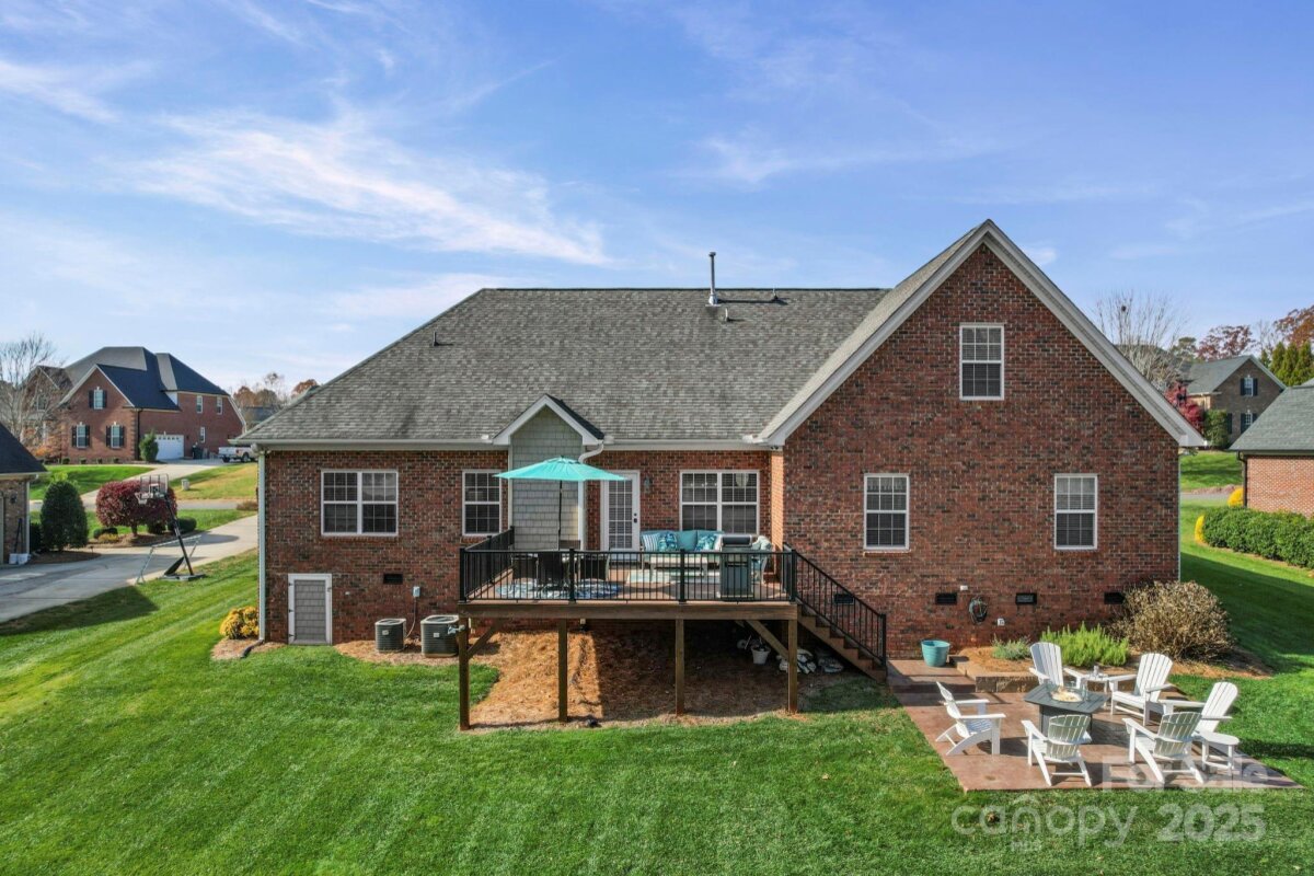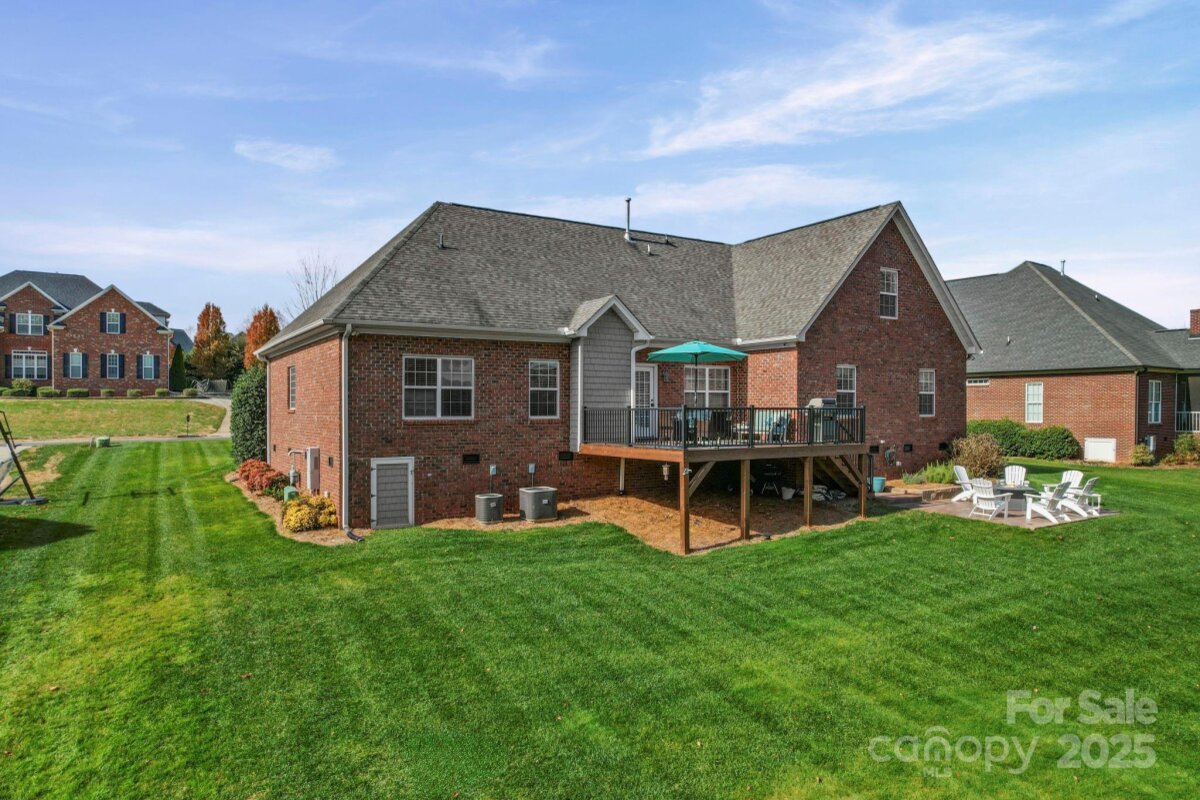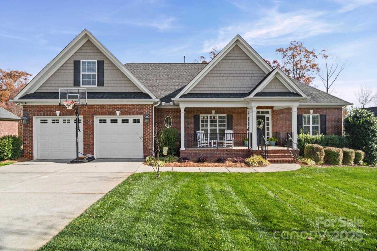 Beautiful custom-built home on over an acre in the highly desirable Cramer Woods neighborhood! Location truly matters — and this one has it all. A welcoming front porch and professionally landscaped yard create stunning curb appeal from the moment you arrive. Inside, you’ll find rich hardwood floors, high ceilings, custom built-ins, and gorgeous coffered ceilings that elevate every space. The split-bedroom layout offers exceptional privacy for the primary suite, while neutral tones, upgraded lighting, and designer finishes make this home completely move-in ready. With 3 bedrooms on the main level, abundant storage, and an open, functional flow, the home is perfect for everyday living. Upstairs features 2 additional flex rooms ideal for an office, bonus room, media room, or guest space. Step outside to your incredible backyard retreat—a large deck overlooking a level, private acre with plenty of room for a fire pit, play areas, or exploring the wooded portion of the property. All of this in a prime location: walking distance to schools, minutes to shopping, hospitals, and I-85, and just 20 minutes to Charlotte Douglas Airport. A rare opportunity for space, privacy, and convenience—don’t miss this one!