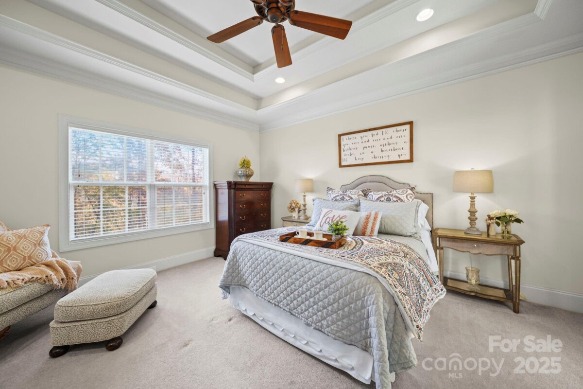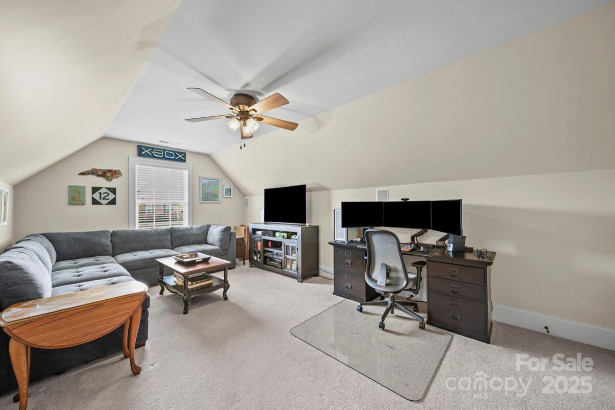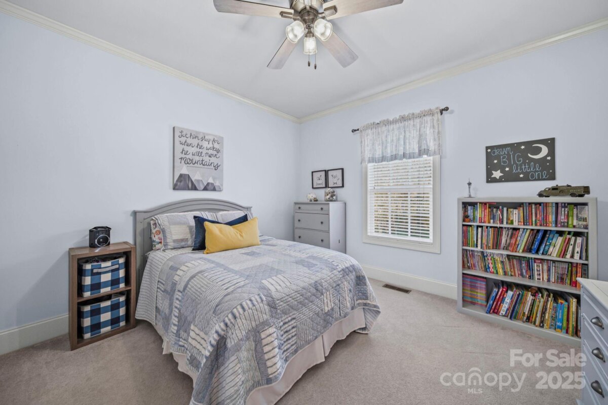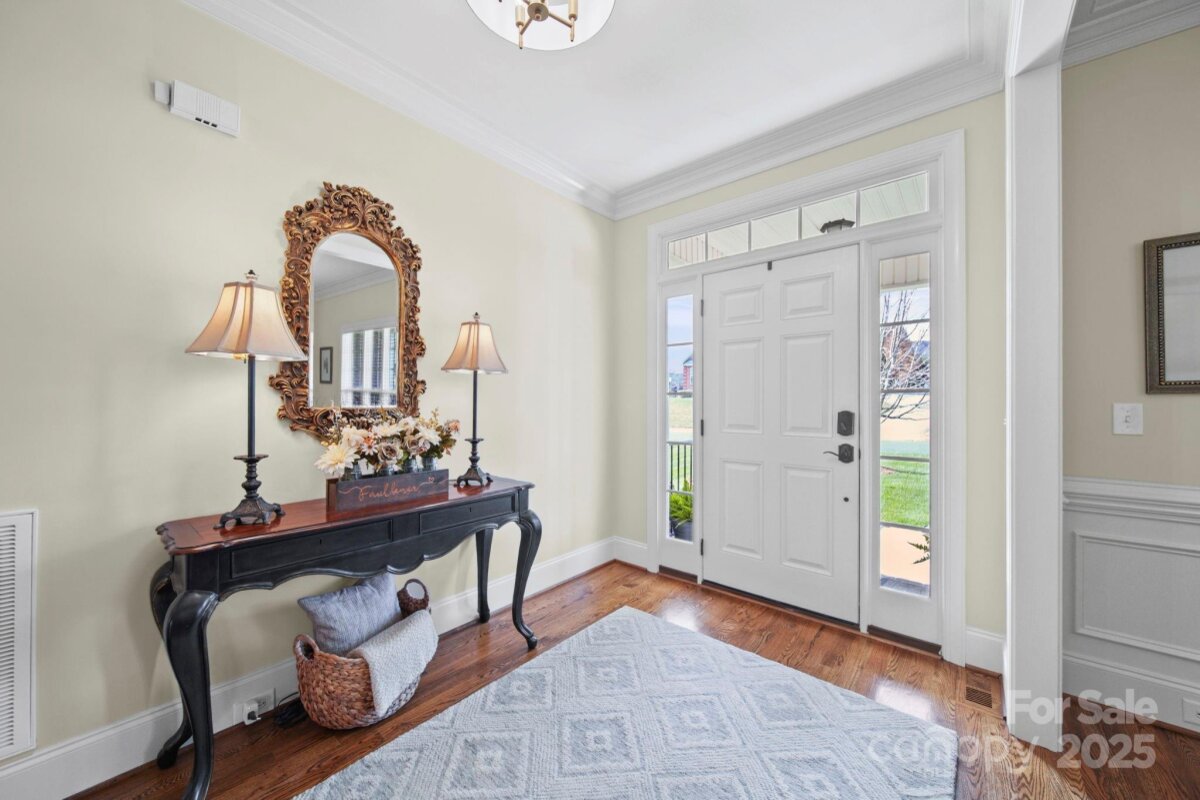 Beautiful custom-built home on over an acre in the highly desirable Cramer Woods neighborhood! Location truly matters — and this one has it all. A welcoming front porch and professionally landscaped yard create stunning curb appeal from the moment you arrive. Inside, you’ll find rich hardwood floors, high ceilings, custom built-ins, and gorgeous coffered ceilings that elevate every space. The split-bedroom layout offers exceptional privacy for the primary suite, while neutral tones, upgraded lighting, and designer finishes make this home completely move-in ready. With 3 bedrooms on the main level, abundant storage, and an open, functional flow, the home is perfect for everyday living. Upstairs features 2 additional flex rooms ideal for an office, bonus room, media room, or guest space. Step outside to your incredible backyard retreat—a large deck overlooking a level, private acre with plenty of room for a fire pit, play areas, or exploring the wooded portion of the property. All of this in a prime location: walking distance to schools, minutes to shopping, hospitals, and I-85, and just 20 minutes to Charlotte Douglas Airport. A rare opportunity for space, privacy, and convenience—don’t miss this one!