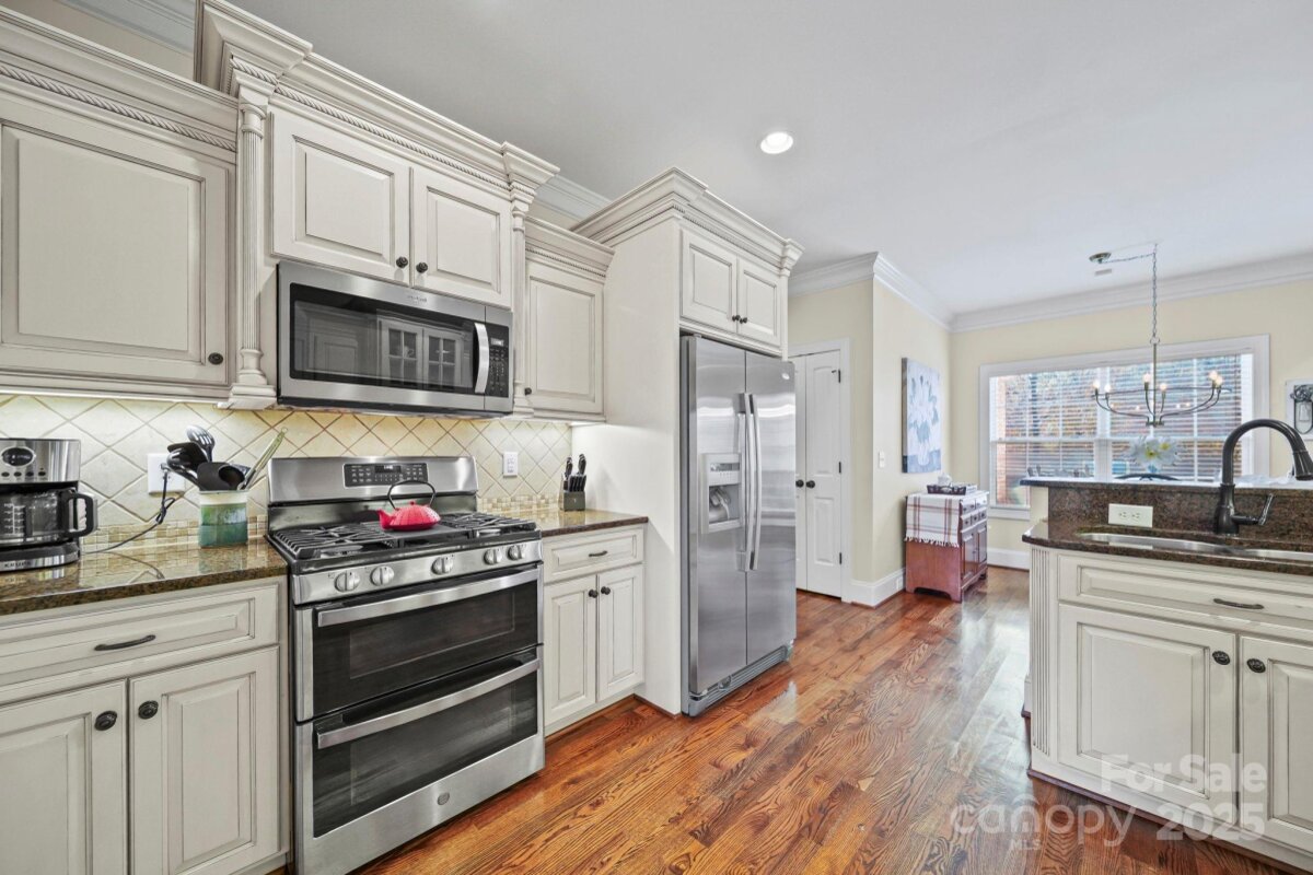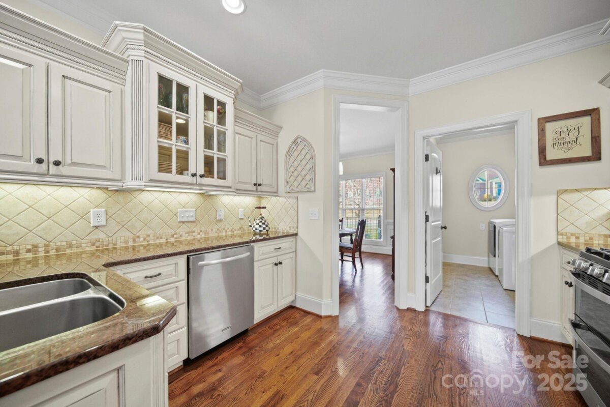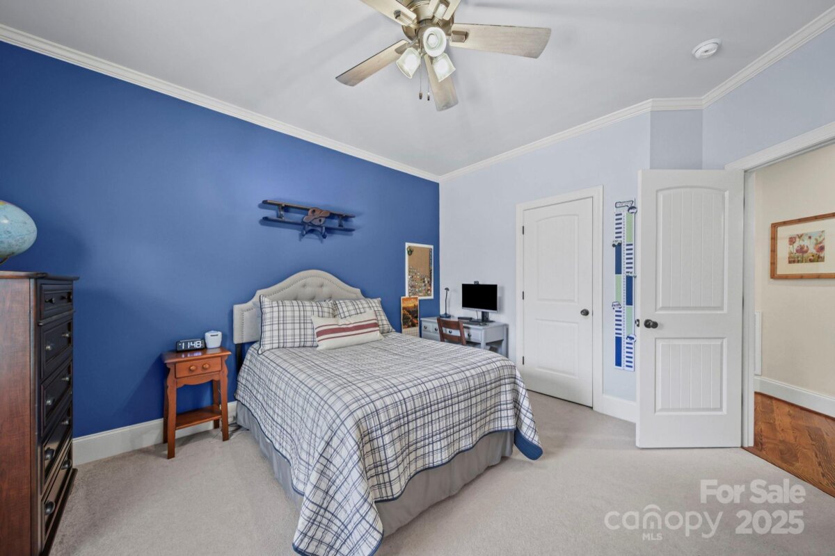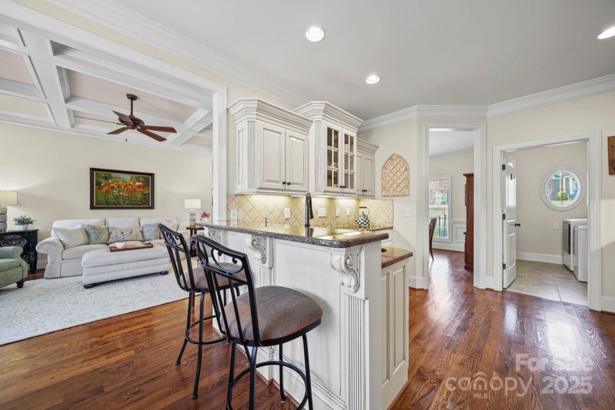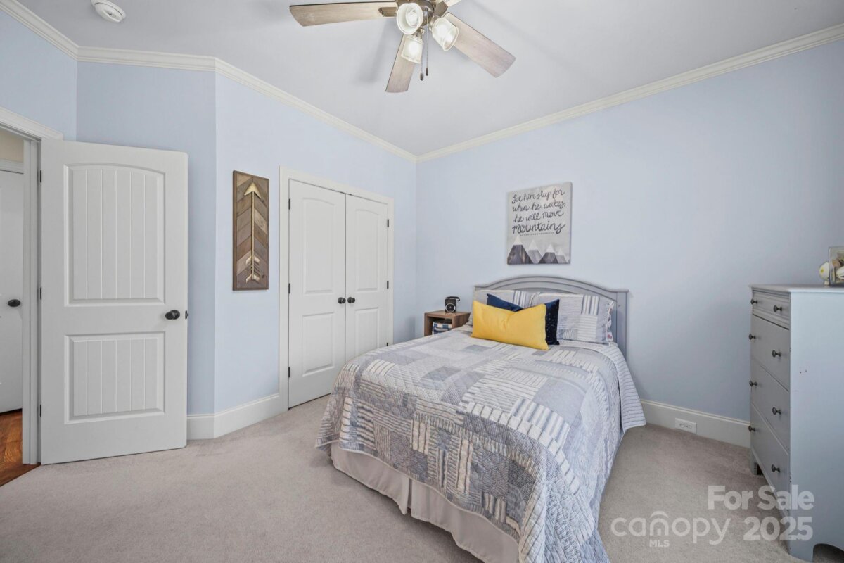 Beautiful custom-built home on over an acre in the highly desirable Cramer Woods neighborhood! Location truly matters — and this one has it all. A welcoming front porch and professionally landscaped yard create stunning curb appeal from the moment you arrive. Inside, you’ll find rich hardwood floors, high ceilings, custom built-ins, and gorgeous coffered ceilings that elevate every space. The split-bedroom layout offers exceptional privacy for the primary suite, while neutral tones, upgraded lighting, and designer finishes make this home completely move-in ready. With 3 bedrooms on the main level, abundant storage, and an open, functional flow, the home is perfect for everyday living. Upstairs features 2 additional flex rooms ideal for an office, bonus room, media room, or guest space. Step outside to your incredible backyard retreat—a large deck overlooking a level, private acre with plenty of room for a fire pit, play areas, or exploring the wooded portion of the property. All of this in a prime location: walking distance to schools, minutes to shopping, hospitals, and I-85, and just 20 minutes to Charlotte Douglas Airport. A rare opportunity for space, privacy, and convenience—don’t miss this one!