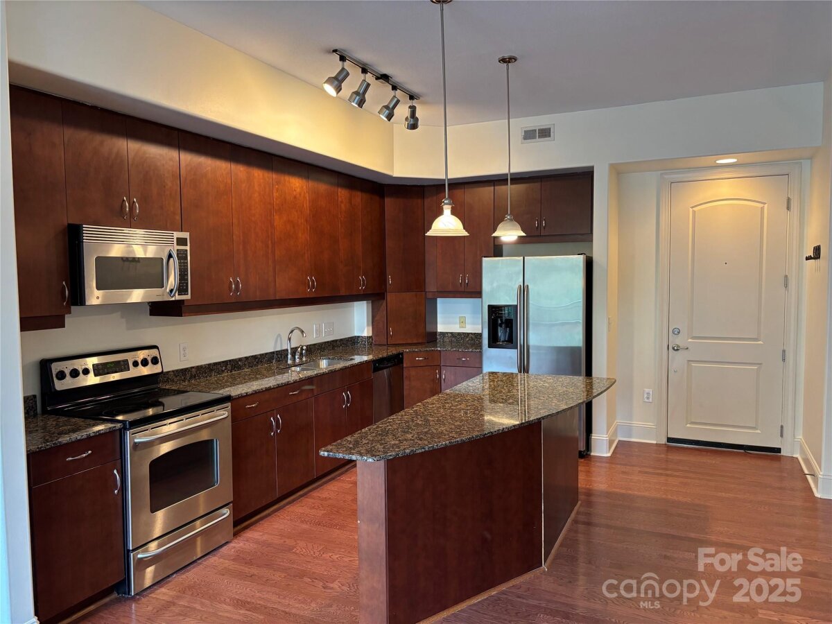 Discover this charming 1-bedroom, 1-bathroom condo perfectly situated in the vibrant heart of SouthPark. Nestled on the serene backside of Piedmont Row, this property offers exceptional tranquility and delightful views from its covered balcony. The condo features a spacious open-concept kitchen, complete with stainless steel appliances and elegant granite countertops. Enjoy the convenience of being surrounded by top-tier dining, extensive shopping options, fitness centers, and a plethora of other amenities that make SouthPark such a desirable location. This property also includes a large private storage unit, on-site security, and a deeded parking spot, ensuring comfort and peace of mind. Come experience the best of urban living in this vibrant area!