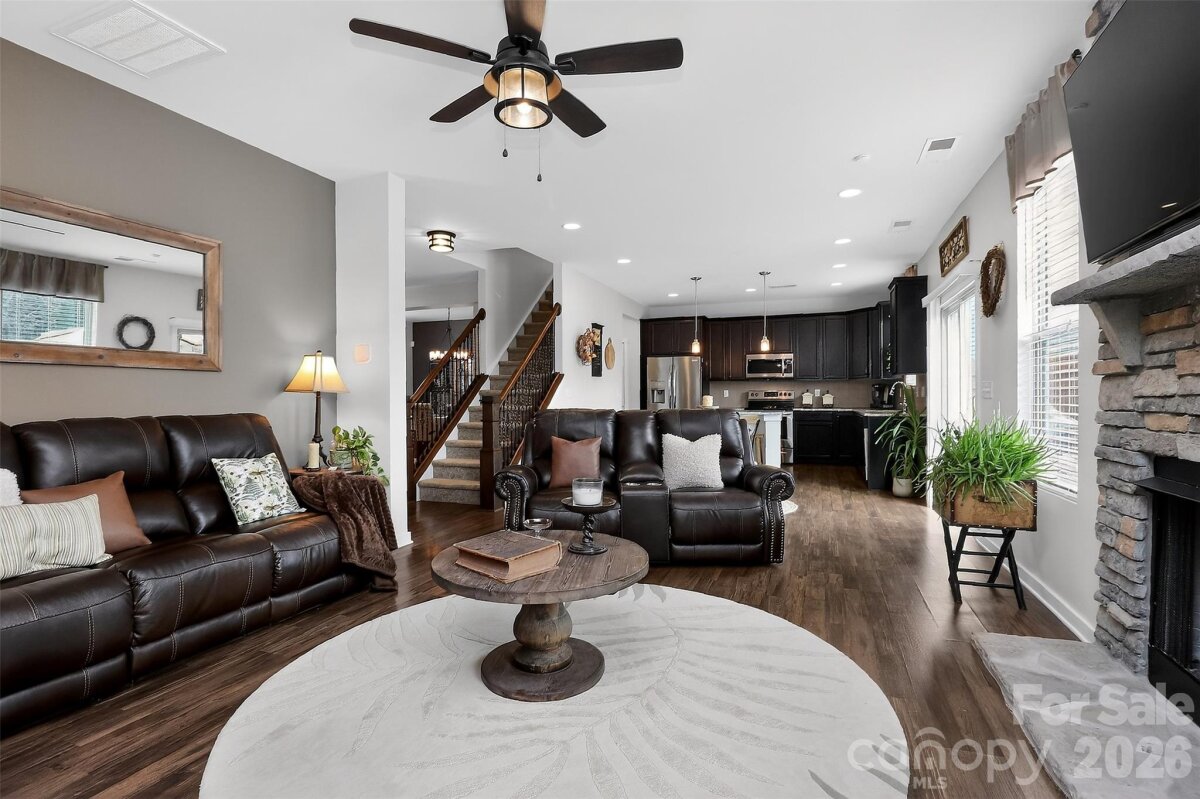 This beautifully maintained single-family home offers thoughtful updates, modern finishes, and move-in-ready convenience. The main level features durable and stylish luxury vinyl plank flooring, creating a seamless, contemporary look perfect for everyday living and entertaining. Upstairs, comfortable carpeting adds warmth to the private living spaces. The kitchen has been tastefully updated with granite countertops (2026), complemented by a spacious walk-in pantry plus a second storage pantry—providing exceptional storage and functionality. A new microwave was installed in 2024, adding modern convenience. Major system upgrades provide peace of mind, including a new HVAC system installed in August 2025 and a Wi-Fi-enabled thermostat for energy-efficient climate control. Updated lighting fixtures throughout the home enhance the bright, refreshed interior, which was freshly painted in 2022. Additional features include a transferable ADT security system, offering added security and value for the next homeowner. With its blend of recent upgrades, generous storage, and smart-home features, this home presents an outstanding opportunity in a convenient Charlotte location.