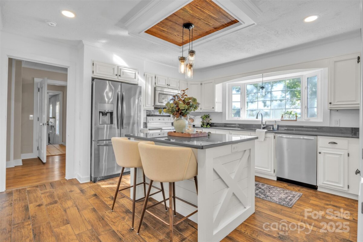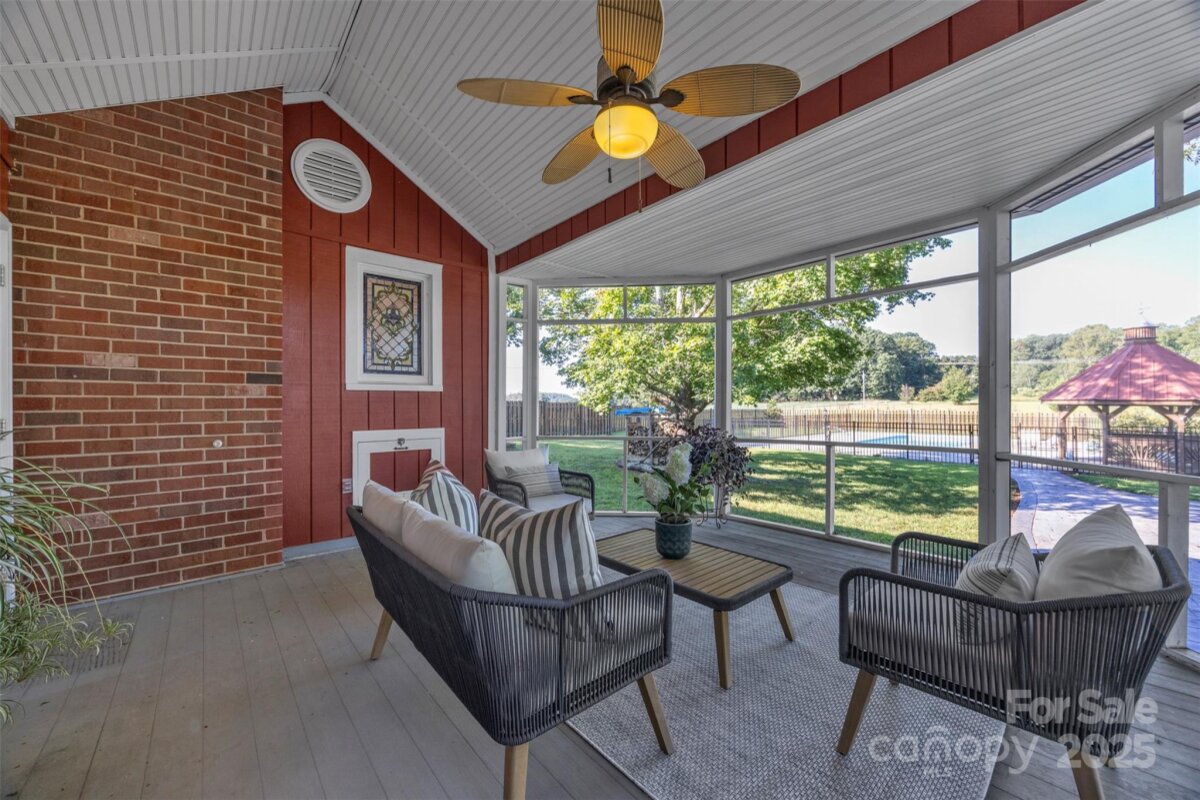 Step back in time and fall in love with a home that tells a story. Tucked away on 8 serene acres in Statesville, this enchanting Colonial was first built in 1890 and has been thoughtfully expanded over the years, blending historic charm with modern comforts. From the moment you step inside, the details will capture your heart—soaring ceilings, warm wood floors crafted from original pine and oak, delicate glass doorknobs, colorful stained glass, and timeless built-ins that whisper of another era. Imagine cozy winter evenings gathered in the living room, a fire glowing in the hearth, or bright summer mornings with the sun pouring into your renovated 2022 kitchen, where cooking becomes less of a task and more of a joy. The main level offers convenience with a bedroom and full bath, while the upstairs—reached by two beautiful staircases—offers a quiet retreat with two additional bedrooms, an office, and abundant attic storage. Life here is about space to breathe. The screened-in porch with a convenient half bath beckons you to slow down with a glass of sweet tea while overlooking your own backyard paradise. Spend afternoons lounging by the in-ground pool (liner and sand filter replaced in 2020) or relaxing under the gazebo. The property is dotted with apple, pecan, and black walnut trees, along with blueberries, muscadine grapes —a gardener’s dream and a homesteader’s delight. The basement, though unfinished, offers a wide-open layout with a working wood stove ideal. Whether you dream of a art studio, or hobby space, this property delivers. Additional highlights include two HVAC units, a mudroom, dedicated bar space, workshop area, chimneys swept with custom caps installed in 2017. This property is a true balance of history and modern updates, offering a rare opportunity to own a home that is as functional today as it was enchanting more than a century ago. This one-of-a-kind estate is a remarkable blend of history, character, and modern comfort—A place to host, grow, rest, and create memories for generations to come.
