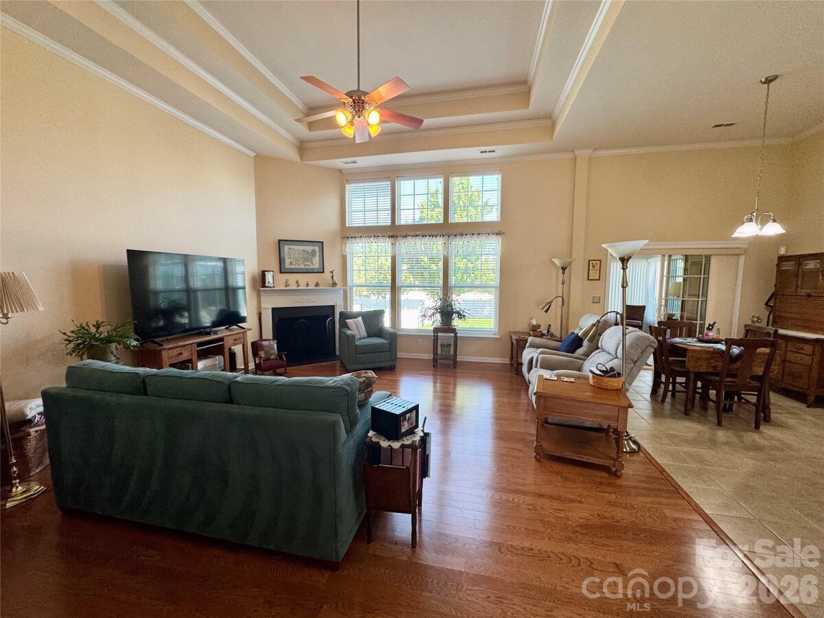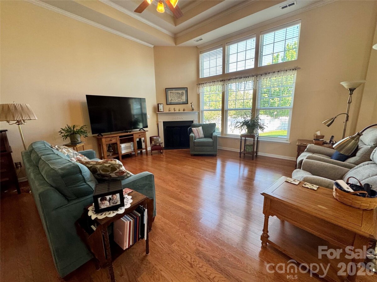 Welcome home to this beautifully maintained property in the highly sought-after Glengrove neighborhood, where a welcoming and expansive front porch sets the tone for everything inside. This thoughtfully designed open floor plan features three bedrooms and two full baths on the main level, offering both comfort and convenience. The dining room’s charming bay windows fill the space with natural light, creating a warm and inviting atmosphere. The kitchen is a standout, showcasing granite countertops, crisp white cabinetry, and stainless steel appliances—with the refrigerator included. It opens seamlessly to the living room and breakfast area, making it perfect for entertaining family and friends. The living room impresses with a tray ceiling, a wall of windows that bring the outdoors in and a cozy gas log fireplace for those cooler evenings. Just off the main living space, a 14x14 sunroom provides additional flexible living space to relax and unwind. The primary suite is a true retreat featuring a second bay window for a sitting area, an ensuite bath, and a spacious walk-in closet. Upstairs, you’ll find an oversized fourth bedroom or bonus room complete with a full bath and walk-in closet—ideal as a home theater, guest suite, or teen hangout. For added peace of mind, major updates include a roof replacement in 2018, HVAC system in 2019 (with biannual maintenance), and a water heater in 2022. Additional features include a central vacuum system (sold as-is with no known issues) and a washer and dryer that convey with the home. The neighborhood offers a large swimming pool and playground.