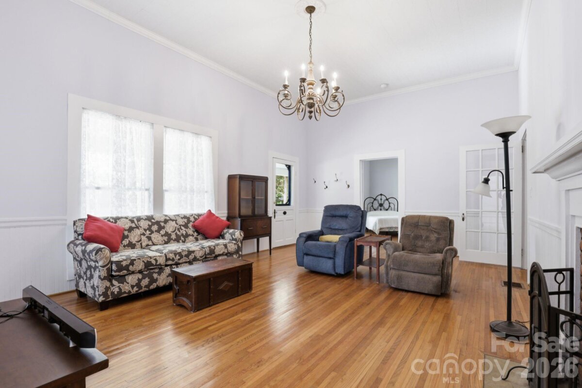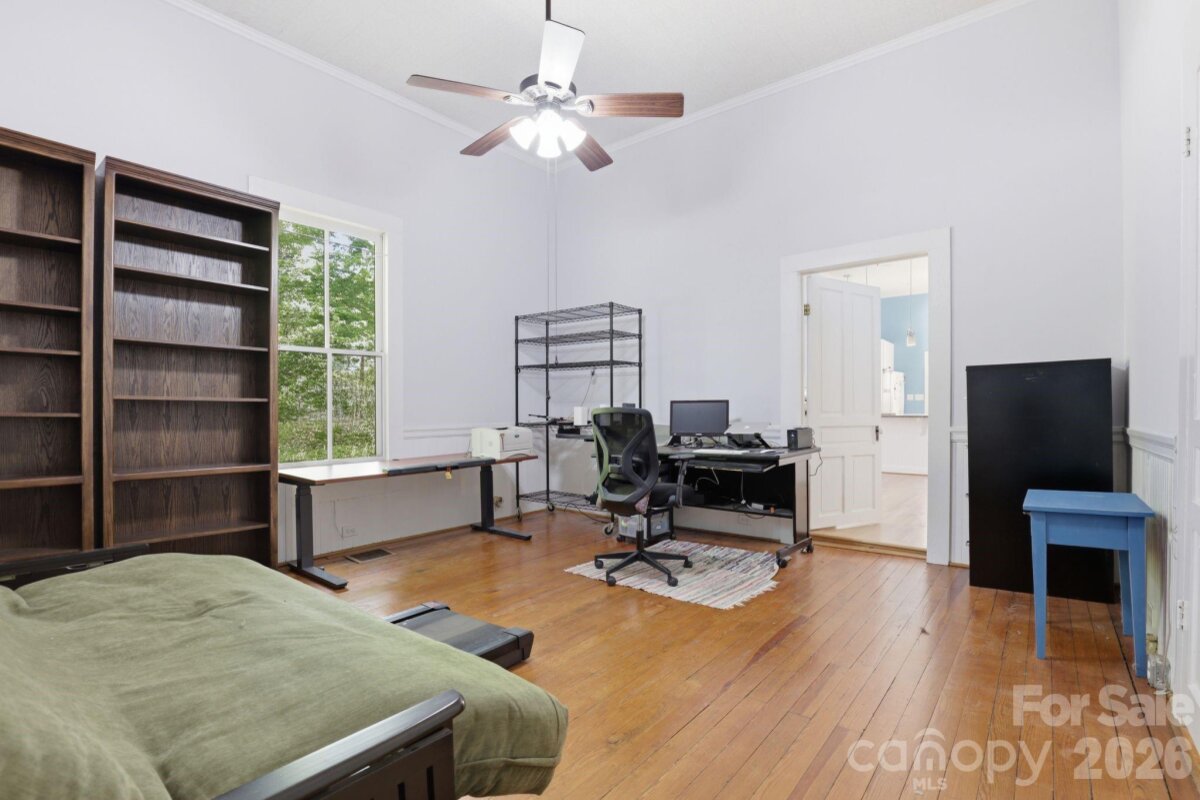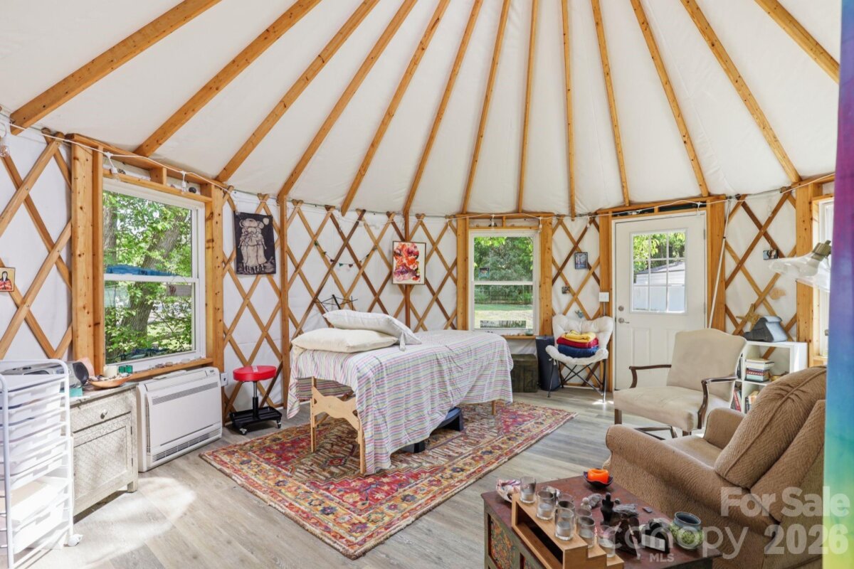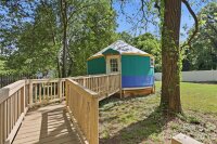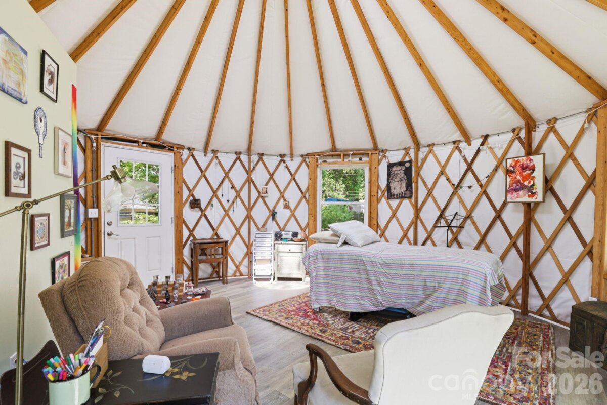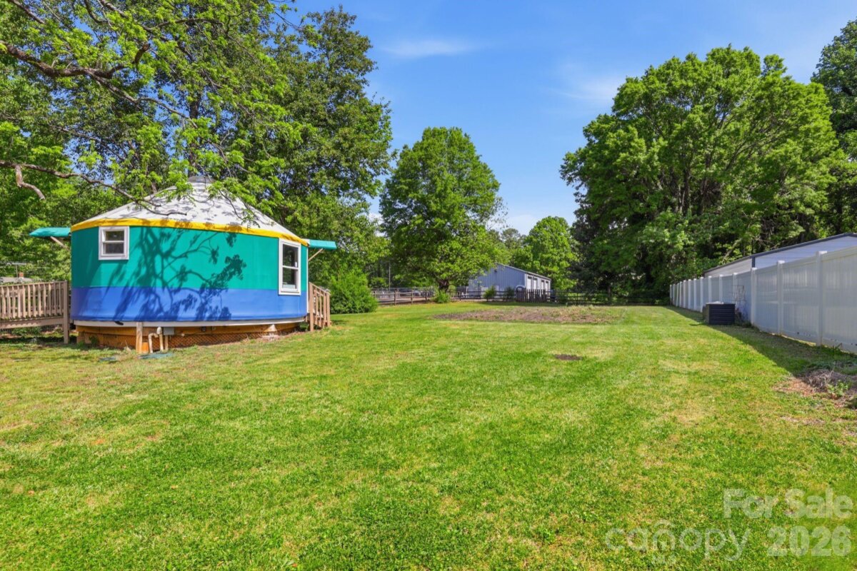 Welcome to this beautifully maintained and updated 1906 home just a short distance from the vibrant downtown area of Mooresville, offering the perfect blend of historic charm and modern comfort. This inviting property features 3 bedrooms and 2 full bathrooms. The secondary bedrooms are connected by a convenient Jack and Jill bathroom, providing great functionality and privacy. The spacious primary suite showcases a well-appointed bath with a large walk-in shower, soaking tub, dual sinks, and a generous walk-in closet. A dedicated office with private access to the covered front porch creates an ideal work-from-home space or quiet retreat. The kitchen offers abundant cabinetry and granite countertops, making it both stylish and highly functional for everyday living and entertaining. Enjoy outdoor living on the covered back deck overlooking a fenced half-acre lot. The property also includes two large storage sheds for additional storage and flexibility. A standout feature is the ramp leading to a versatile yurt space complete with a half bath, heating and air and is perfect for a private office, studio, or relaxing escape. Full of character, charm, and thoughtful updates throughout, this home is a rare find just minutes from downtown Mooresville.