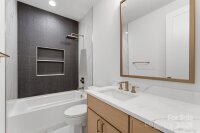 Discover the latest new construction home from the highly popular Northway Homes Signature Series, offering luxury-grade craftsmanship, high-end finishes, and designer lighting, all within minutes of Charlotte’s top schools, dining, shopping, and entertainment. This brand-new, 3300 sq. ft. Madison Park residence features a bright, open-concept main level with 10-foot ceilings and seamless flow between the living, dining, and chef’s kitchen. The kitchen showcases premium stainless steel appliances, a wine refrigerator, quartz countertops with full backsplash, custom cabinetry, a walk-in pantry, and a large island centerpiece with seating for 3–4. The large main living area opens to a covered rear deck and a private backyard, perfect for year-round entertaining. The main-level primary suite offers a spa-like bath with dual vanities, a standalone tub, a glass-enclosed shower, a private water closet, and a custom walk-in closet. An office and an oversized two-car garage complete the first floor. Upstairs, 9-foot ceilings frame a thoughtful layout featuring three bedrooms, a spacious bonus room ideal as a fourth bedroom or office, a Jack-and-Jill bath, an additional full bath, a laundry room with custom shelving, and an unfinished storage area. Additional highlights include engineered hardwoods throughout, porcelain tile in baths, a tankless water heater, and top-tier insulation and weatherproofing systems. Ideally located in Madison Park, this home is minutes from Park Road Shopping Center, Montford, SouthPark, South End, major highways, and a short drive to Uptown and CLT Airport. Don’t miss your chance to tour this exceptional new construction home!