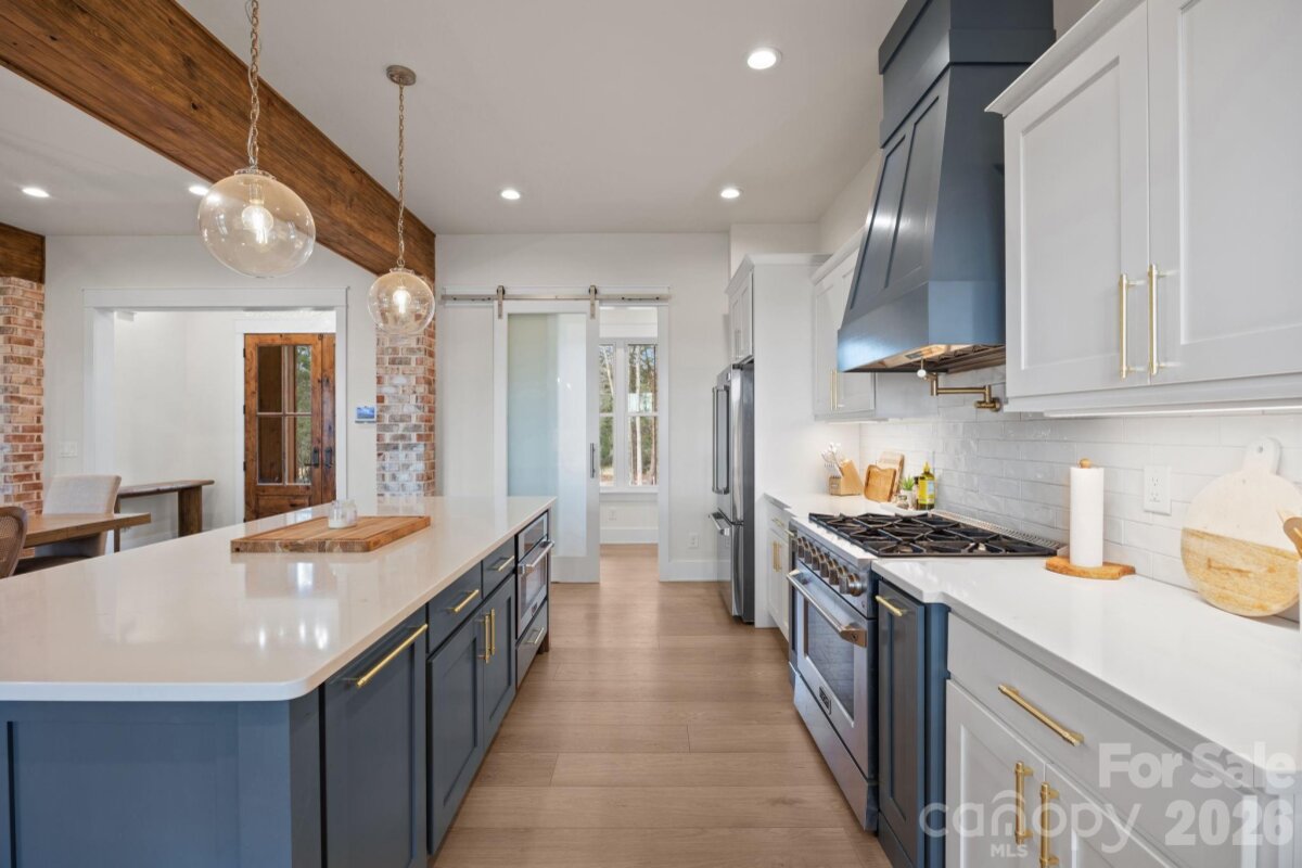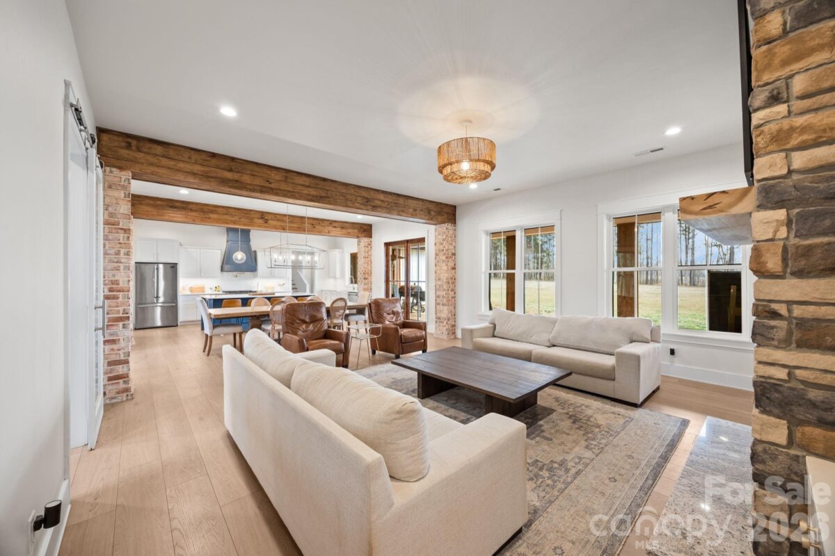 Welcome to 465 Baxx Drive, where breathtaking privacy and exceptional craftsmanship come together on 14.21 acres of tranquil countryside. From the moment you arrive, the inviting rocking chair covered front porch sets the tone for the remarkable home that awaits inside. Step through the grand double doors into an open, airy floorplan. Soaring 10-foot ceilings and 8-foot custom doors create a sense of elegance throughout. The stunning living room is the heart of the home, featuring a floor-to-ceiling stone fireplace, custom built-ins, and a stylish bar area. The open dining area flows seamlessly into the chef’s gourmet kitchen, a true showpiece boasting custom cabinetry, soft-close drawers and cabinets, quartz countertops, tile backsplash, and an oversized center island. High-end stainless steel Kutch appliances, including the refrigerator, and a spacious walk-in pantry. Convenience meets thoughtful design with a main-level laundry room complete with abundant cabinetry and generous quartz counter space. The luxurious primary suite is a private retreat featuring a large walk-in closet, double vanity, soaking tub, and an expansive walk-in tile shower. On the opposite side of the home presents two generously sized bedrooms that share a well appointed bathroom. Upstairs, you’ll find a versatile bonus room and full bathroom, perfect for a guest suite, home office, or recreation space. Step outside and experience the true beauty of this property. The covered back porch with pine tongue-and-groove ceilings provides the perfect place to relax and take in the peaceful surroundings. With 14.21 acres of private land, there is endless opportunity for exploring nature, gardening, or simply enjoying the serenity of your own personal retreat. Impeccable finishes, stunning design, and unmatched privacy make this one-of-a-kind property a place you’ll want to call HOME!