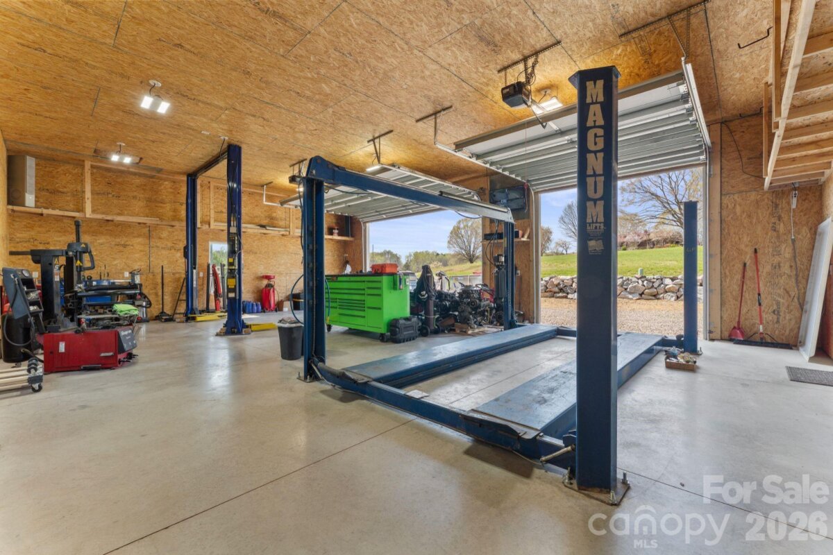 This well-appointed home sits on 2.06 acres, complete with a peaceful creek flowing along the back of the property. Enjoy luxury country living at its finest—while still being conveniently close to everything you need. Car enthusiasts and hobbyists will appreciate the impressive approximately 1,200 sq ft (30’ x 40’) detached garage/workshop that is fully insulated and equipped with two Magnum 10,000 lb car lifts, a camera system, surround sound, and a gas pack for heating and cooling. With 10’ doors and 12’ ceilings, it’s built to handle it all. The stunning heated and cooled in-ground pool and spa create a serene setting, perfect for entertaining or relaxing during quiet evenings at home. A cozy fire pit adds the perfect touch for cooler nights under the stars. Inside, the home features an open floor plan with spacious rooms throughout, offering both comfort and functionality. The home boasts a large kitchen with a massive walk-in pantry, an island with seating, stainless steel appliances, and a stylish subway tile backsplash. A convenient drop zone is located at the garage entry. Upstairs, the primary suite offers a large walk-in closet, double vanity sinks, tiled shower walls and flooring, and a private water closet. Two additional bedrooms, a full hall bath with tile flooring, a linen closet, and a tiled laundry room complete the upper level. You’ll also find a spacious loft and a huge bonus room with double-door entry—perfect for a media room, office, or play space. Upgrades throughout include spray foam insulation, quartz countertops, and comfort-height elongated toilets. A dedicated tablet—conveying with the home—controls the pool functions and outdoor lighting for added convenience. Underground power lines enhance the property’s clean and scenic landscape. Located in Troutman, nestled between Statesville and Mooresville, this area offers charming small-town living with exciting growth and expansion underway. Enjoy easy access to Lake Norman, as well as Charlotte, Greensboro, Hickory, and Winston-Salem. This property truly has it all—a rare find and a must-see!