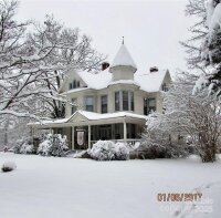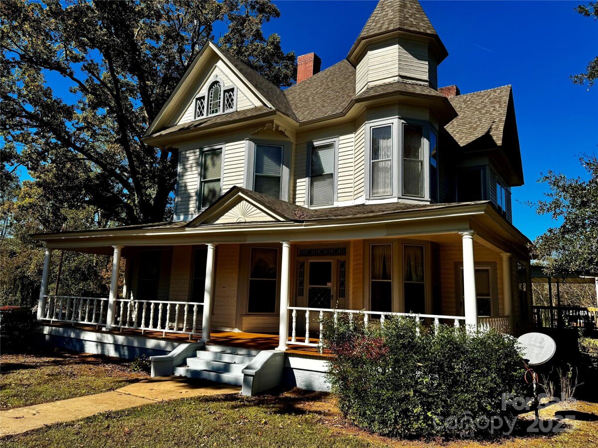 This is a lovely Victorian home. Septic permit allows 4 bedrooms. There is also a large bonus room upstairs. High ceilings, vintage lighting, and ornamental details make this home a treasure. It features an octogonal tower, stained glass windows at the front door and attic gables, 7 FIREPLACES, and a relaxing front porch. The front porch has recently been rebuilt and painted. There is a sitting room, an office, a laundry room, and a sitting porch off of the kitchen with double screen doors leading out. The downstairs bathroom has a clawfoot tub and the upstairs bath has a shower. There is lots of storage in the attic. The ceilings are 10' high. It has been estimated by the county to have been built in 1901, however, owners suspect it might be older than that. The listing includes a second spacious lot. It is .96 acres and invites a game of family football, badminton, of other activities. The seller is motivated.