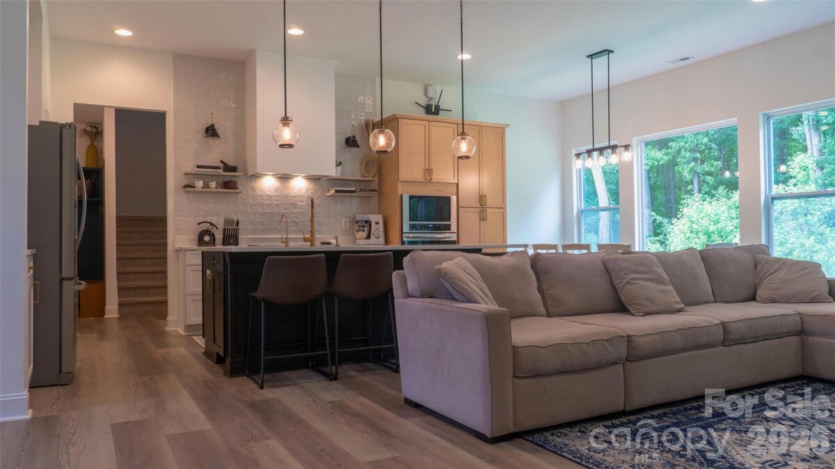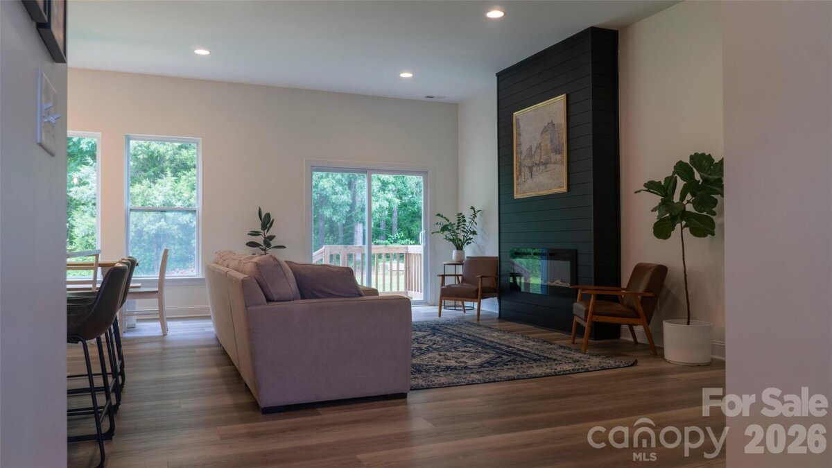 Modern ranch 4-bed, 2.5-bath ranch on 10.2 acres, accessed via a 0.8-mile private-shared gravel road. Features open-concept living, large windows, LVP flooring, black shiplap fireplace, quartz gourmet kitchen with walk-in pantry, and custom mudroom. Bonus room upstairs and flex room for office. Outside: fig-trees, fruit trees, chicken coop, and a fenced run. A peaceful blend of style, space, and country living.