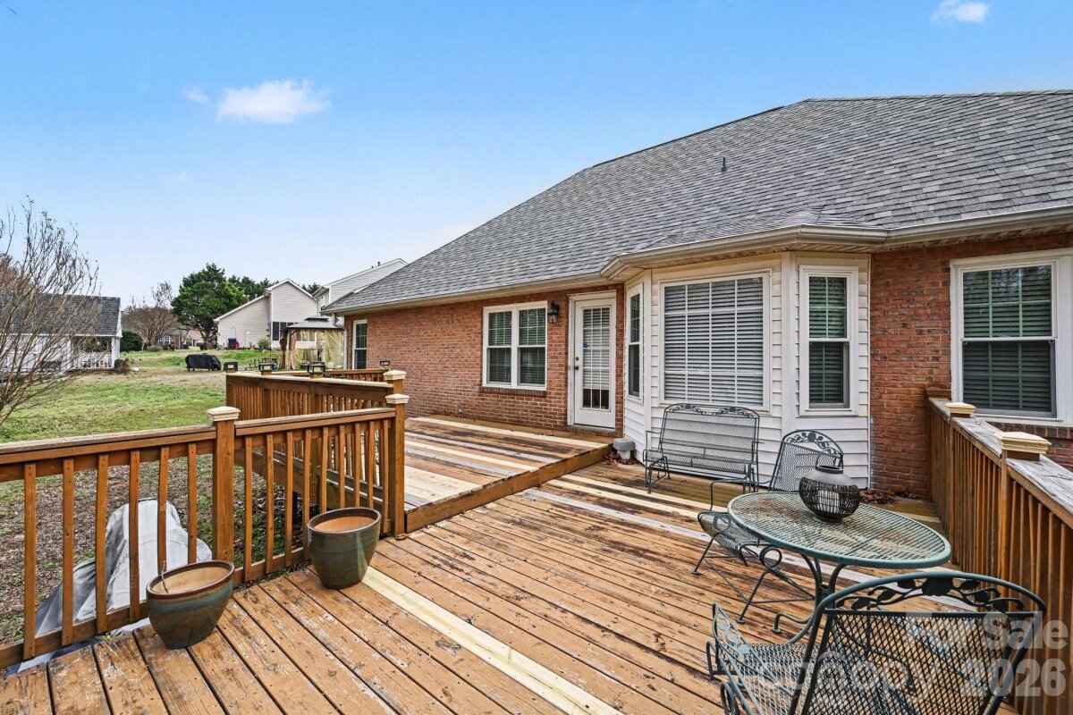 Full brick ranch on a quiet cul-de-sac in the desirable Cornerstone neighborhood with private wooded views. Move-in ready with wood floors throughout, vaulted ceilings, and a spacious great room featuring a corner fireplace. Kitchen offers granite countertops, tile backsplash, and bay windows. Major updates include a brand-new roof (2 months old), tankless water heater, and HVAC/AC less than 3 years old. The back deck is perfect for relaxing or entertaining. Comfort, privacy, and quality throughout.