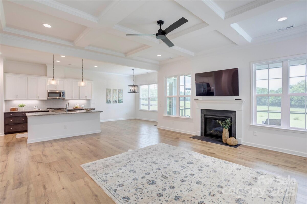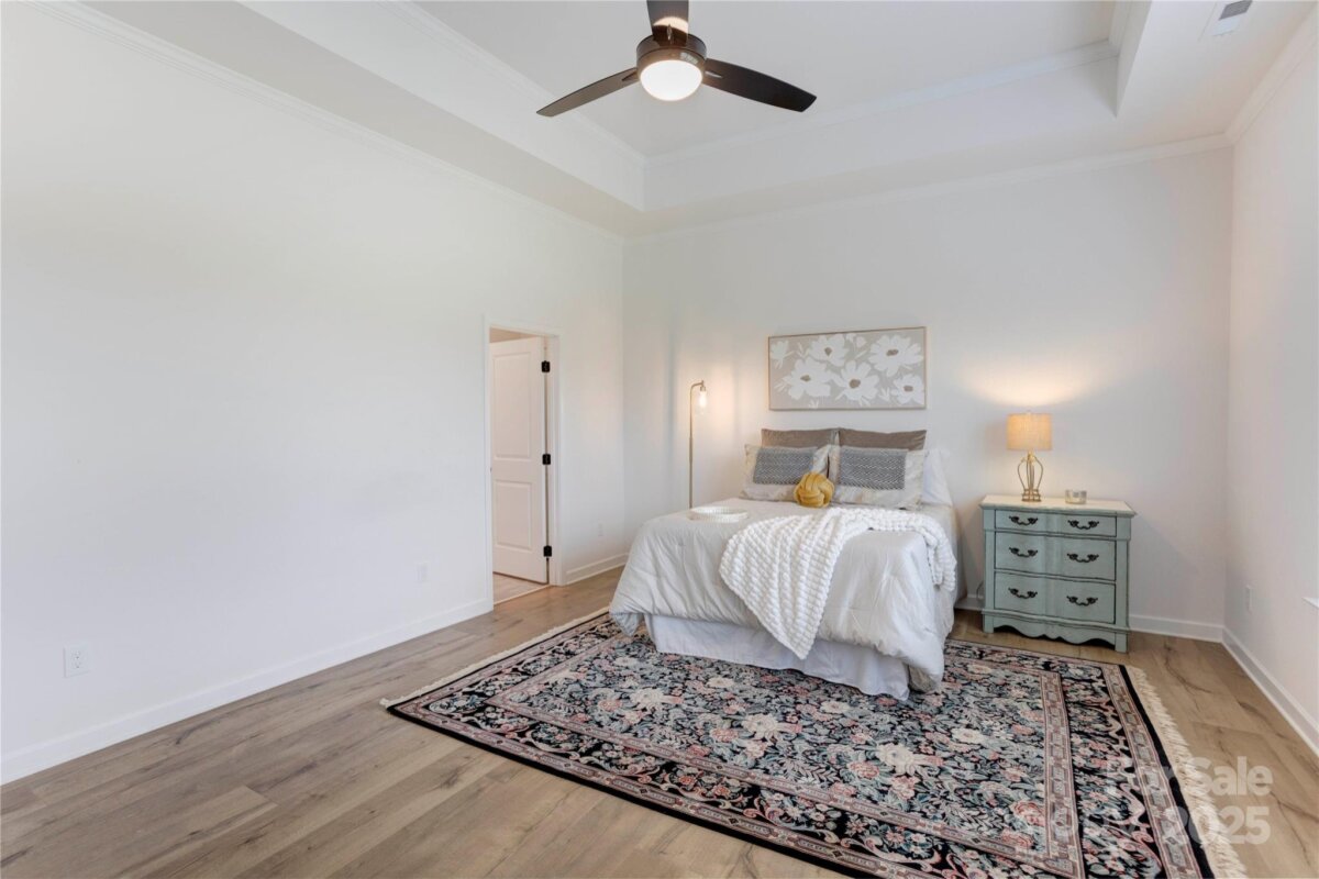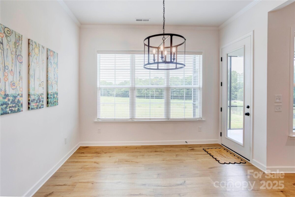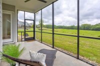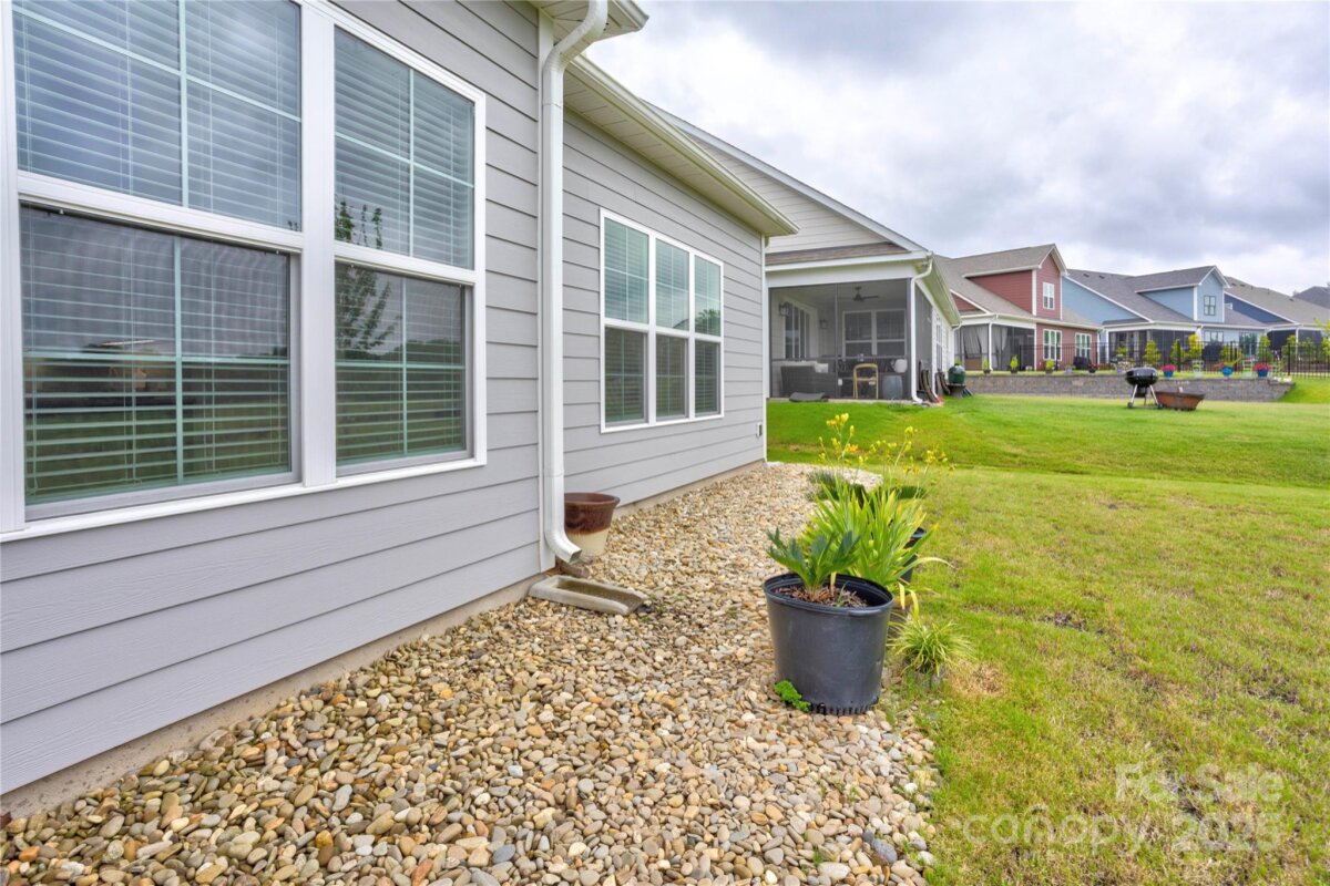 Welcome to this premier homesite in Red Hill—a charming Niblock community rich in history. Backing to the scenic Carolina Thread Trail, this 2023-built ranch, the Avalon, is better than new and filled with thoughtful upgrades. Step inside to find 10-foot ceilings, oversized windows, and a bright, open-concept layout that seamlessly blends comfort and style. This 3-bedroom 2 bath, split-bedroom floor plan offers privacy and functionality, including a spacious primary suite with a tiled walk-in shower, and dual vanities. Enjoy peaceful mornings on your screened-in patio overlooking a picturesque stone bridge lighted in the evenings. Additional highlights include coffered and tray ceilings, luxury vinyl plank flooring, granite countertops, stainless steel appliances, and a large kitchen island perfect for entertaining. Primary closet connects to laundry room. A versatile flex space makes an ideal home office or hobby room.