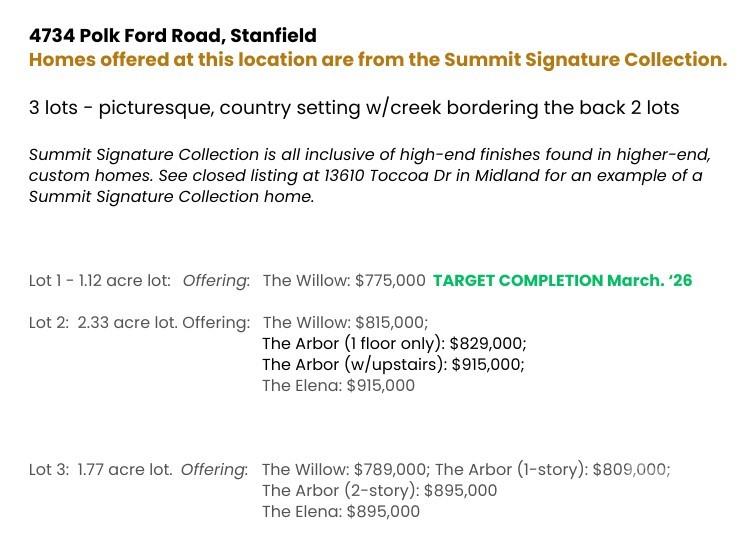 Tucked back off Polk Ford Road down a private paved driveway, this 3,005 sq ft Arbor floor plan offers privacy and flexibility in a peaceful country setting. The gently sloping homesite features a natural creek bed along the rear property line. This popular one-story layout includes four bedrooms plus a dedicated office, designed with both functionality and flow in mind. The open-concept living area centers around a gourmet kitchen with an oversized island and a spacious walk-in pantry, seamlessly connecting to the main living spaces for easy entertaining and everyday comfort. If you need more space, an optional bonus room plus full bath adds great flexibility. This upgrade is $86,000. With no HOA and covenants that allow for a potential outbuilding in a designated area of the lot, this property offers rare flexibility for those needing additional storage, workshop space, or future expansion. NOTE: There will be a privacy fence added behind the neighbor's back yard, providing additional privacy for this parcel. Loaded with upgraded finishes included (just come & choose your colors!) and thoughtful details throughout, this home combines smart design, versatility, and elevated features in a desirable rural setting. Check out our included features. If there is an upgrade you'd like to add, we can do it!