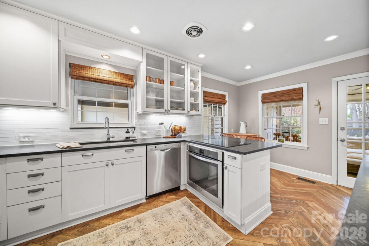 Tucked away in a prime location between Myers Park and Cotswold, this beautifully maintained home offers a rare blend of privacy, character, and convenience. Set along walkable, tree-lined neighborhood streets, the property feels serene and established, yet remains just minutes from Charlotte’s most vibrant shopping, dining, villages, and everyday amenities. Inside, real hardwood floors run throughout much of the home, complemented by thoughtfully renovated bathrooms and an updated kitchen designed for both function and gathering. Just off the kitchen, an enclosed sunroom provides a cozy sitting area that flows effortlessly to the back deck and yard, creating the perfect setting for entertaining or quiet evenings at home. Outdoors, the property truly shines. The backyard is private and thoughtfully landscaped, offering a peaceful retreat that comes alive at night with professionally installed landscape lighting in both the front and back yards. A charming koi pond tucked just off the back deck adds a tranquil focal point, while mature landscaping throughout the lot reflects the care and intention behind every detail, ideal for those who appreciate the art of maintaining a well-curated outdoor space. As evening falls, the illuminated yard creates a warm, inviting atmosphere rarely found this close to the heart of the city. This home offers the best of both worlds..tucked-away tranquility paired with unbeatable access to everything Charlotte has to offer. A special opportunity to own a home where location, lifestyle, and thoughtful design come together seamlessly.
