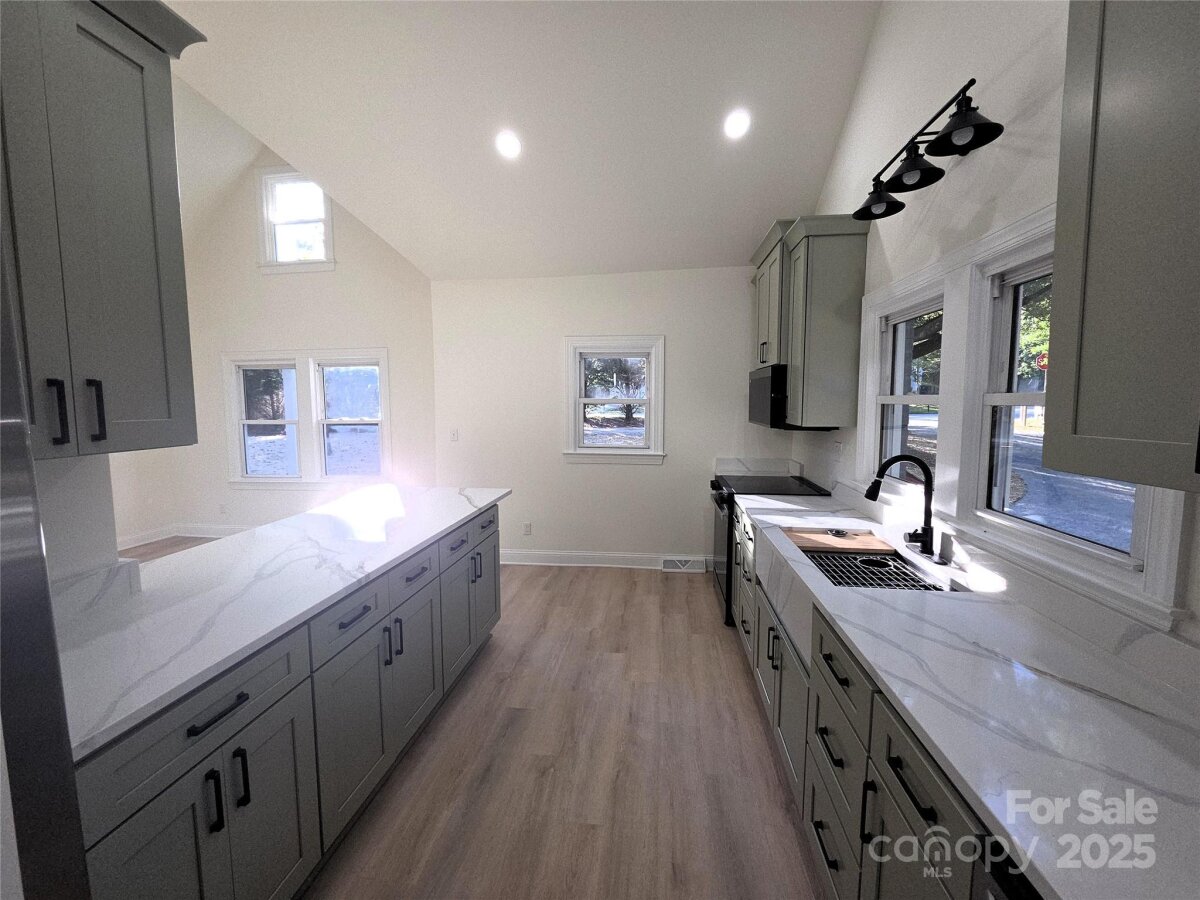Nestled on a peaceful half-acre lot located between minutes from downtown Kannapolis and I-85, this beautifully reimagined 3-bedroom, 2-bath home blends warmth, style, and convenience. From the classic exterior and porch s to the open, sun-filled interior, every inch of this home has been thoughtfully renewed. Step inside to a bright, vaulted living space with luxury vinyl plank flooring and an effortless open layout—perfect for entertaining or relaxing in style. The kitchen is a showpiece, featuring soft sage shaker cabinetry, custom granite countertops, stainless-steel appliances, and matte-black fixtures. Natural light pours through the windows, highlighting the seamless connection between the kitchen, dining, and living areas. The primary suite is a private retreat with plush new carpet, a walk-in closet, and a spa-inspired ensuite bath with striking tilework and a walk-in shower. Two additional bedrooms and a second full bath offer flexibility for family, guests, or a home office. Outdoors, enjoy your own half-acre of peaceful privacy surrounded by mature trees—perfect for morning coffee, evening gatherings, or just soaking in the serenity. With new electrical, plumbing, roof, and gutters, this home offers beauty, comfort, and confidence all in one. Located just minutes from I-85, shopping, restaurants, and the growing downtown Kannapolis entertainment district, this home pairs modern living with small-town charm Listing Agent is the owner.