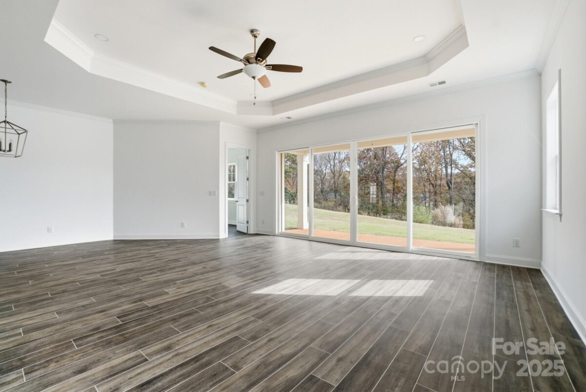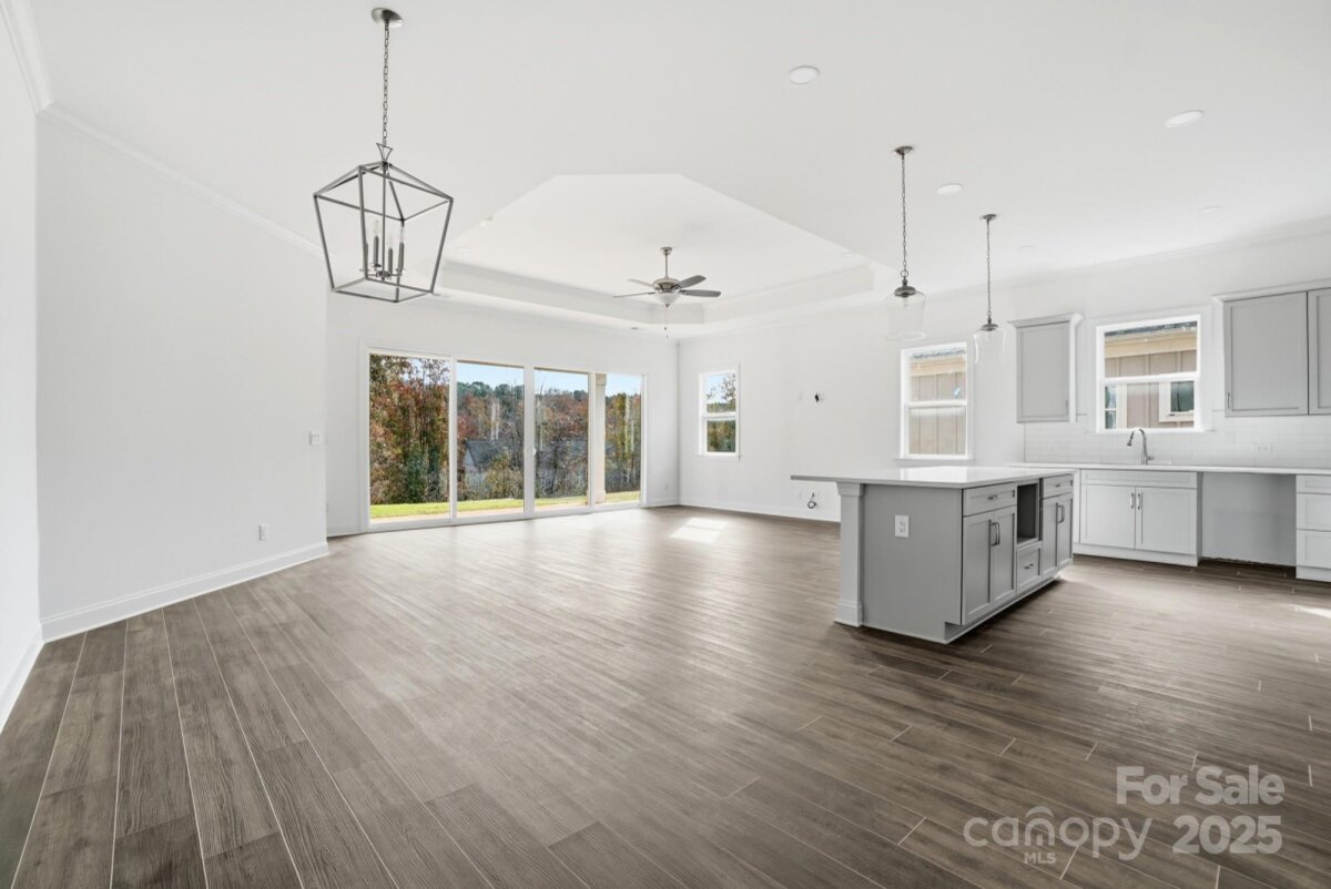 This spacious ranch-style residence features impressive 10-foot ceilings throughout, enhancing the sense of openness and elegance. Lawn maintenance is included for added convenience. The open-concept floor plan is thoughtfully designed with oversized doorways and wide hallways to facilitate ease of movement. The kitchen offers abundant storage, a substantial island, extensive cabinetry, and a generous walk-in pantry, making it ideal for both everyday living and entertaining. The primary suite is distinguished by a tray ceiling and an adjoining expansive bathroom, complete with a large walk-in shower. Ample closet space is available throughout the home.