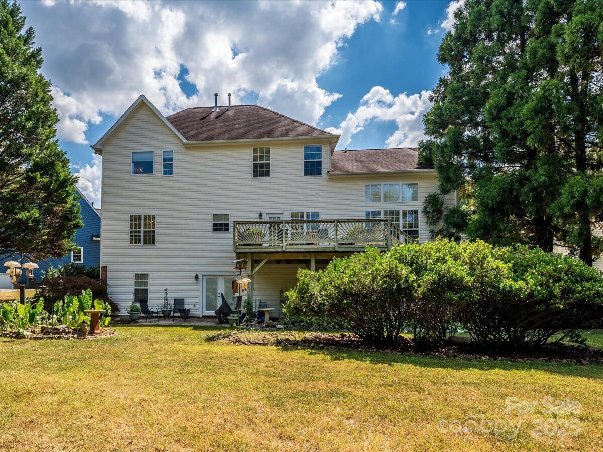 Wow! 2.7 acres of beautifully manicure heaven! And, did I mention the basement? It is unfinished but it has it's own HVAC, insulation, and is framed for the ease of finishing! One bedroom on the main floor with a ceiling fan and freshly cleaned carpet has access to a full bath. This would make a lovely office. Tile leads through to the kitchen and breakfast area. Formal living and dining rooms have gleaming hardwood floors, 2" faux wood blinds. Kitchen has a delightful view of the back yard, and features stainless steel appliances, and a spacious pantry. 2-sty great room with gas log fireplace, ceiling fan, access to the large deck out back. Upstairs you will find three additional bedrooms sharing a Jack and Hall bath and the laundry room. The primary suite has a tray ceiling with a ceiling fan, plenty of room for a seating area, and a private en suite bath with split vanities, water closet, and sep tub and shower. Yes, the rear of the property is in a flood plain however it is not near the house and in the 25 years the owner lived here she never had a claim or water over the small retainer wall in the back yard. This home is an absolute gem in this swim/tennis community.