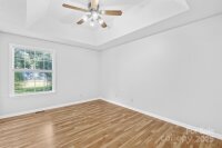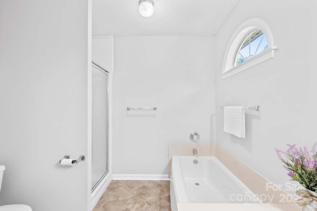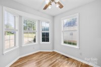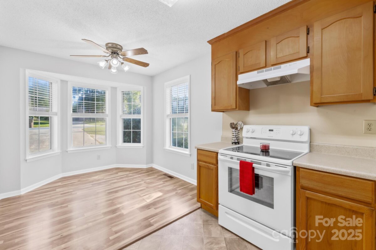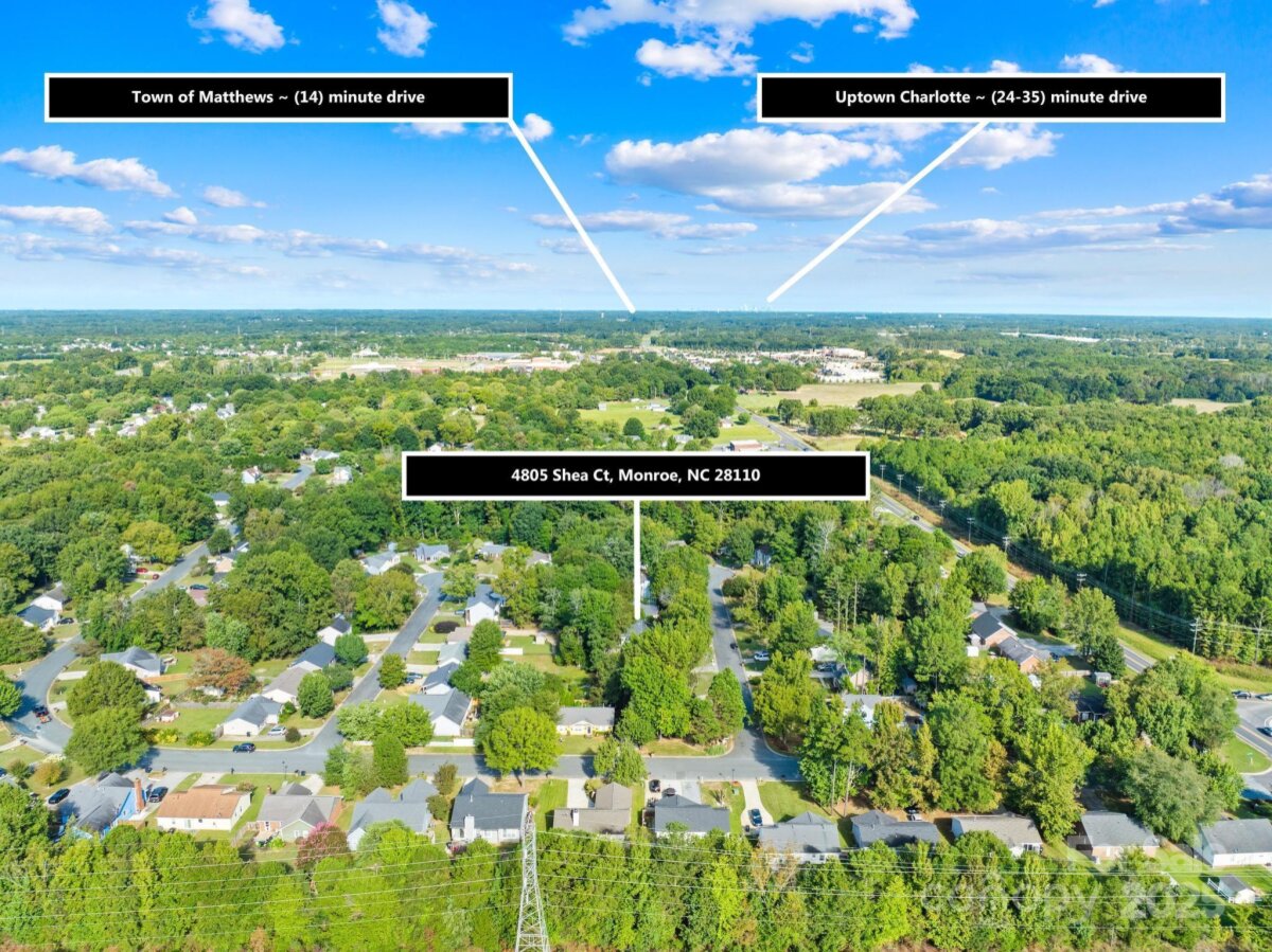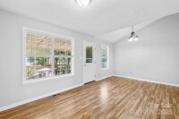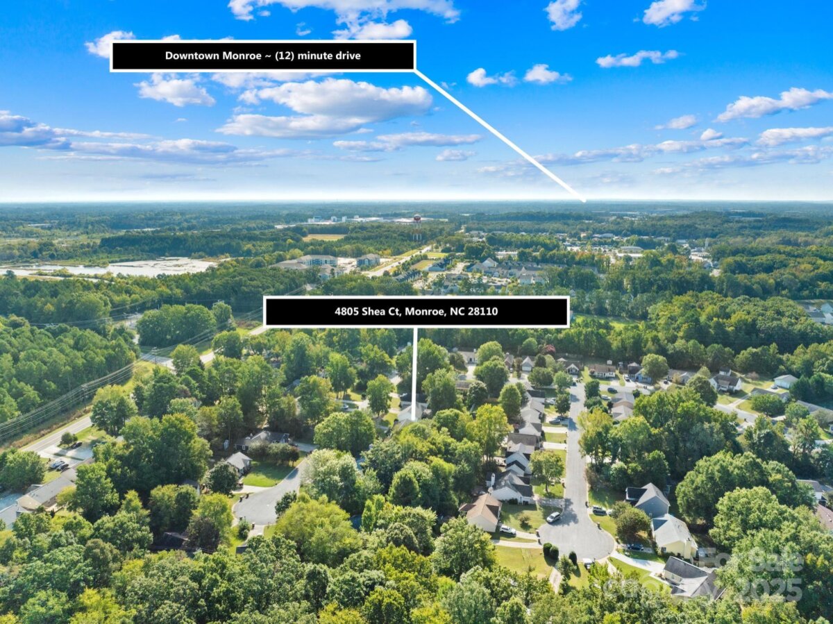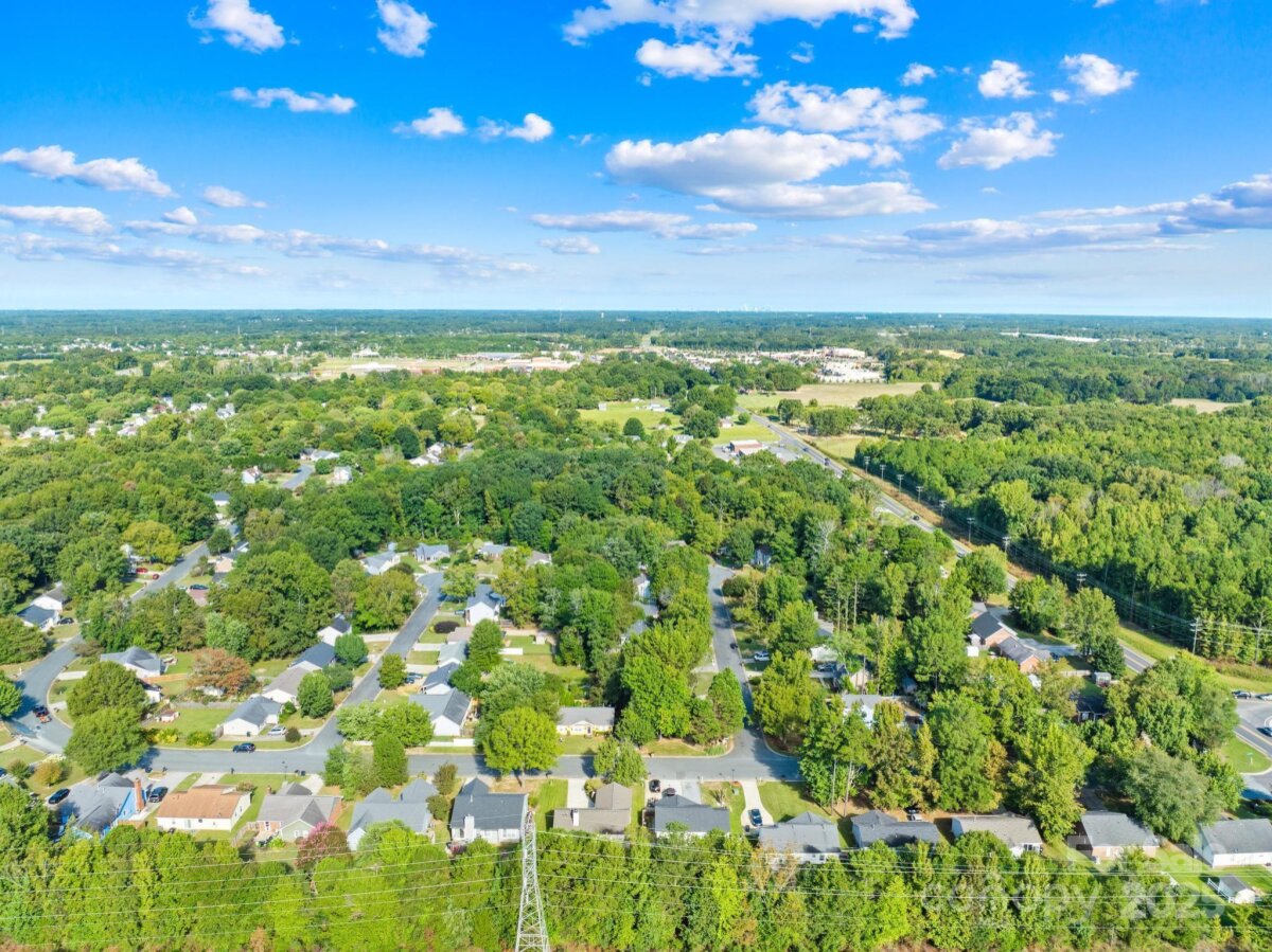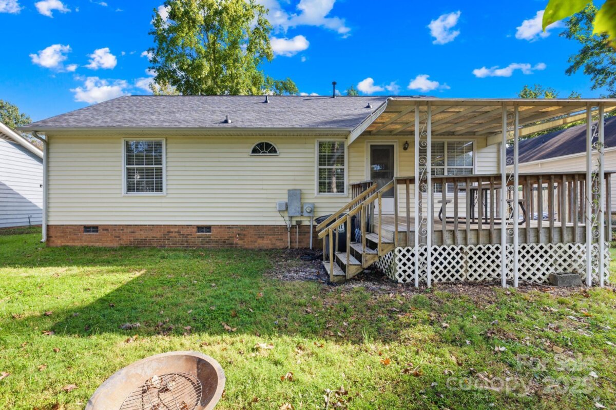 Welcome to this move-in ready one-story ranch home! Offering 3 bedrooms and 2 full bathrooms, this home features low-maintenance laminate wood floors throughout the main living areas. The foyer, living room, and dining area boast an open layout that flows seamlessly—perfect for everyday living and/or entertaining. The kitchen includes a cozy breakfast nook with bay windows and a ceiling fan, plus all appliances remain—including the washer and dryer in the walk-in laundry room with cabinets for extra storage. The primary suite offers two closets, a ceiling fan, and an en-suite bathroom with a garden tub and separate shower. Additional features include a linen closet, digital thermostat, and pull-down attic stairs. Recent updates provide peace of mind: new architectural shingle roof (Sept 2025), new HVAC compressor (Aug 2025), fresh interior & exterior paint (Aug 2025), new back door (Aug 2025), new light fixtures in the hallway and spare bedroom (Sept 2025), new garbage disposal (Sept 2025), new Levolor cordless 2†faux wood blinds throughout (Sept 2025), and new light fixture in the laundry room (Sept 2025). Enjoy private outdoor living on the covered back deck with picnic table or gather around the fire pit in the backyard. This home is located on a quiet cul-de-sac street with minimal traffic, yet close to shopping, dining, movie theaters, Hwy 74, and I-485. ***Price reduced $15,000 on 10/09/2025, so don’t wait!*** This home is truly move-in ready and waiting for its next owner—don’t wait, or it’ll be too late!