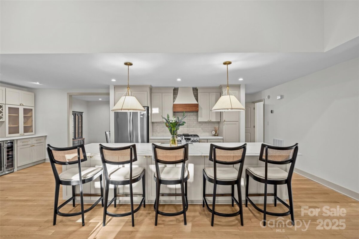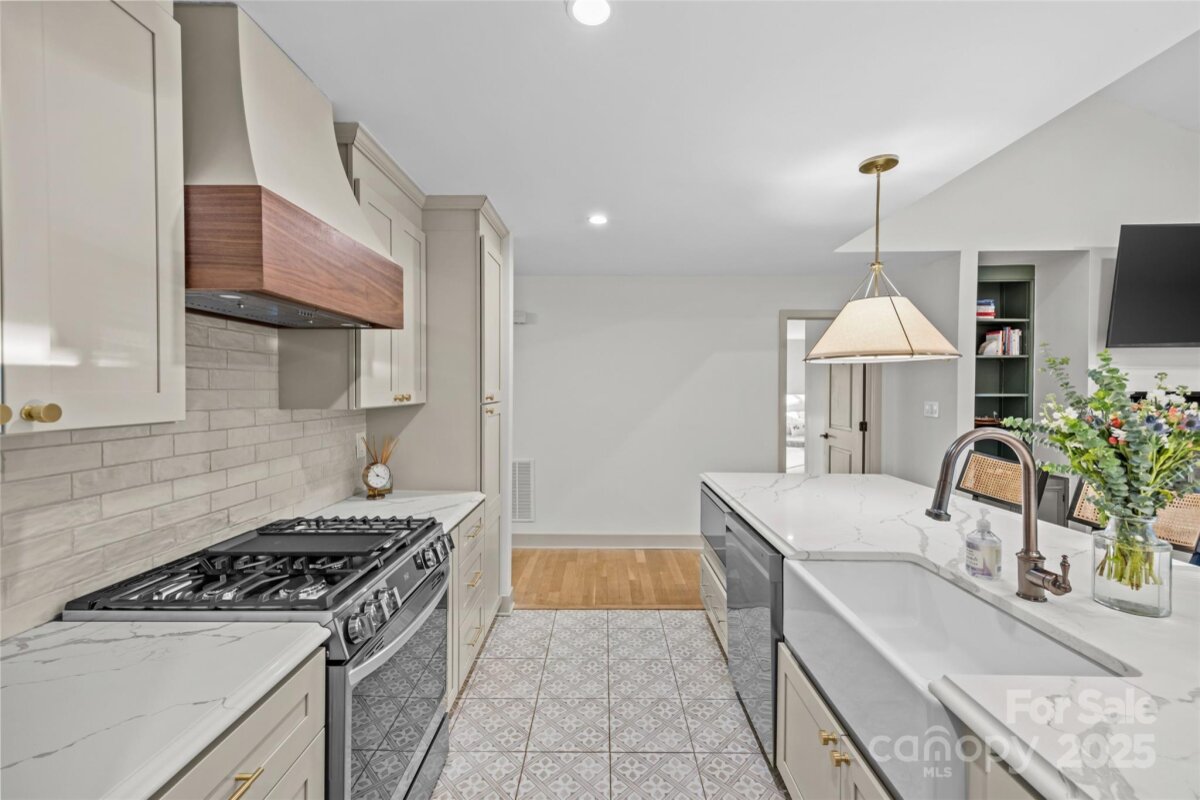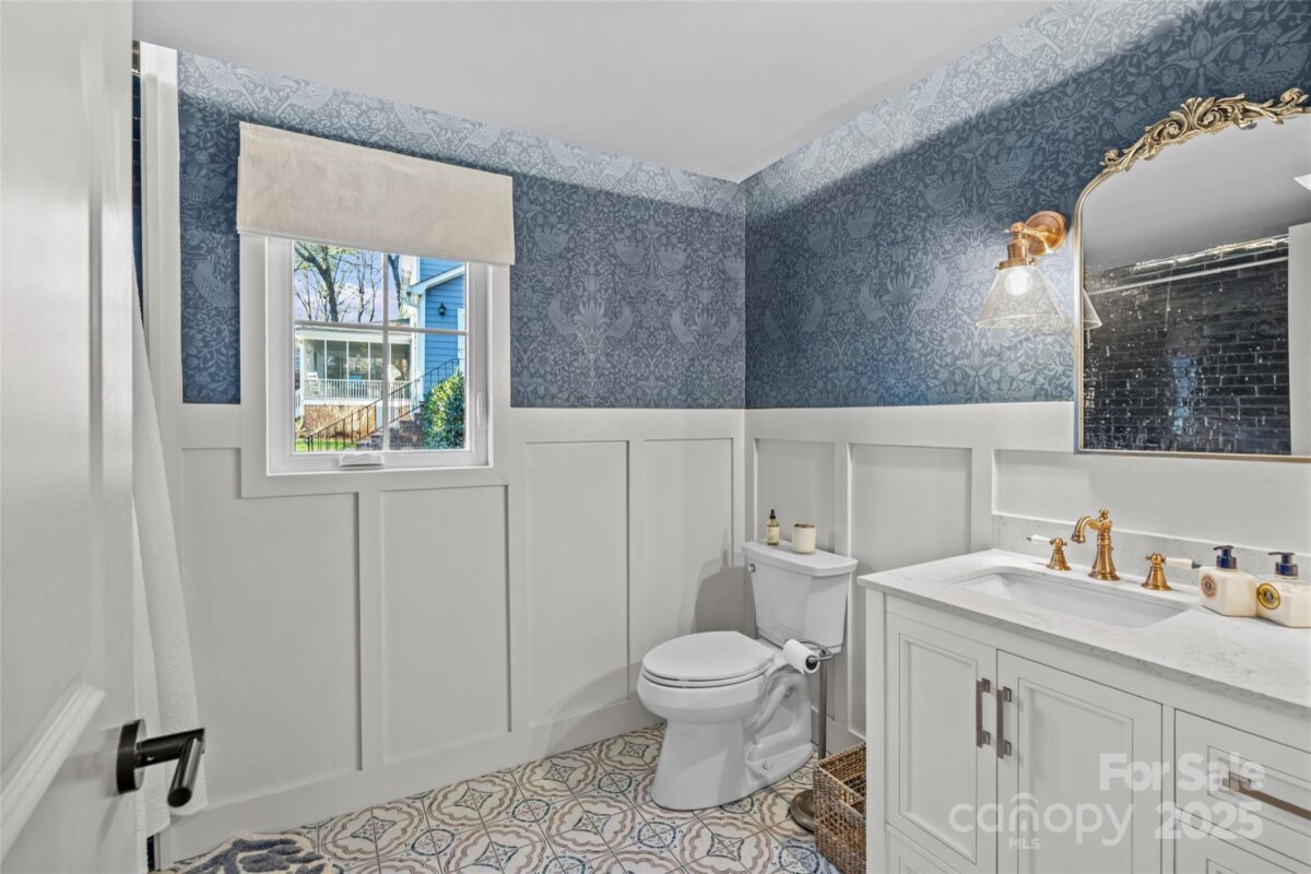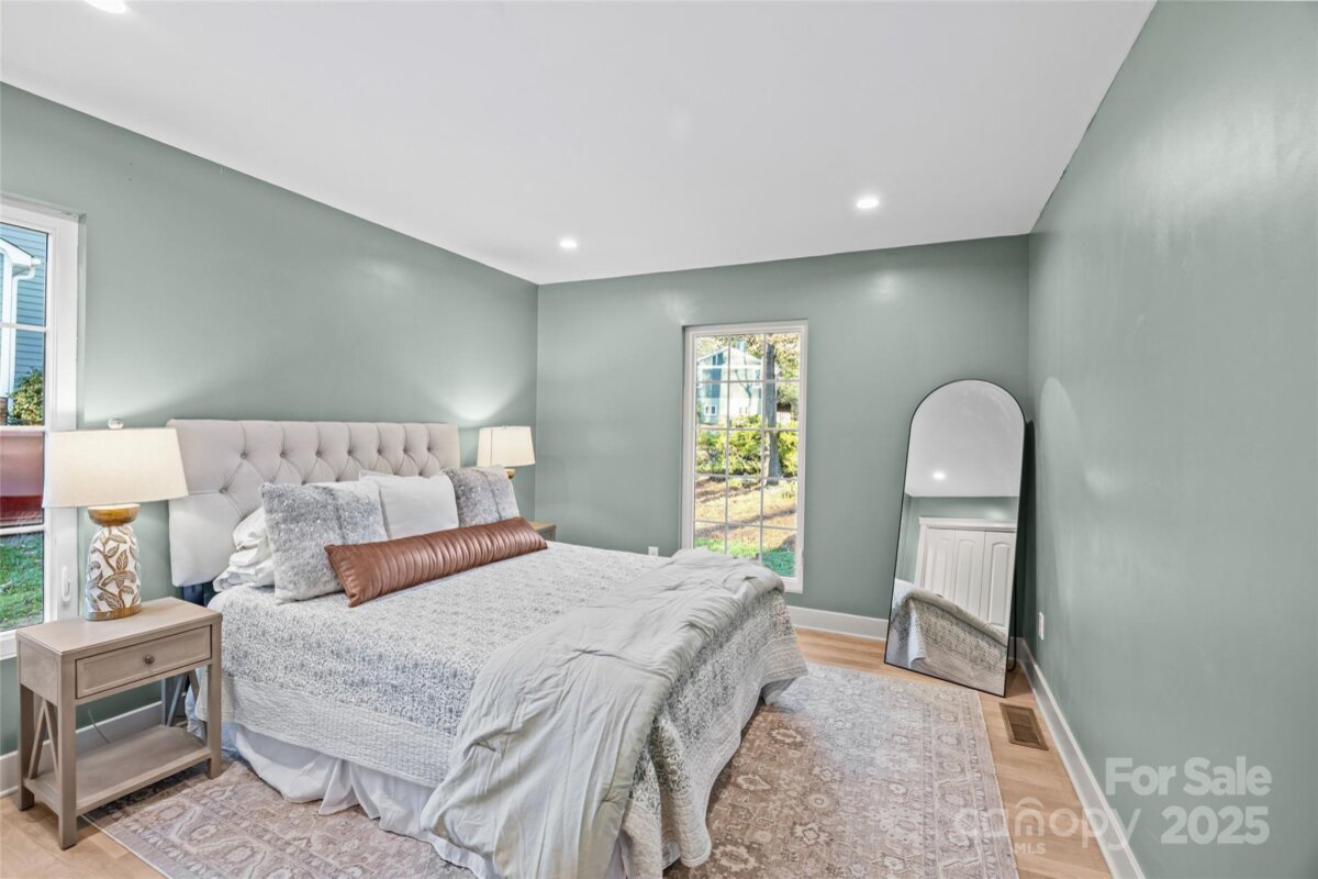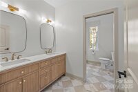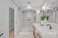 Stunning whole-home transformation in sought-after Woodbridge. This 1973 ranch has been completely reimagined with a brand-new second-story completed December 2025. The result is a like-new 5-bedroom, 3.5-bath home that perfectly blends classic Southern charm with modern luxury. The main level features the spacious primary suite, open living areas, and a new dining room with a dry bar—ideal for entertaining. The kitchen showcases a large center island perfect for gathering and meal prep. Step out to the screened porch and enjoy the privacy of the wooded 0.38-acre lot. A front-load two-car garage provides convenient access and ample storage. The thoughtfully designed second floor includes two additional bedrooms, a full bath, a half bath, a separate office, a built-in sauna, and a generous rec room with vaulted ceilings—perfect for a media room or flexible living space. Exterior details deliver timeless curb appeal: crisp plank siding, striking black-framed windows, decorative shutters, and a welcoming covered front porch with classic columns. The new rear screened porch extends your living space and takes full advantage of the serene, private setting. Located on one of South Charlotte's most desirable streets near top schools. This is a rare opportunity to own a fully renovated, essentially new-construction home in an established neighborhood. Move-in ready with nothing to do but unpack.