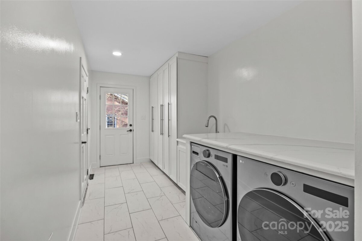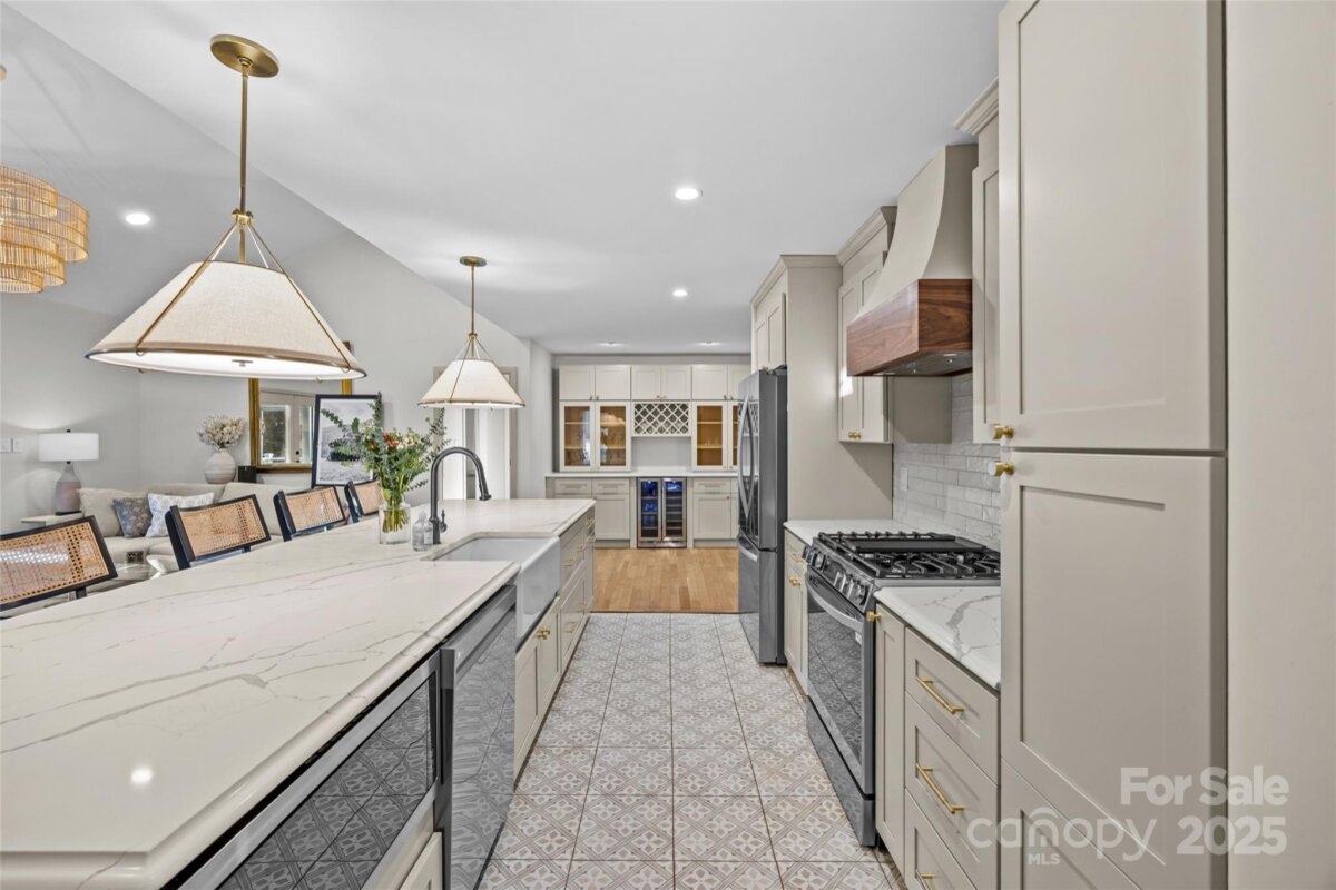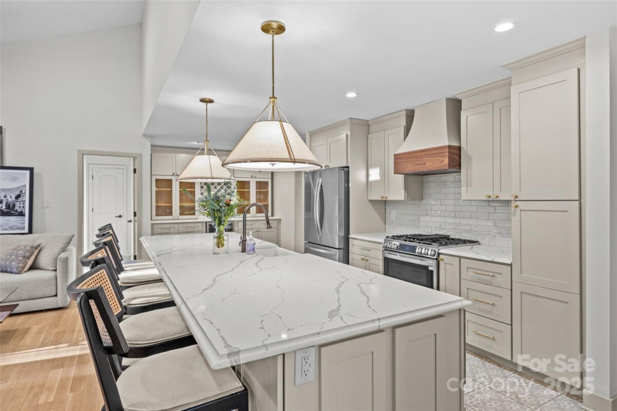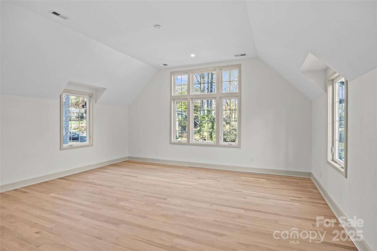 Stunning whole-home transformation in sought-after Woodbridge. This 1973 ranch has been completely reimagined with a brand-new second-story completed December 2025. The result is a like-new 5-bedroom, 3.5-bath home that perfectly blends classic Southern charm with modern luxury. The main level features the spacious primary suite, open living areas, and a new dining room with a dry bar—ideal for entertaining. The kitchen showcases a large center island perfect for gathering and meal prep. Step out to the screened porch and enjoy the privacy of the wooded 0.38-acre lot. A front-load two-car garage provides convenient access and ample storage. The thoughtfully designed second floor includes two additional bedrooms, a full bath, a half bath, a separate office, a built-in sauna, and a generous rec room with vaulted ceilings—perfect for a media room or flexible living space. Exterior details deliver timeless curb appeal: crisp plank siding, striking black-framed windows, decorative shutters, and a welcoming covered front porch with classic columns. The new rear screened porch extends your living space and takes full advantage of the serene, private setting. Located on one of South Charlotte's most desirable streets near top schools. This is a rare opportunity to own a fully renovated, essentially new-construction home in an established neighborhood. Move-in ready with nothing to do but unpack.