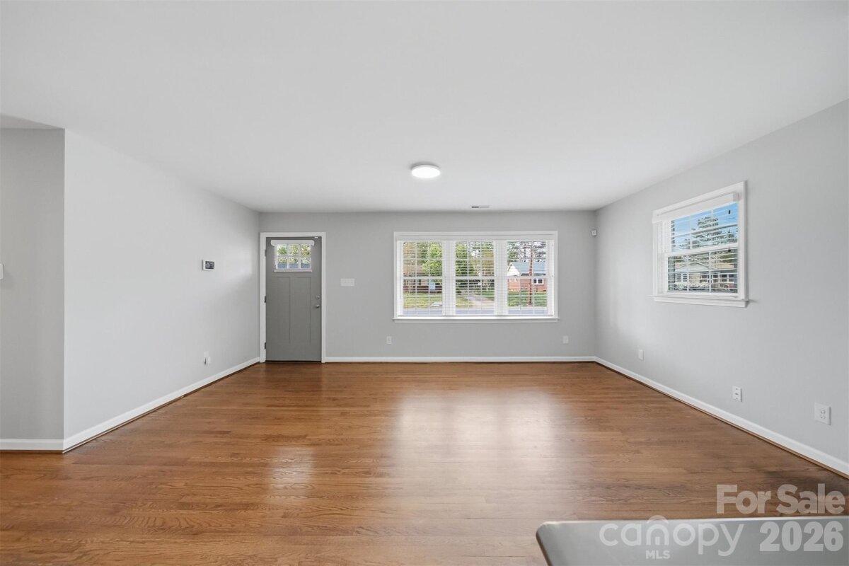 This fully renovated, move-in ready brick ranch offers modern comforts in a classic setting. The home features an open-concept layout filled with natural light, a kitchen with new stainless-steel appliances, and an island for additional storage and prep space. The floor plan includes three bedrooms and two updated full bathrooms. Notably, the third bedroom features a charming wood-burning fireplace and is perfectly suited for use as a home office or den. Laundry Room including Washer/Dryer. Top quality finishes throughout include refinished provincial-stained oak hardwoods, Pergo flooring, and ceramic tile. Key functional updates completed in 2021 include a new roof and HVAC system, as well as insulated windows, 2" blinds, water heater, and updated electrical and plumbing systems. The exterior features new front landscaping, a spacious fenced backyard, and a functional outbuilding for storage. Located with easy access to I-85, Uptown, and the airport, this home is must-see.