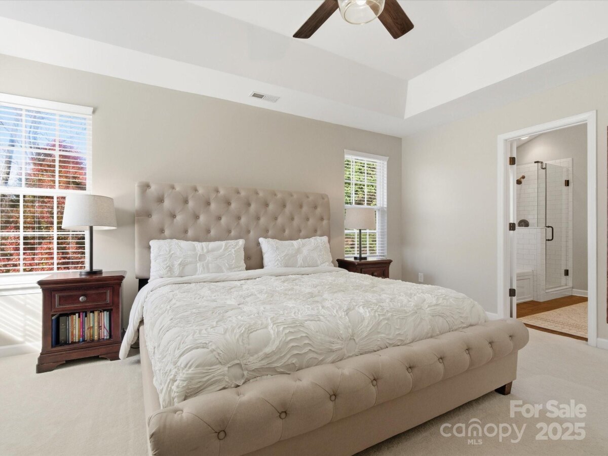 Welcome to this lovely home in the established community of Hampton Place! Surrounded by mature trees, spacious backyards, and fantastic community amenities, this neighborhood offers charm, character, and convenience from the moment you arrive. Inside, the home has been exceptionally well maintained and thoughtfully updated for its next lucky homeowner. The main level features refreshed flooring, modern fixtures, updated paint, and a stylish new backsplash—enhancing the warmth and personality of each space. Upstairs, you’ll find generously sized bedrooms, an updated primary bathroom, and a bonus room highlighted by an eye-catching accent wall. A unique hidden door leads to the attic, providing valuable additional storage. Step outside to the covered back deck overlooking serene, wooded views—your own private retreat ideal for relaxing, unwinding, and enjoying quiet moments outdoors. Conveniently located near 485, retail, restaurants, etc. Come see this beautiful home today!