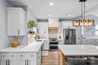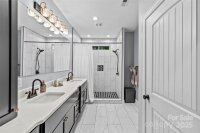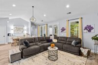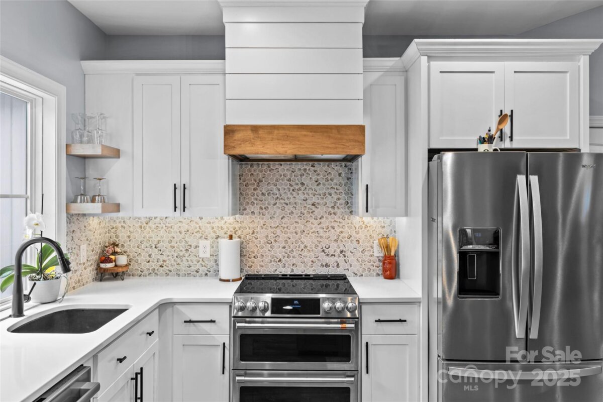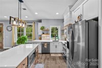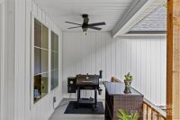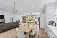 Welcome to your farmhouse dream home! This meticulously cared for home offers a private, wooded setting with elegant design and thoughtful updates throughout. Step inside to a grand open floor plan featuring a spacious living area, eat-in kitchen with island, and a generous dining space, ideal for entertaining. The kitchen shines with extended custom shaker cabinetry, a new tile backsplash, quartz countertops, and new stainless-steel dishwasher and stove. The primary suite is a true retreat with a vaulted ceiling, luxurious en suite bath featuring a double vanity, oversized tile shower, water closet, and a walk-in closet with custom shelving. A split-bedroom layout provides privacy, with two additional spacious bedrooms on the main level. The bonus room above the garage offers endless possibilities, perfect for a playroom, office, or guest suite. Recent updates include new flooring in bedrooms and bonus room, fresh paint throughout, updated light fixtures, an extended backyard concrete patio, and a whole-home water filtration system. Relax on either of the two covered porches while enjoying peaceful wooded views. Nestled on a quiet, dead-end street, this home combines tranquility, style, and convenience it's the perfect blend of country living and modern sophistication with no HOA.