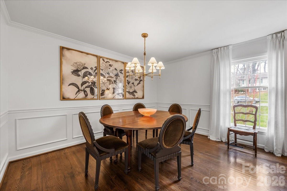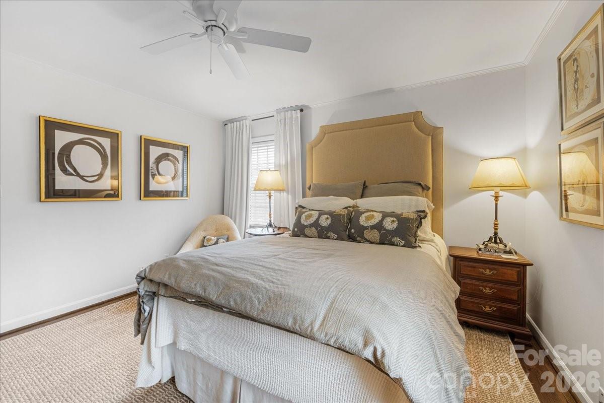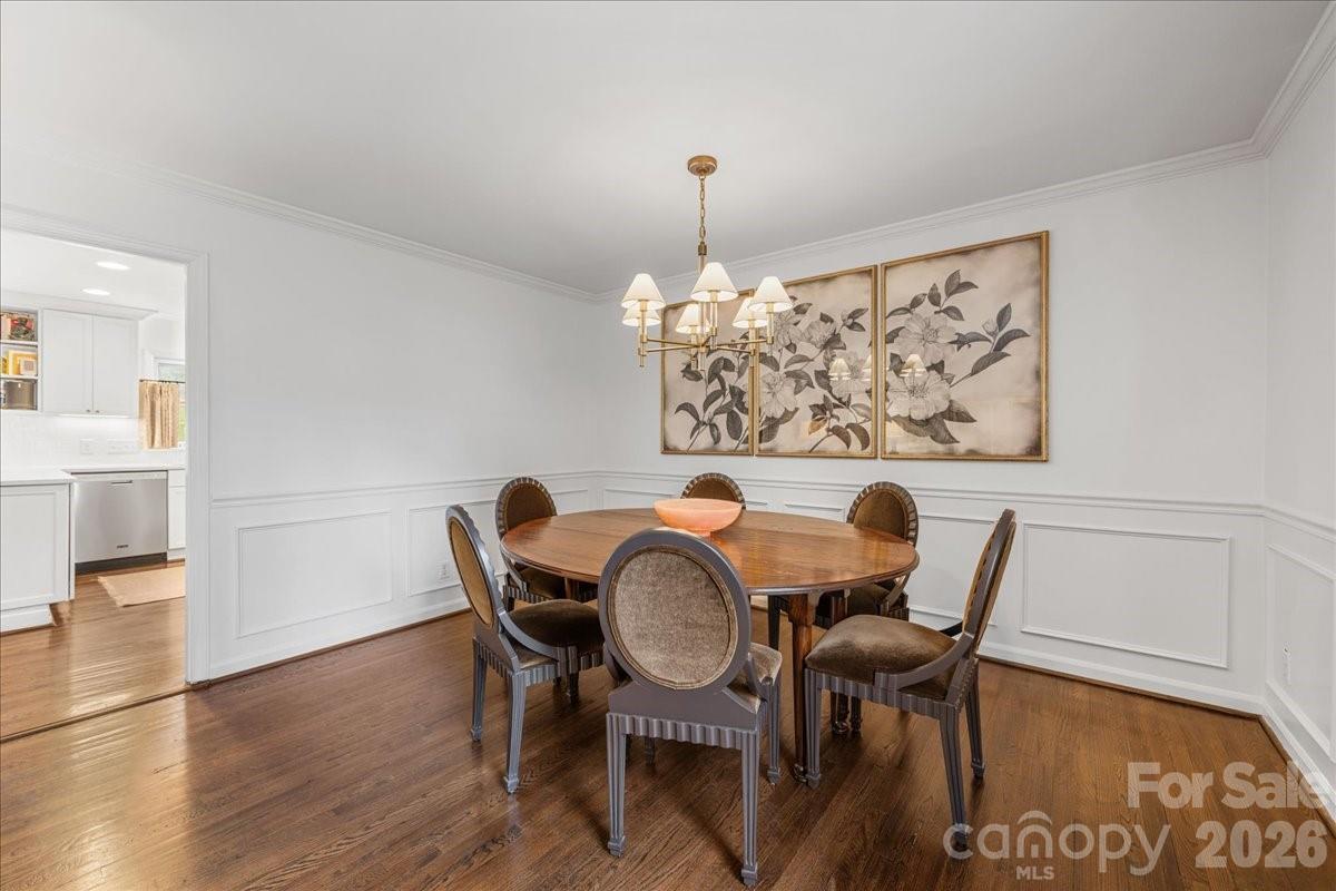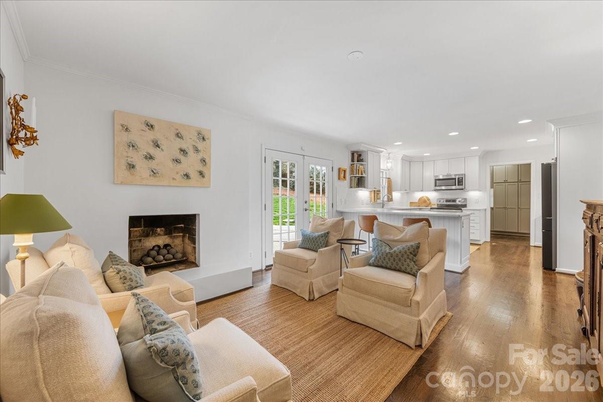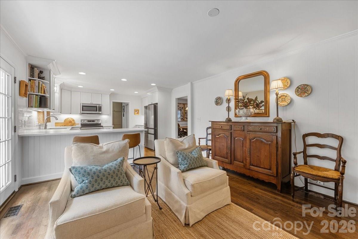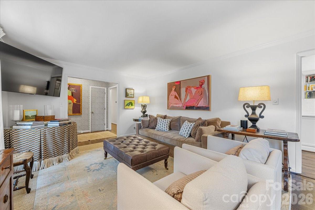 Welcome home to this charming 4BR, 2BA painted brick ranch in highly sought after Randolph Park. A rocking chair front porch invites you into this charming home. The spacious living room boasts hardwood floors and abundant natural light, opening into the dining room. The beautifully updated kitchen features crisp white cabinetry, quartz countertops, and an easy flow into the den; perfect for everyday living and entertaining. The den opens to a patio overlooking a private, fenced backyard, creating the ideal space for outdoor enjoyment. Both bathrooms have been tastefully updated with designer finishes. A generously sized mud/laundry room, just off the kitchen and attached garage, provides incredible storage and functionality; an uncommon find in this neighborhood. The rare one-car garage adds even more convenience. Enjoy living just minutes from shopping and dining at Cotswold Village Shops, as well as easy access to Uptown Charlotte and more.