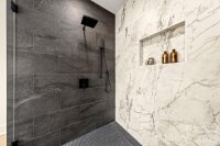 Stunning single family new build by KO Construction in vibrant Oakhurst, just minutes to Plaza Midwood, Cotswold and Uptown Charlotte. Step inside to an inviting open-concept floor plan graced by soaring 10-foot ceilings, abundant natural light, and elevated designer finishes throughout. Custom details abound, including shiplap-accented ceilings in the primary suite, intricate wall trim, elegant crown molding, and sophisticated lighting fixtures that elevate every room. The spacious great room impresses with custom built-in shelving featuring a cozy gas fireplace - ideal for gatherings year-round. A versatile main-level guest bedroom (or home office) with its own full bath offers privacy and convenience. Upstairs, retreat to a grand primary suite that’s a true showstopper: flooded with light, featuring a trey ceiling, expansive walk-in closet, and a spa-like en-suite bath with premium selections. Three additional bedrooms provide comfort, including two with private ensuite baths meticulously crafted with high-end designer touches. A large loft space serves as a flexible bonus area—perfect for a home office, playroom, media lounge, or gym. Outside, relax on the covered rear balcony overlooking a spacious, private backyard with a refurbished storage shed. This functional, modern layout combines timeless craftsmanship with contemporary style in one of Charlotte’s most sought-after intown locations. Minutes from the eclectic shops, restaurants, and nightlife of Plaza Midwood and Cotswold Village, with quick access to Uptown Charlotte via Independence Boulevard. Don’t miss this rare opportunity to own new construction on a third of an acre in an established, tree-lined neighborhood with charming appeal; all within a short drive to Cotswold Village shopping center.