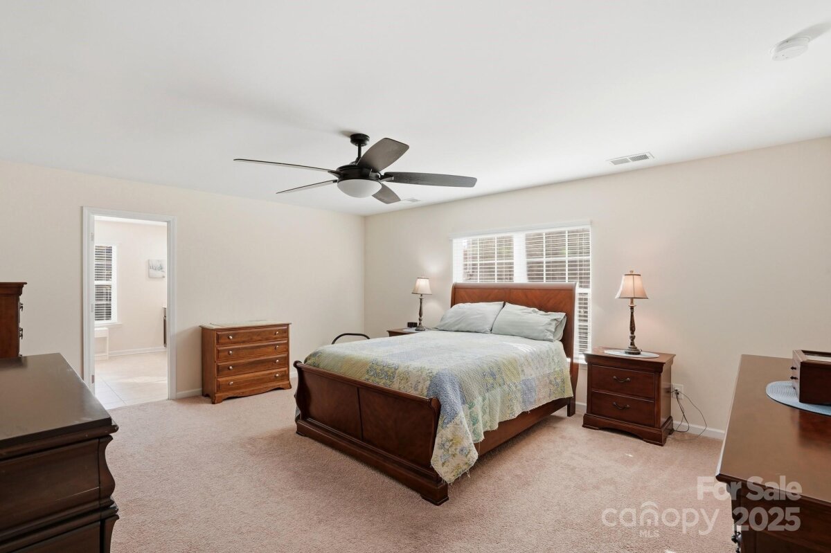 Welcome home to 4825 Samuel Pinckney Drive! Inside you'll find an open-concept main level featuring a bright and inviting family room with a fireplace, kitchen with granite countertops, stainless steel appliances, ample cabinetry, and large pantry. This spacious and versatile home offers primary suites on both the main and upper level, providing an ideal layout for multigenerational living or guest accommodations. Each bedroom features its own private ensuite bathroom, ensuring comfort and privacy throughout. Enjoy a convenient lifestyle with walkable access to Harris Teeter, Downtown Belmont, restaurants, and highly rated schools.