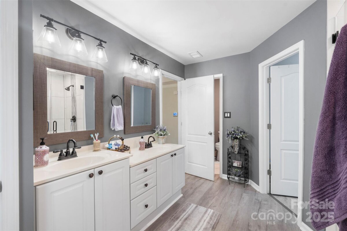 This stunning 5-bedroom, 3-bath home in Covington has been meticulously cared for and is truly move-in ready, boasting an impressive list of upgrades including recently installed HVAC systems (upstairs & downstairs), flooring on main floor (LVP), water heater, windows, blinds, gutters & gutter guards, fresh interior paint and a luxurious primary bath renovation. The open-concept design is filled with natural light and features a warm, inviting fireplace & a chef’s kitchen with a spacious island, stainless steel appliances & a sunny breakfast nook. The main level also offers a formal living & dining room, plus a bedroom & full bath—perfect for guests. Upstairs, retreat to the oversized primary suite with its spa-like bathroom, generous closet space & a versatile bonus room. Unlike many homes in the community, this property offers rare backyard privacy with no neighboring houses directly behind. Ideally located near I-485, I-85, Concord Mills, shopping, dining & endless entertainment, this is the perfect blend of comfort, style & convenience.