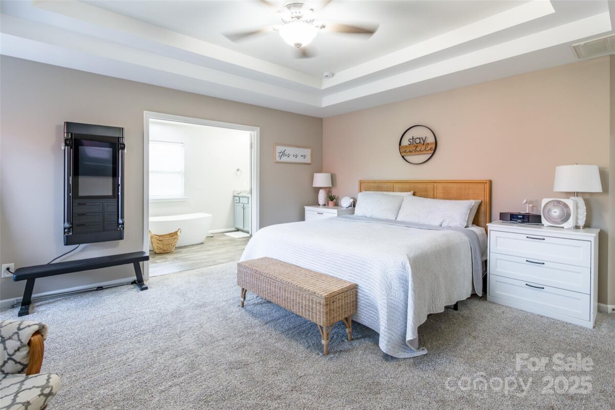 Welcome home! Beautifully updated and move in ready. You don't want to miss this one. On the main level, this home features rustic laminate flooring throughout and tons of natural light! The office with French doors is perfect for working at home or a kids playroom! Enjoy holidays and gatherings in the formal dining room. Open kitchen features granite countertops, tile backsplash and stainless appliances. The breakfast bar is perfect for morning coffee and afternoon snacks. Cozy great room with large windows features a gas log fireplace and looks into the large backyard. Upstairs features a primary suite with tray ceiling, large walk in closet and ensuite bath with tiled separate shower, free standing soaking tub and dual bowl granite vanity. Three more ample sized bedrooms and a full bathroom with dual vanity complete the upstairs. The home is located on a large corner lot, with a fenced in backyard perfect for entertaining and BBQ's. New roof, HVAC and carpet in 2024.