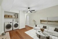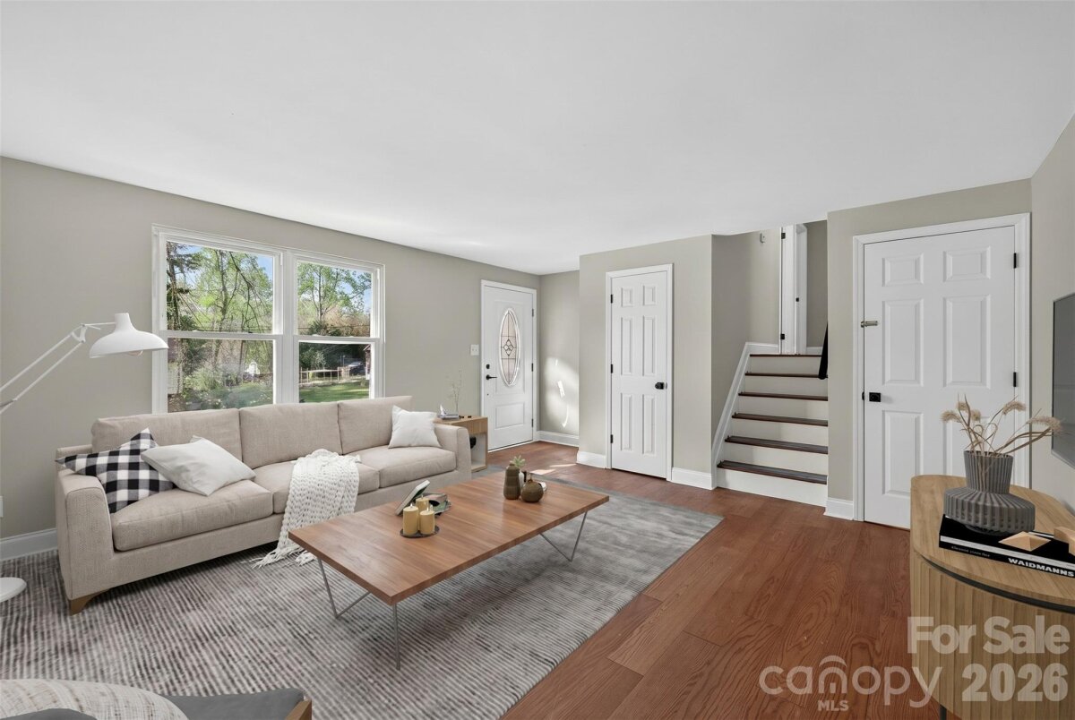 Welcome to 4832 Cheviot Road — a beautifully renovated home in the heart of Derita-Statesville, one of north Charlotte's most accessible and community-rooted neighborhoods. The cosmetic and surface updates here are extensive, offering the feel of new construction at a fraction of the price. Step inside to warm 6" saddle oak engineered hardwood floors that flow throughout, setting the tone for the rich, warm aesthetic found around every corner. The kitchen is a true showstopper: brand new soft-close white cabinetry, gleaming stainless steel appliances, and designer tile work that makes this space as functional as it is beautiful. All three bathrooms have been fully updated with new tile, fixtures, and vanities — clean, modern, and move-in ready. The layout is one of this home's standout features: two distinct living areas give you the flexibility for a formal sitting room, playroom, home office, or whatever your lifestyle calls for. Three bedrooms are situated upstairs for privacy, with an additional bedroom downstairs. Out back, you'll find an updated deck perfect for entertaining, overlooking a massive, fully usable backyard. Have peace of mind with a brand new roof, fascia, gutters, and waterproofing. Located in Derita-Statesville, this home puts you minutes from I-77 and I-85, with easy access to Uptown Charlotte, Northlake Mall, and Concord Mills. The neighborhood is known for its strong sense of community, tree-lined streets, and proximity to Nevin Park and Ribbonwalk Nature Preserve. Whether you're a first-time buyer, a growing household, or an investor, this one checks every box. Don't miss it. **photos are virtually staged
