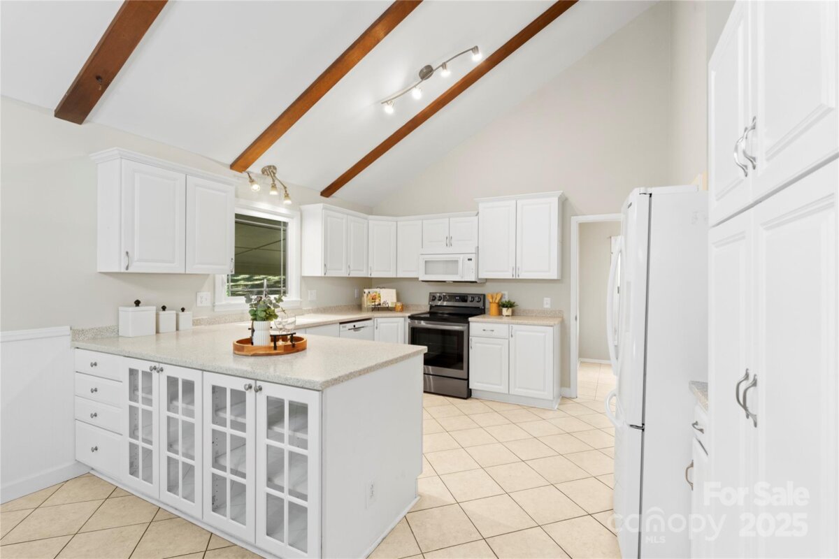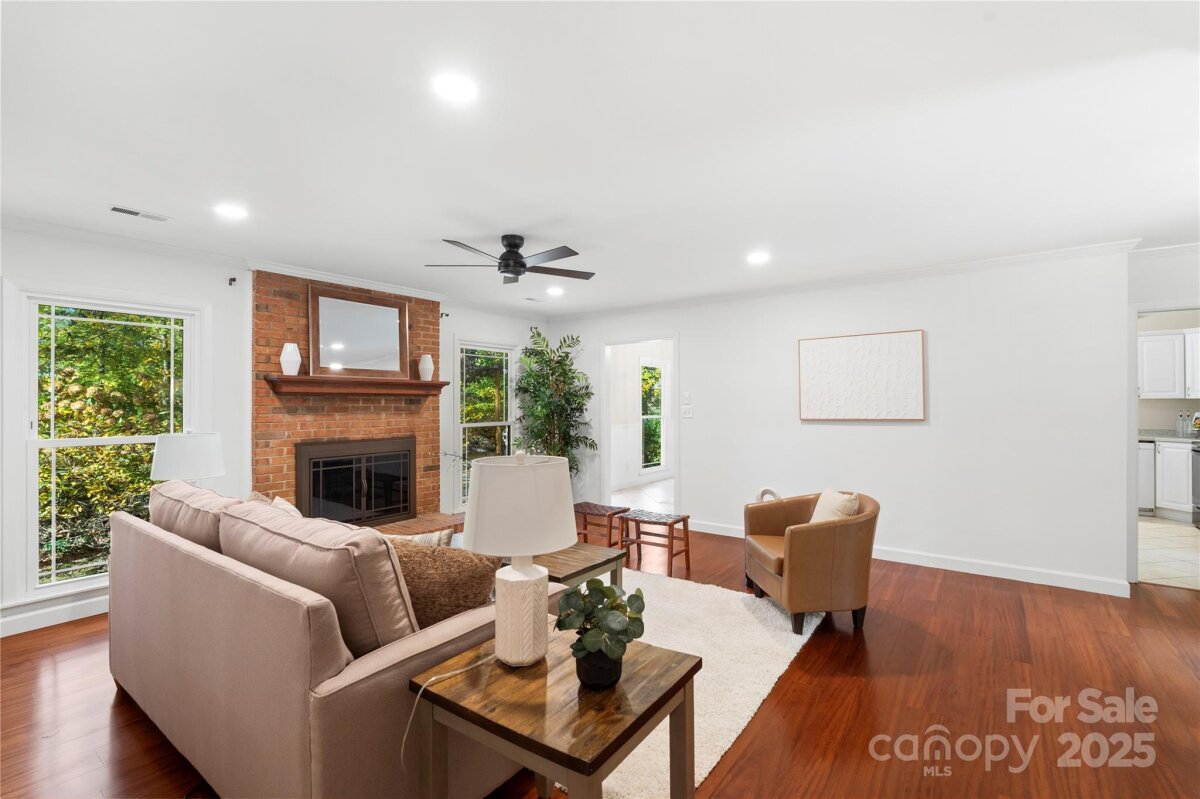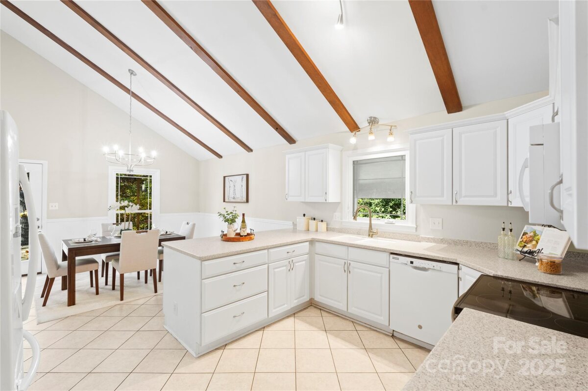 Welcome home to this beautifully maintained 3-bedroom, 2-bath ranch offering effortless one-level living and a bright, open floor plan. The spacious living room features laminate wood flooring, large windows, and a wood burning fireplace. The kitchen is a showstopper with abundant cabinetry and vaulted ceiling with exposed wooden beams, and a dedicated pantry. The open-concept layout flows seamlessly into the dining area ideal for entertaining friends and family. Retreat to the primary suite featuring a beautifully renovated ensuite bath with a custom-tiled shower, dual-sink vanity. Enjoy the outdoors with a spacious backyard, deck, and storage shed. Updates include a new roof (2024) and new water heater (2025), giving you peace of mind for years to come. Located on a quiet street with easy access to community park and greenway, this home offers the perfect blend of comfort and convenience.