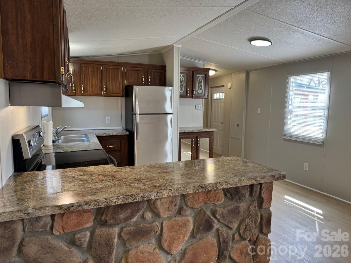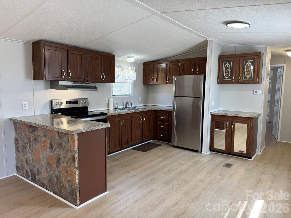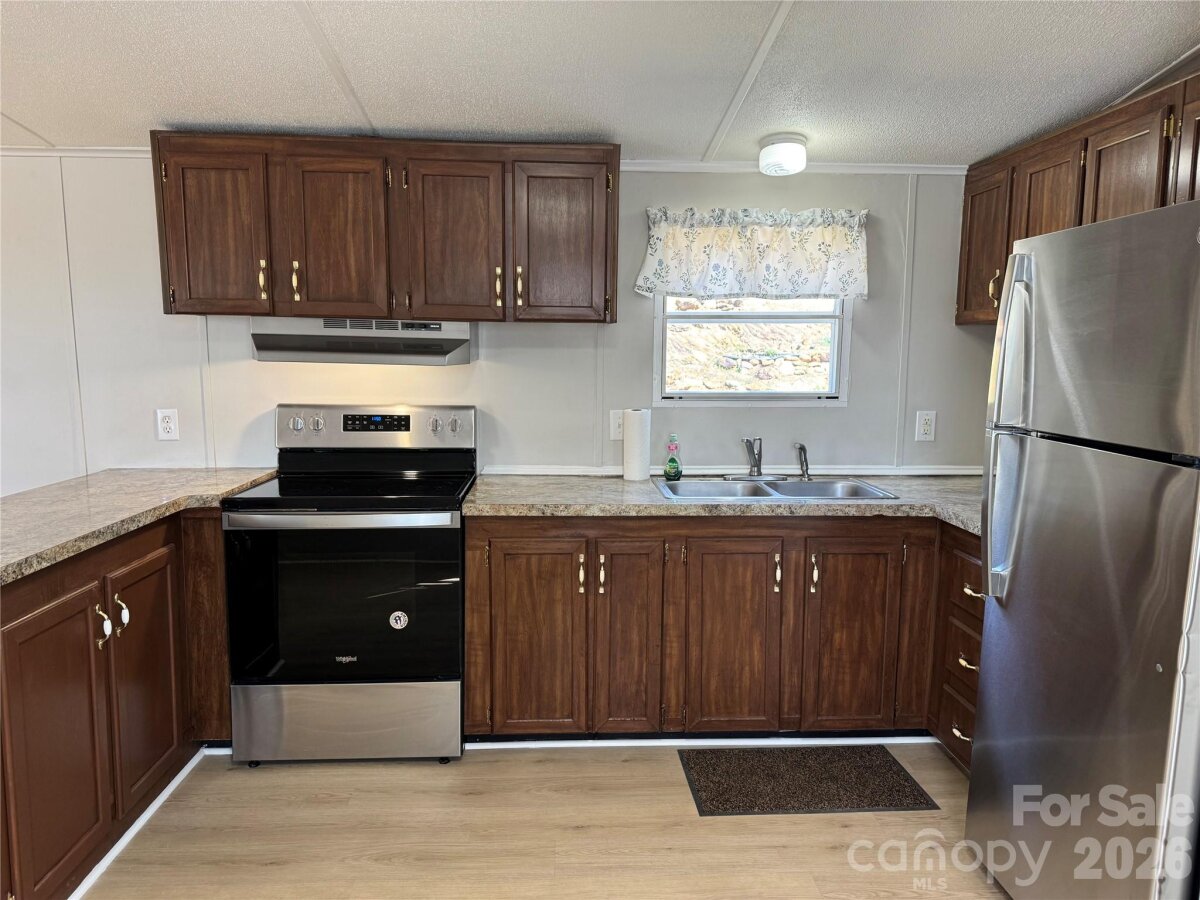 Nestled in the peaceful rural countryside of Morganton, this 2BR, 2BA manufactured home is move-in ready and located a short distance from town and situated on .919 acre. Some updates include new roof Aug. 2025, concrete block underpinning Sept. 2025, vinyl plank flooring throughout and fresh paint. Included are stainless steel fridge, electric range and hood. Covered back deck to relax and enjoy the seasonal long range mountain views. Shed for your lawn equipment. Nicely landscaped to enjoy gardening or just take in the natural surroundings. Schedule your appointment today. Agent is owner.